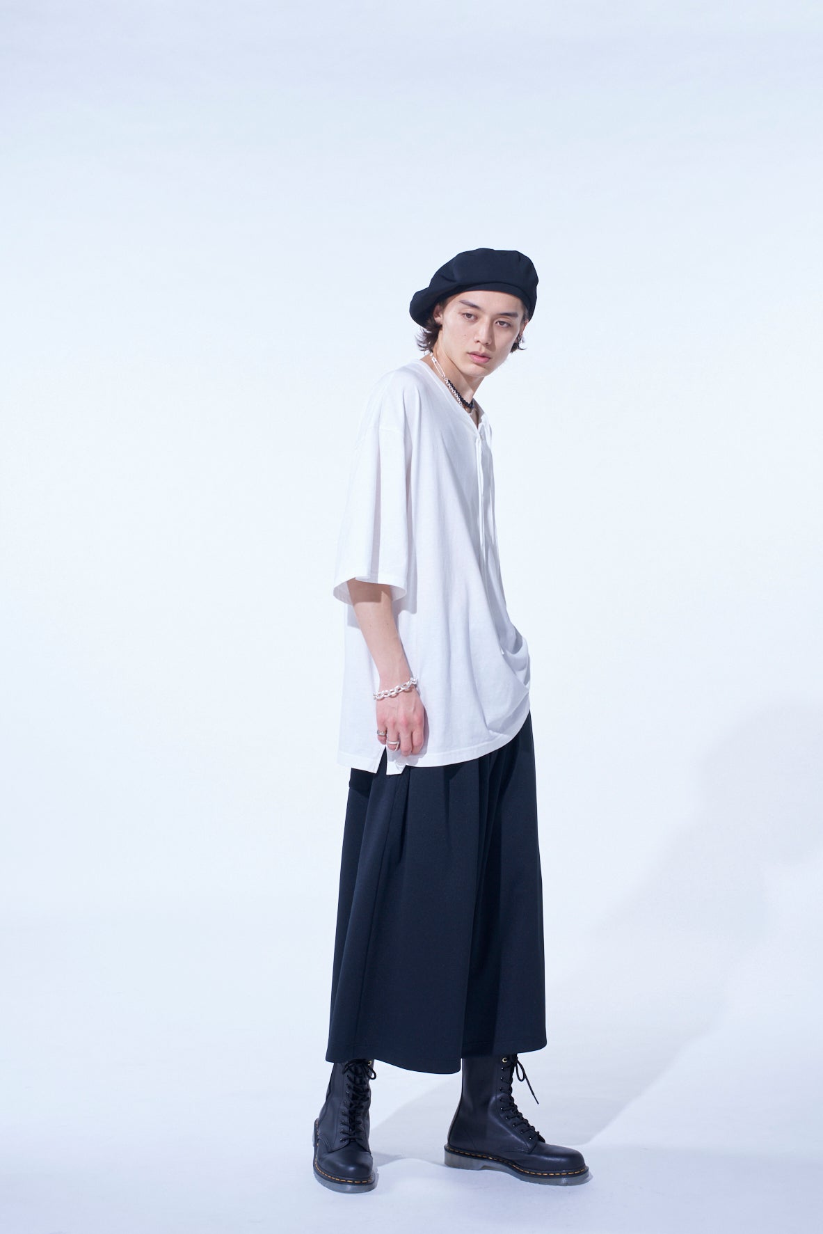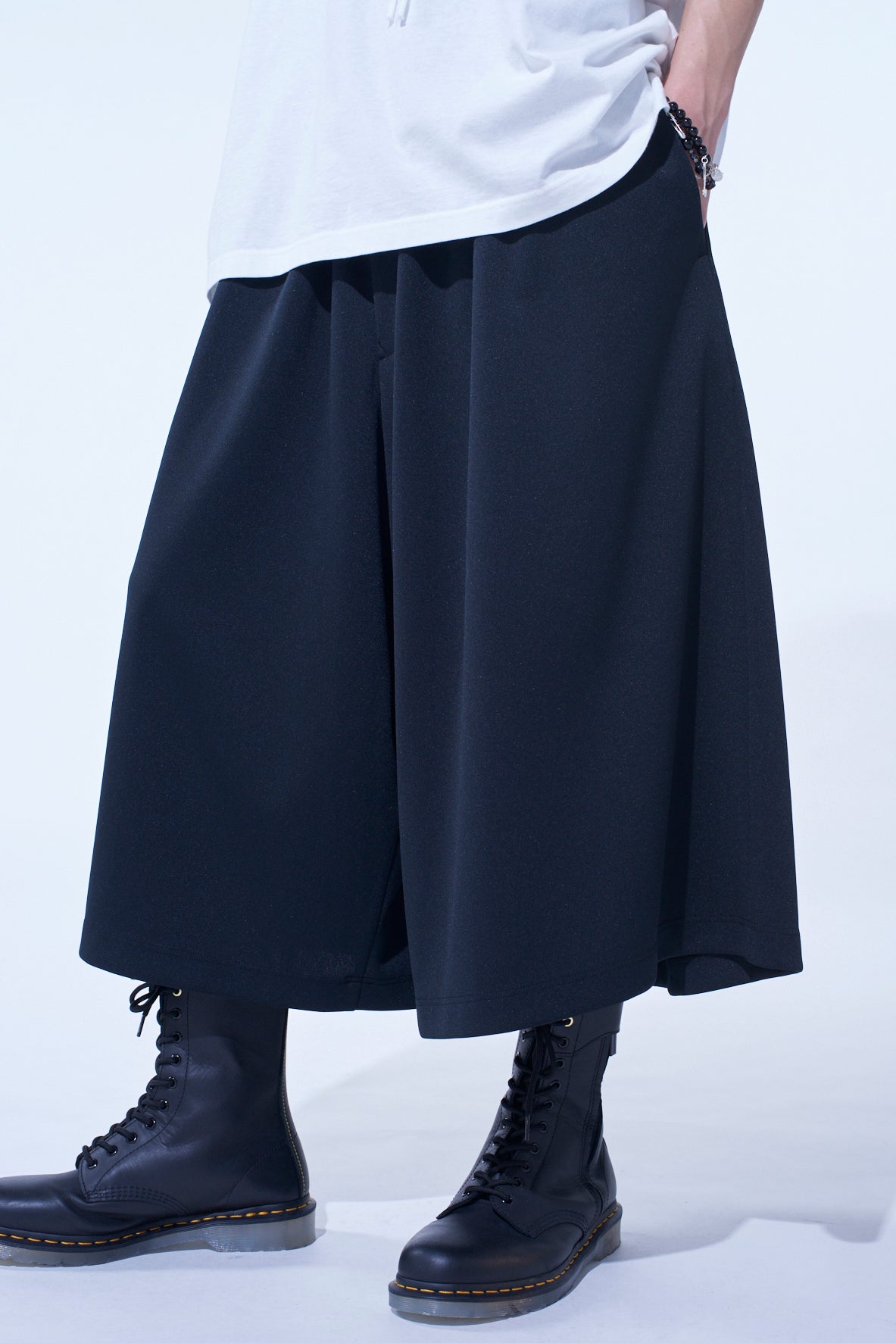 Experience the comfort of S’YTE's signature culottes crafted from stress-free jersey fabric. The gaucho wide silhouette effortlessly combines skirt and pants with an easy-to-style length and volume. The polyester smooth stretch material offers excellent comfort, resists wrinkles and deformation, and is easy to care for, making it ideal for daily wear.