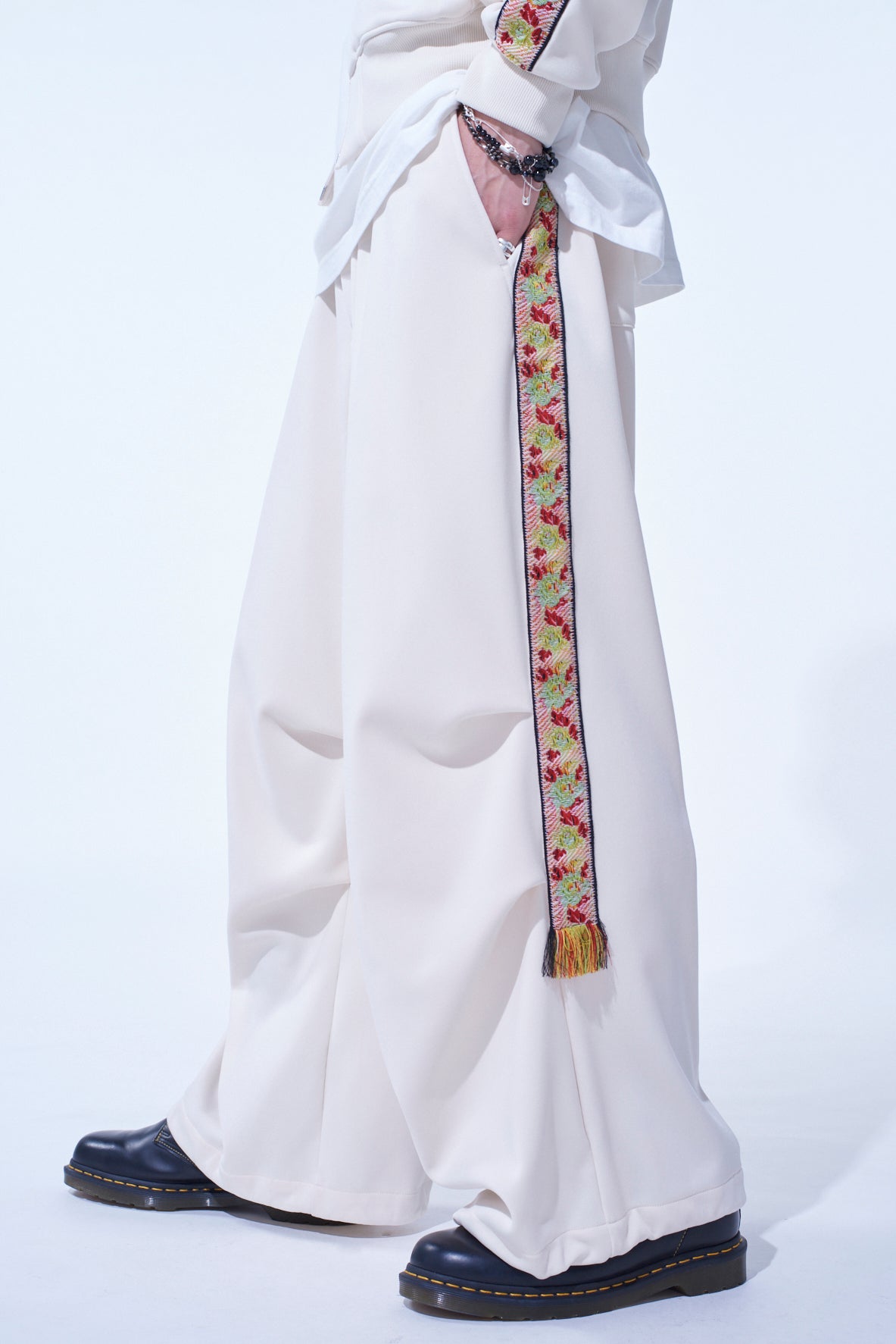 PE/SMOOTH JERSEY KNEE TUCK MILITARY PANTS WITH TYROLEAN TAPES