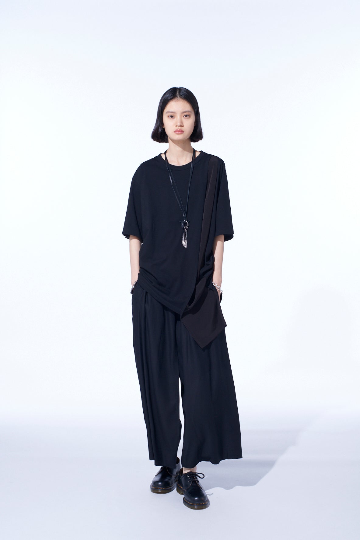 SOFT JERSEY+CREPE de CHINE ASYMMETRICAL T-SHIRT