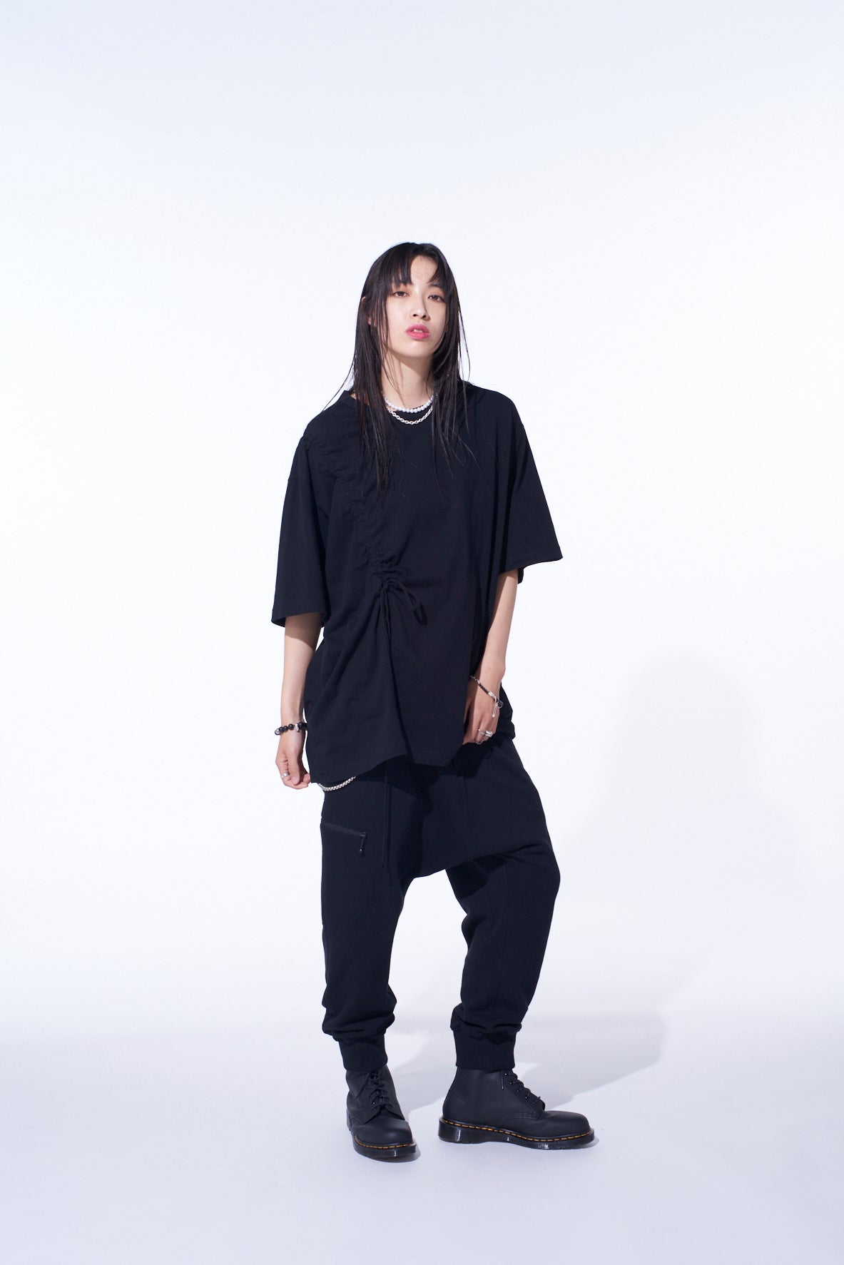 Crafted from soft plain stitch fabric, this top features a gather design that allows for adjustable styling. The drawstring runs from the front to the back, creating dynamic accents. With a relaxed fit, it pairs well with pants or acts as inner wear for jackets or coats. The fabric resists deformation and is perfect for daily wear.