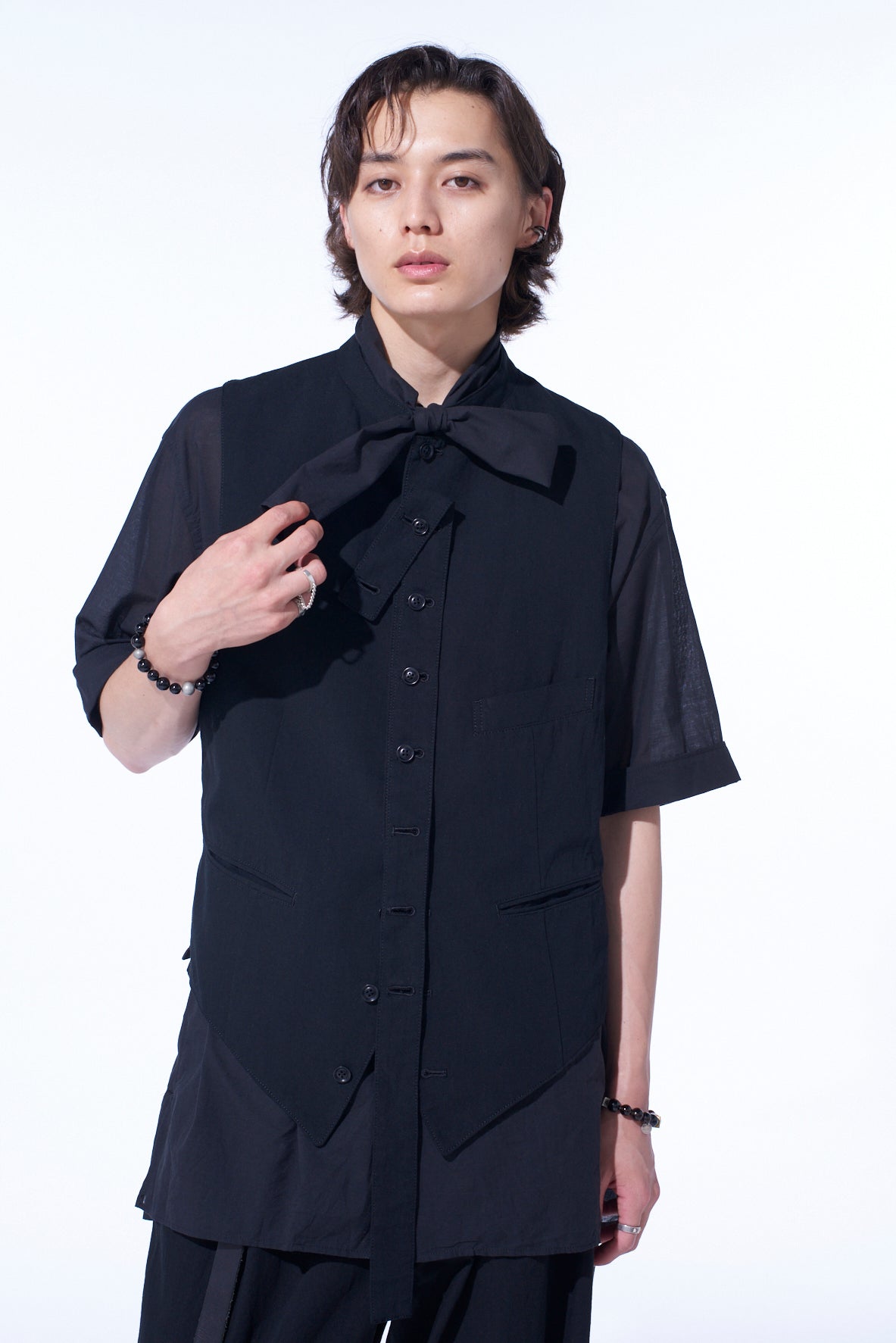 COTTON/LINEN DUNGAREE STAND COLLAR VEST
