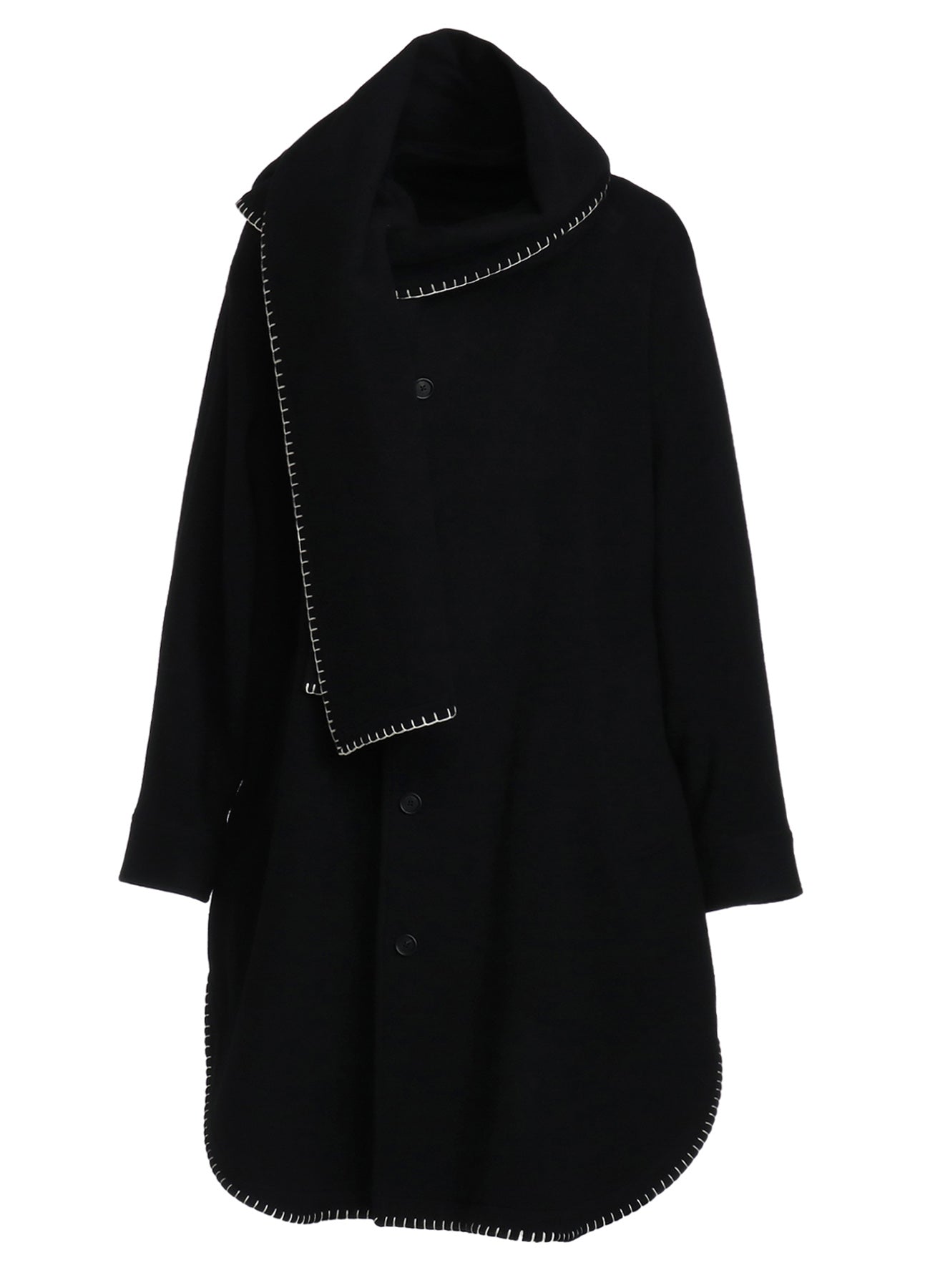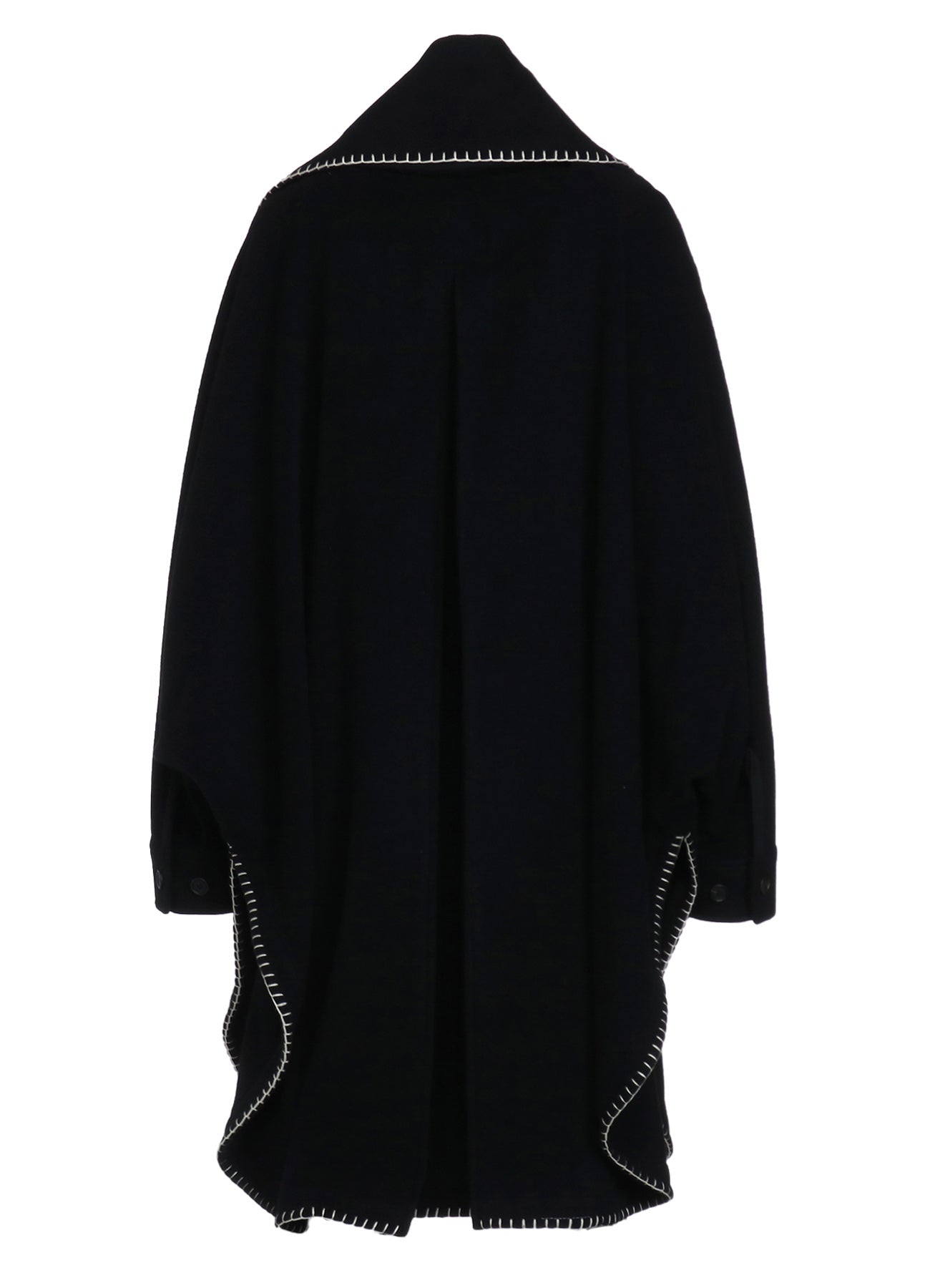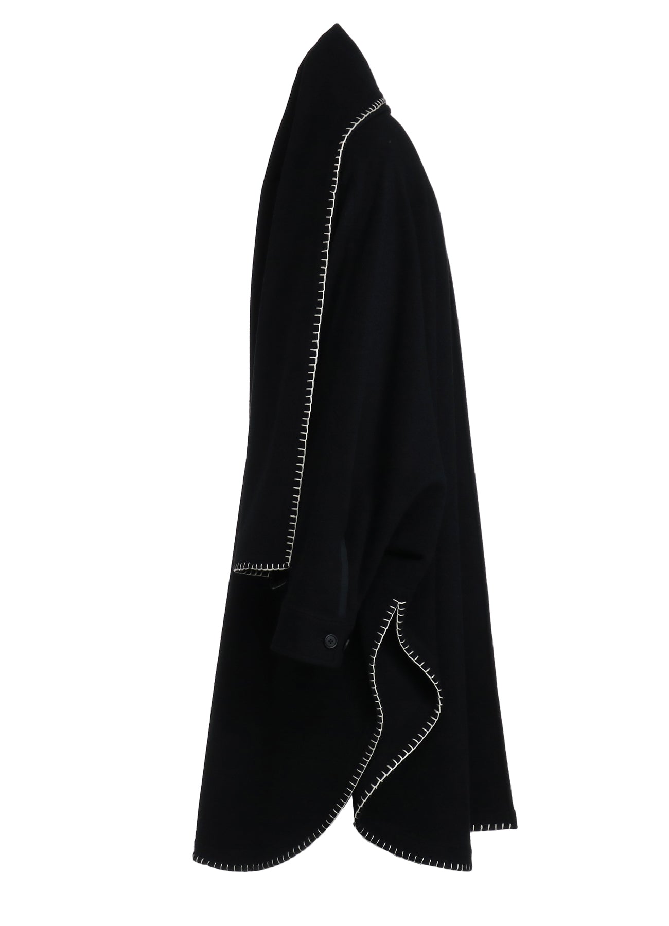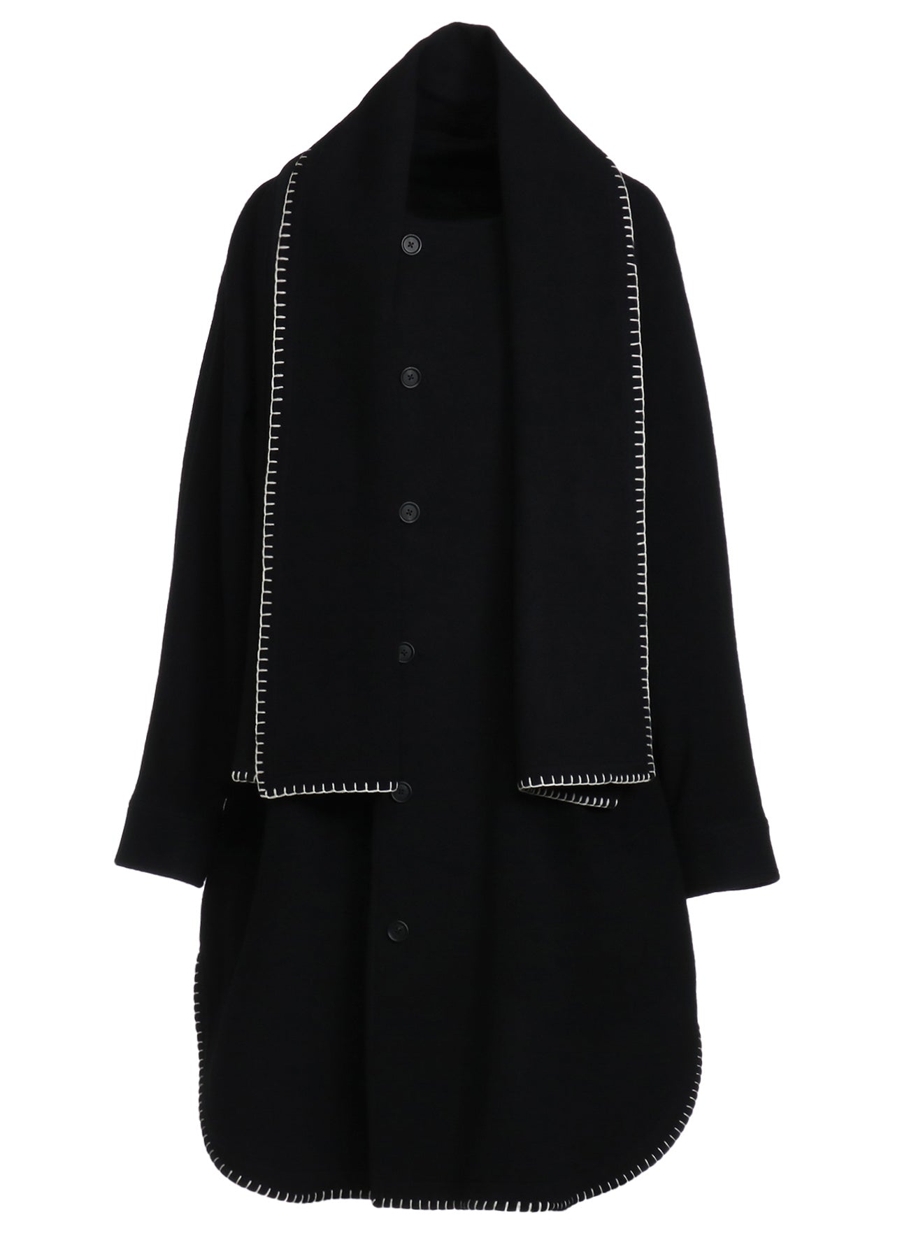 W/TOP MOSSA STOLE COLLAR BIG SILHOUETTE COAT WITH BLANKET STITCH DESIGN