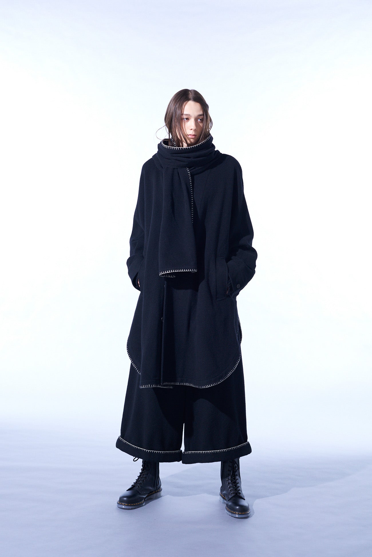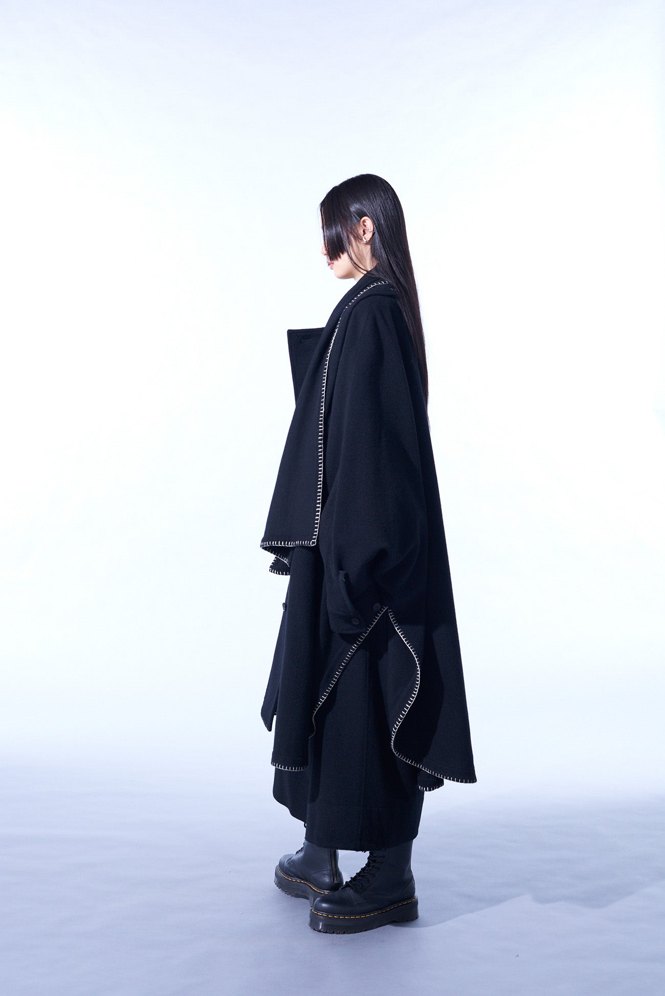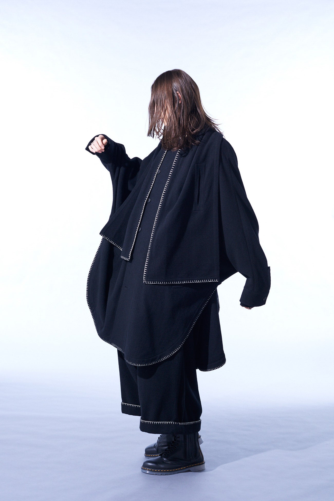 W/TOP MOSSA STOLE COLLAR BIG SILHOUETTE COAT WITH BLANKET STITCH DESIGN