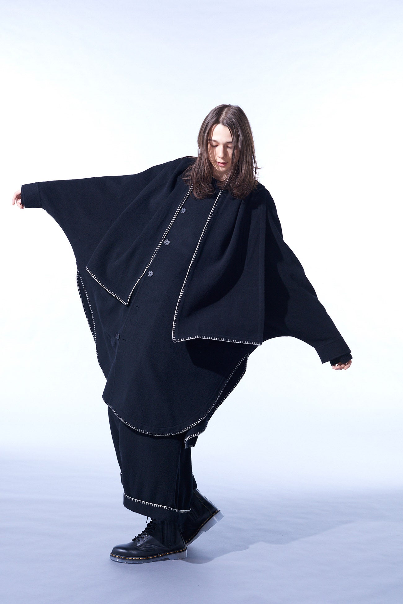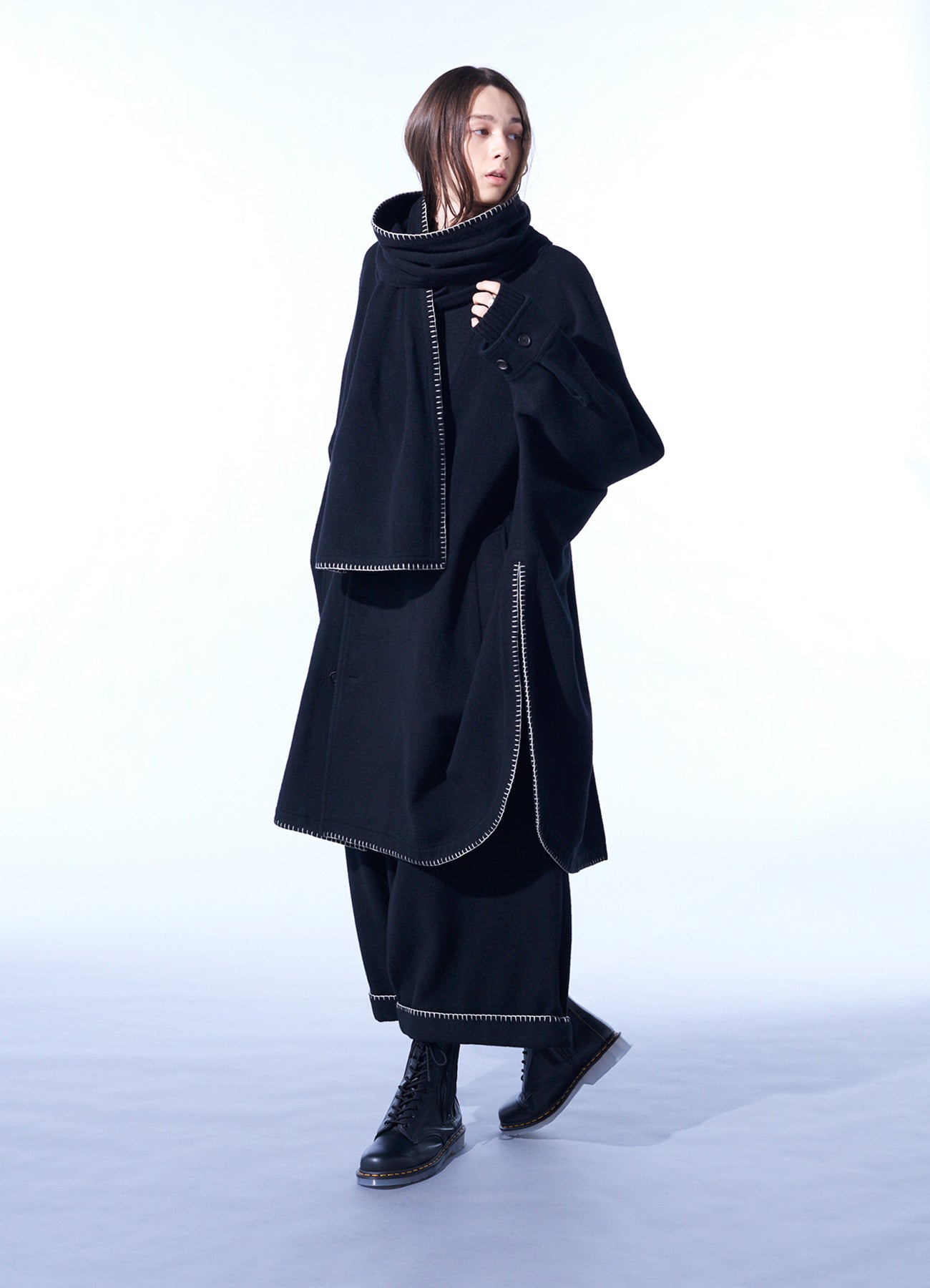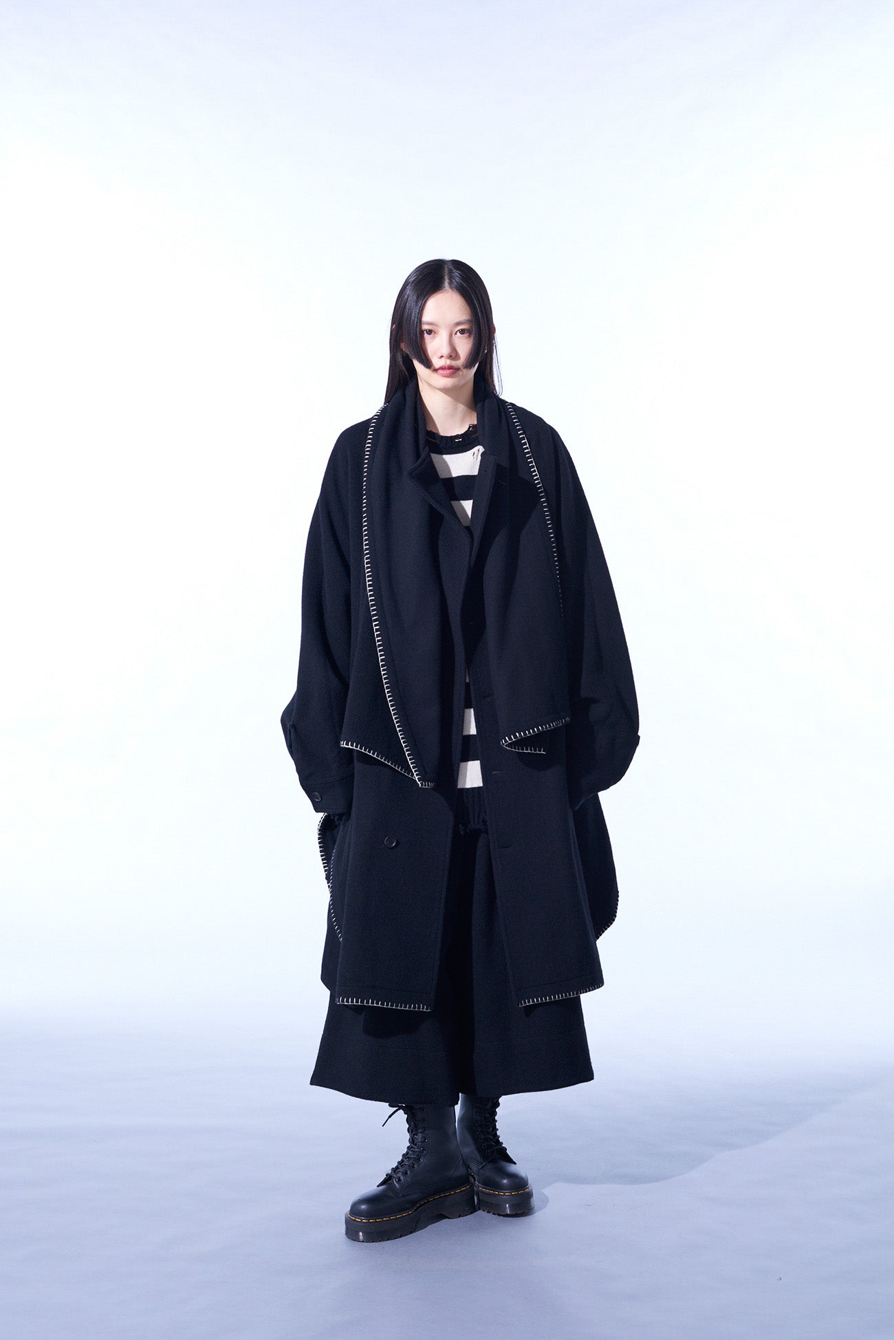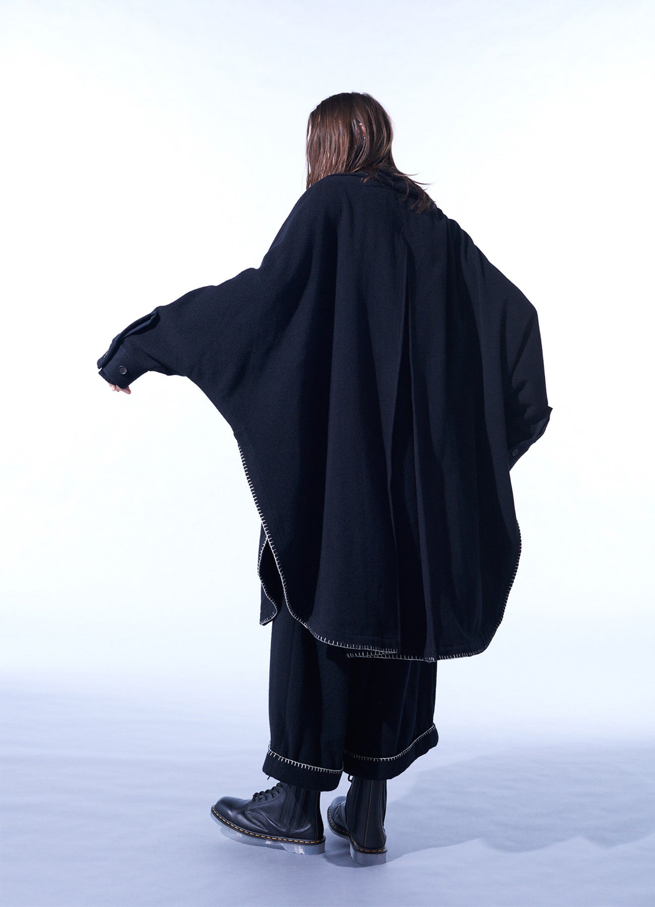 W/TOP MOSSA STOLE COLLAR BIG SILHOUETTE COAT WITH BLANKET STITCH DESIGN