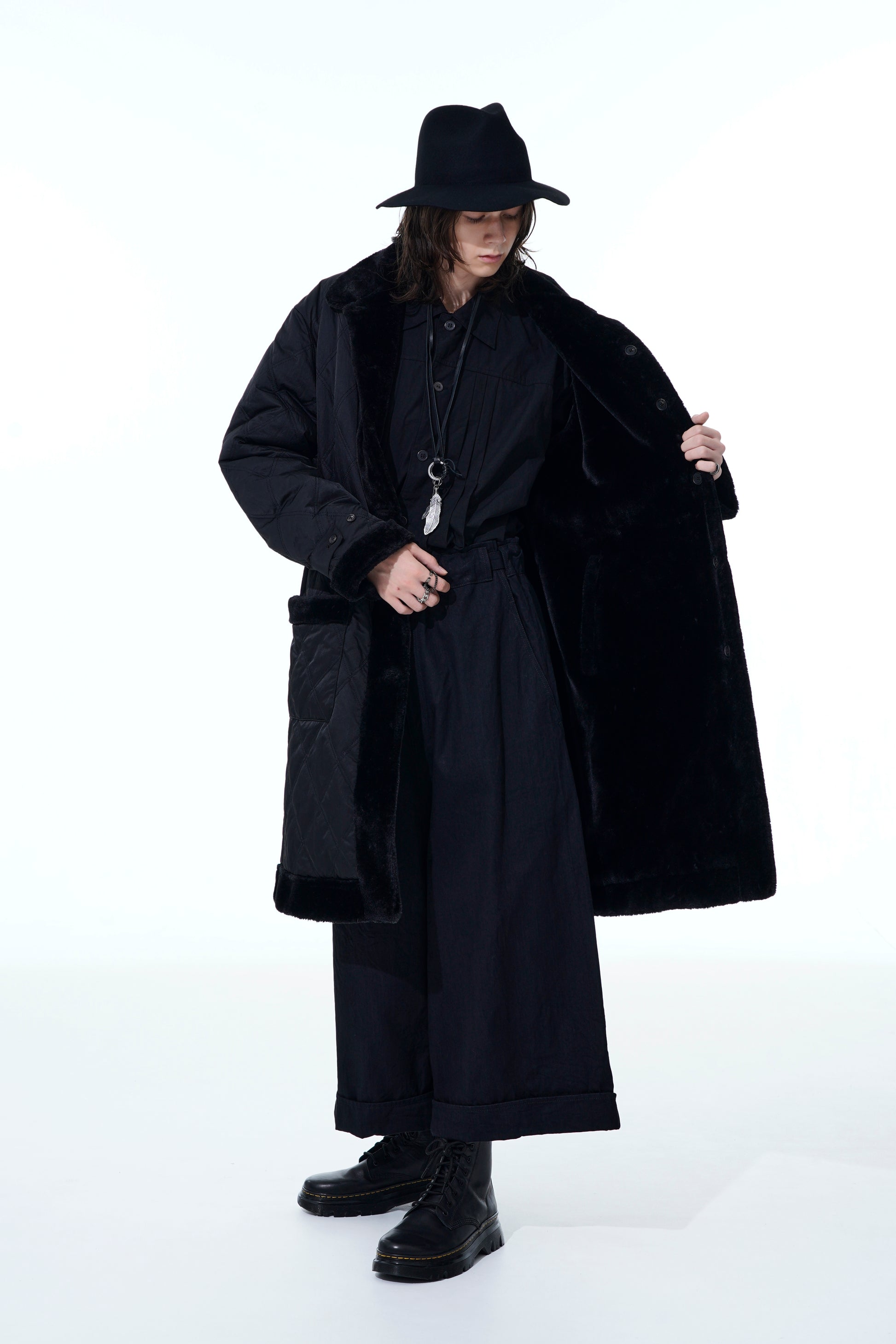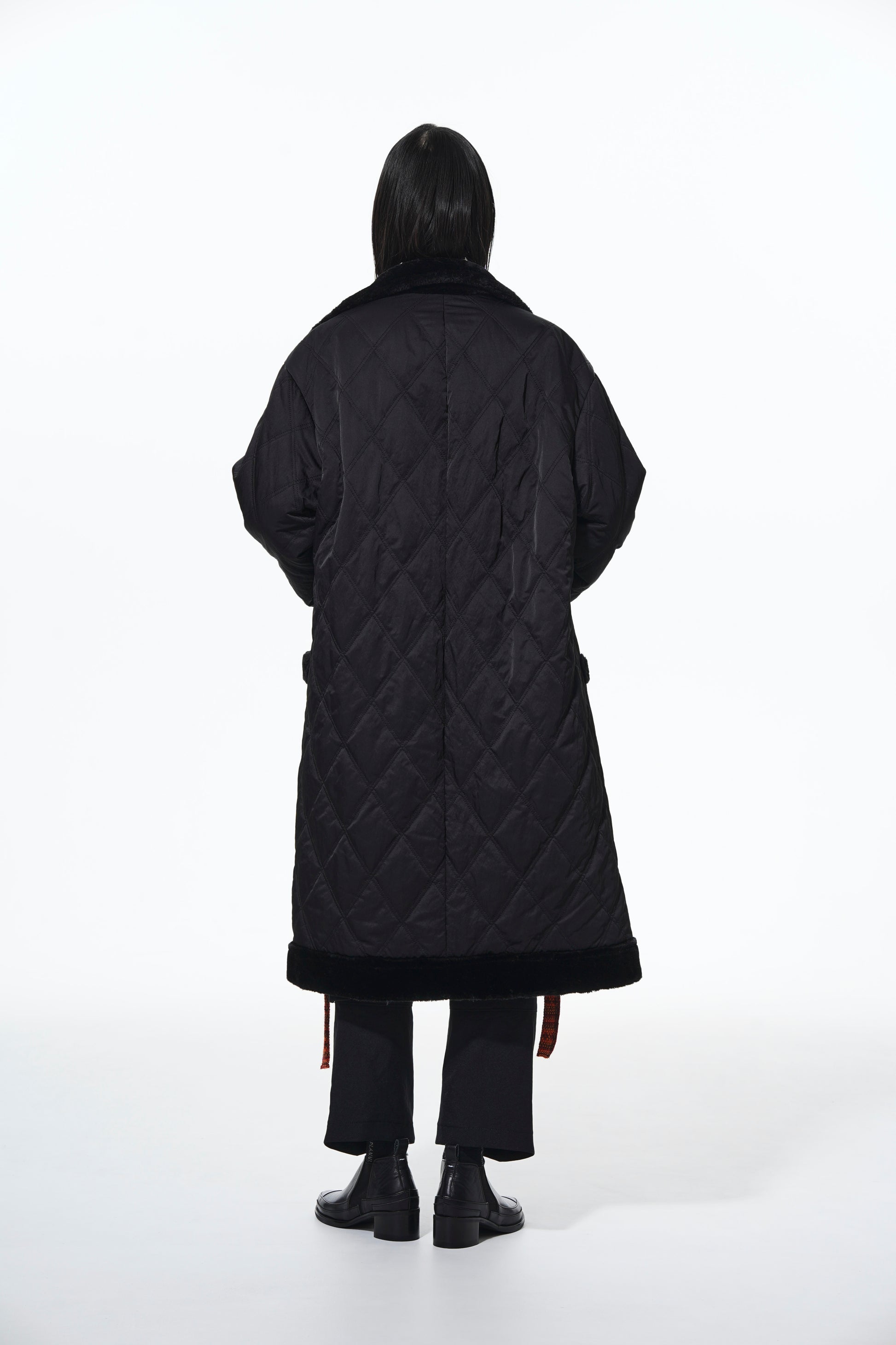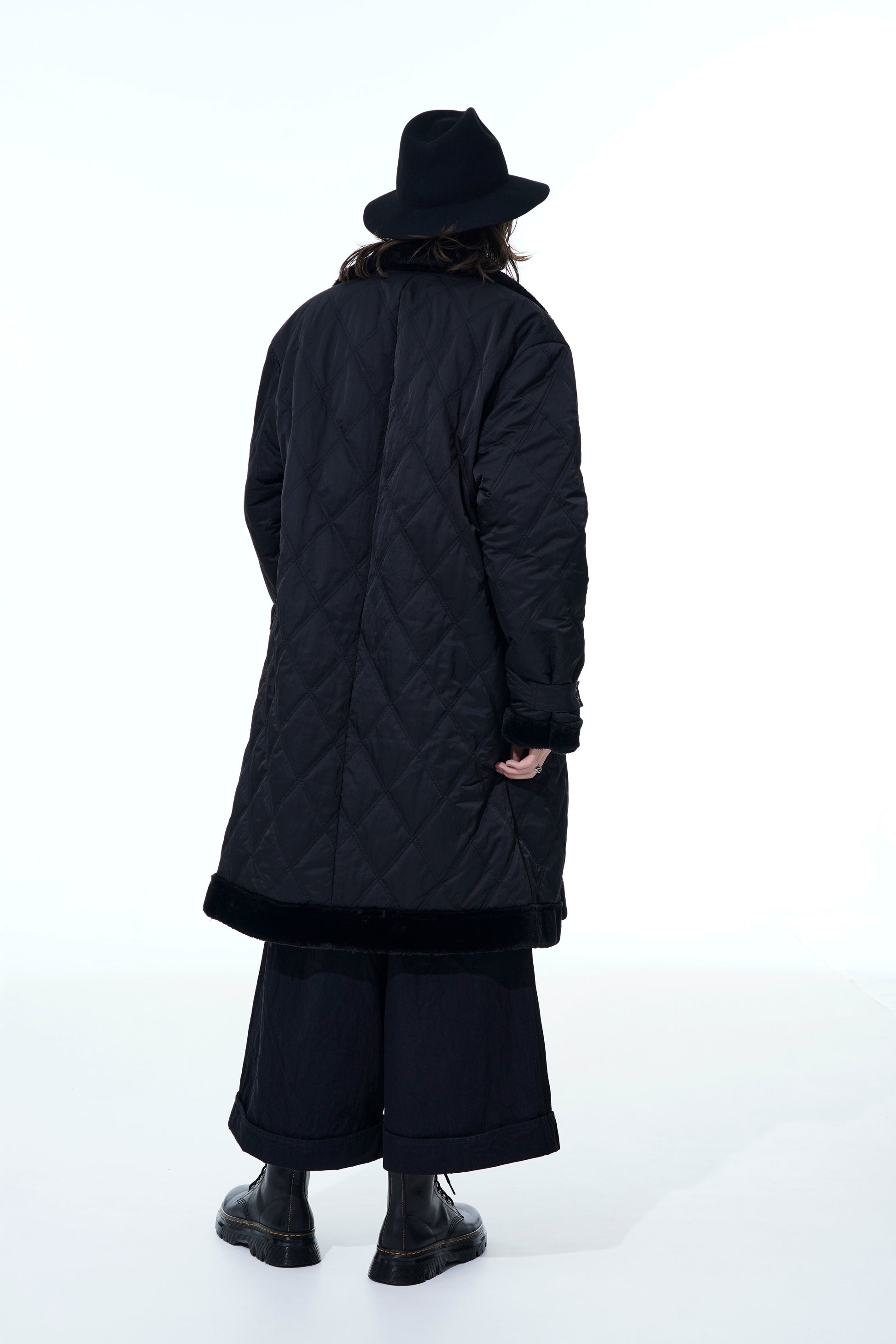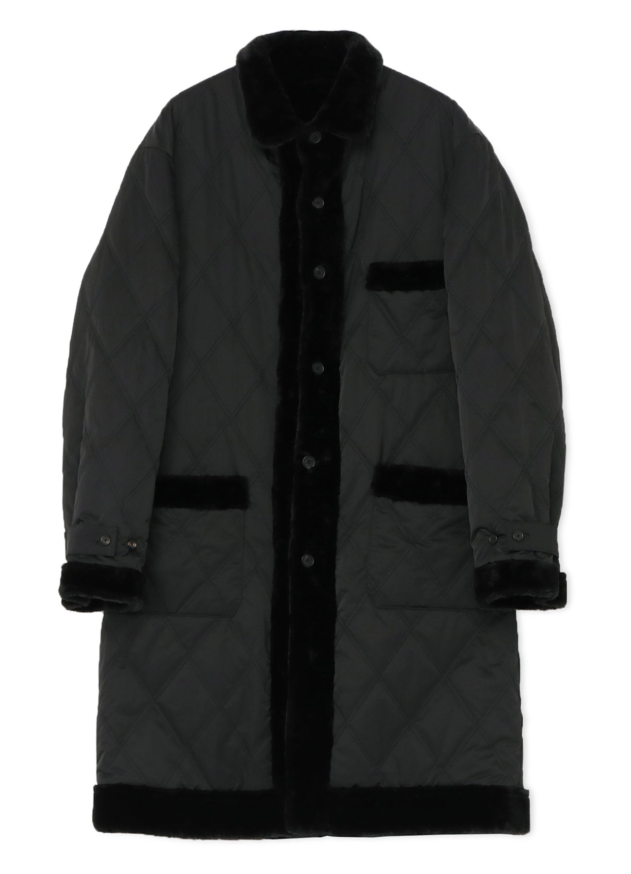 - Reversible design with diamond quilting and fur lining