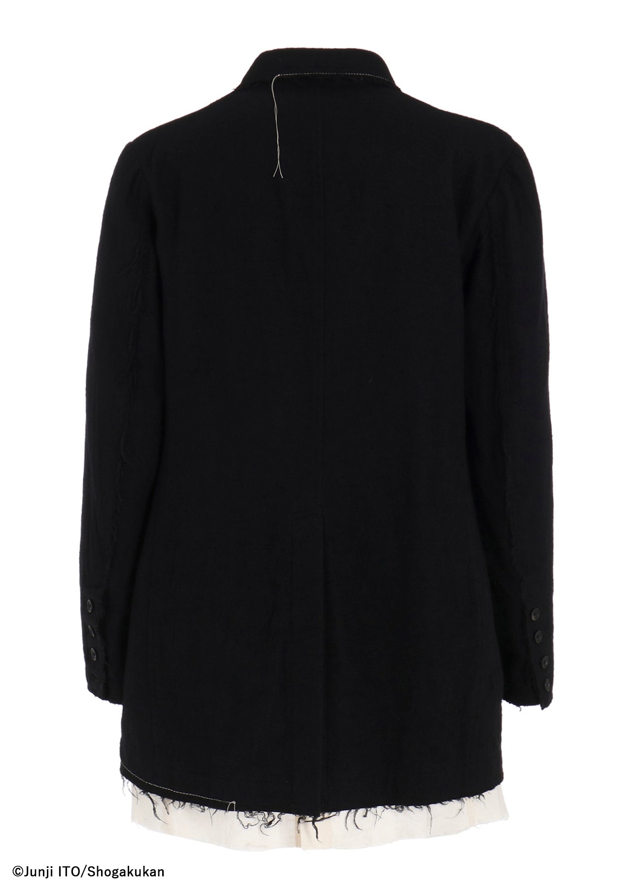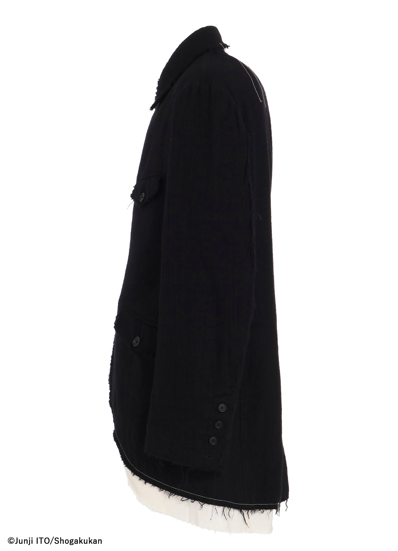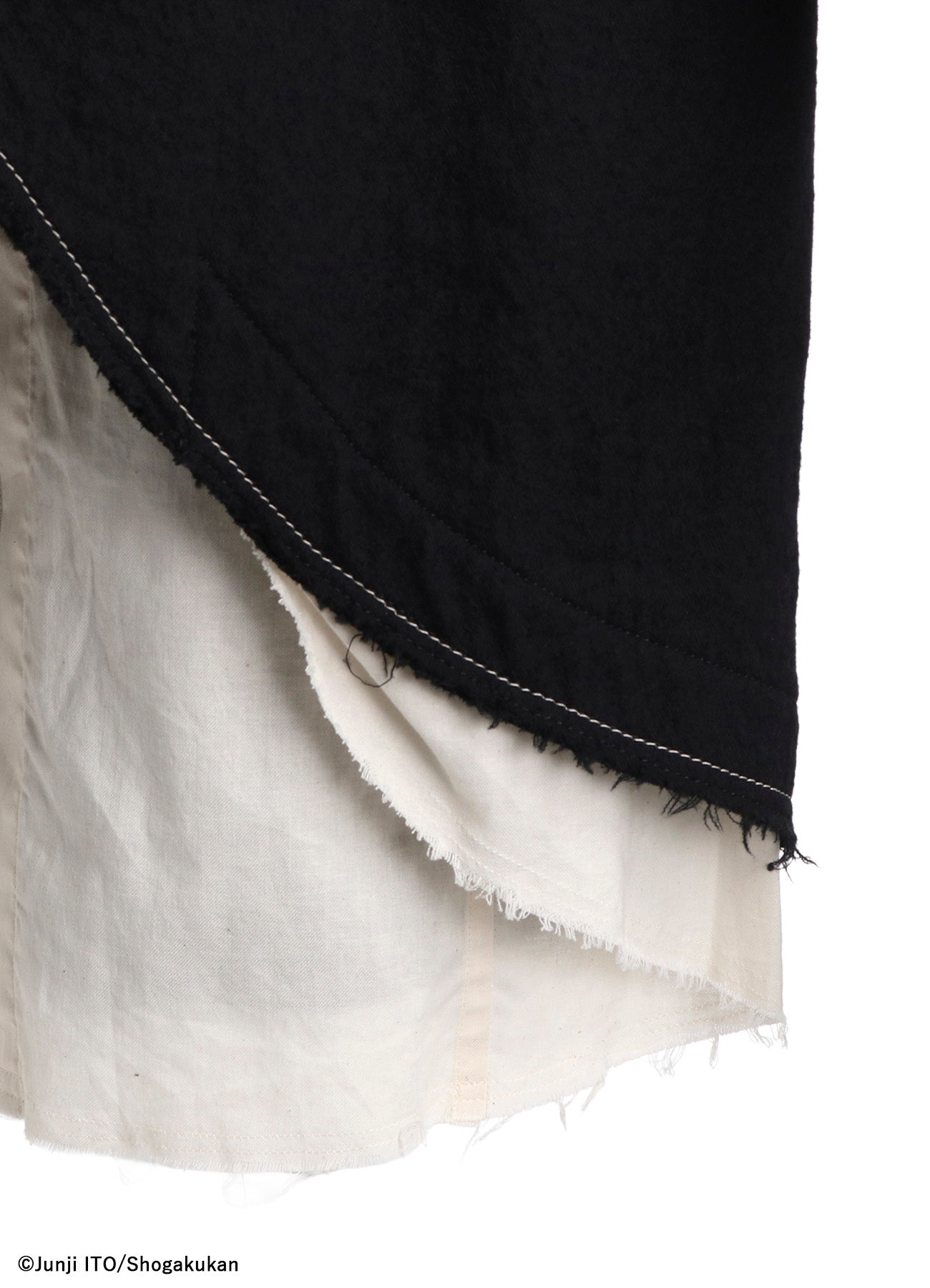 The third special collaboration with renowned horror manga artist Junji Ito elevates his "Junji Ito World" into art fashion using S’YTE's unique detailing and techniques. The reversible semi-double jacket, military-inspired with a chin strap and flap pockets, showcases his artistry, featuring distinctive prints from "Uzumaki."