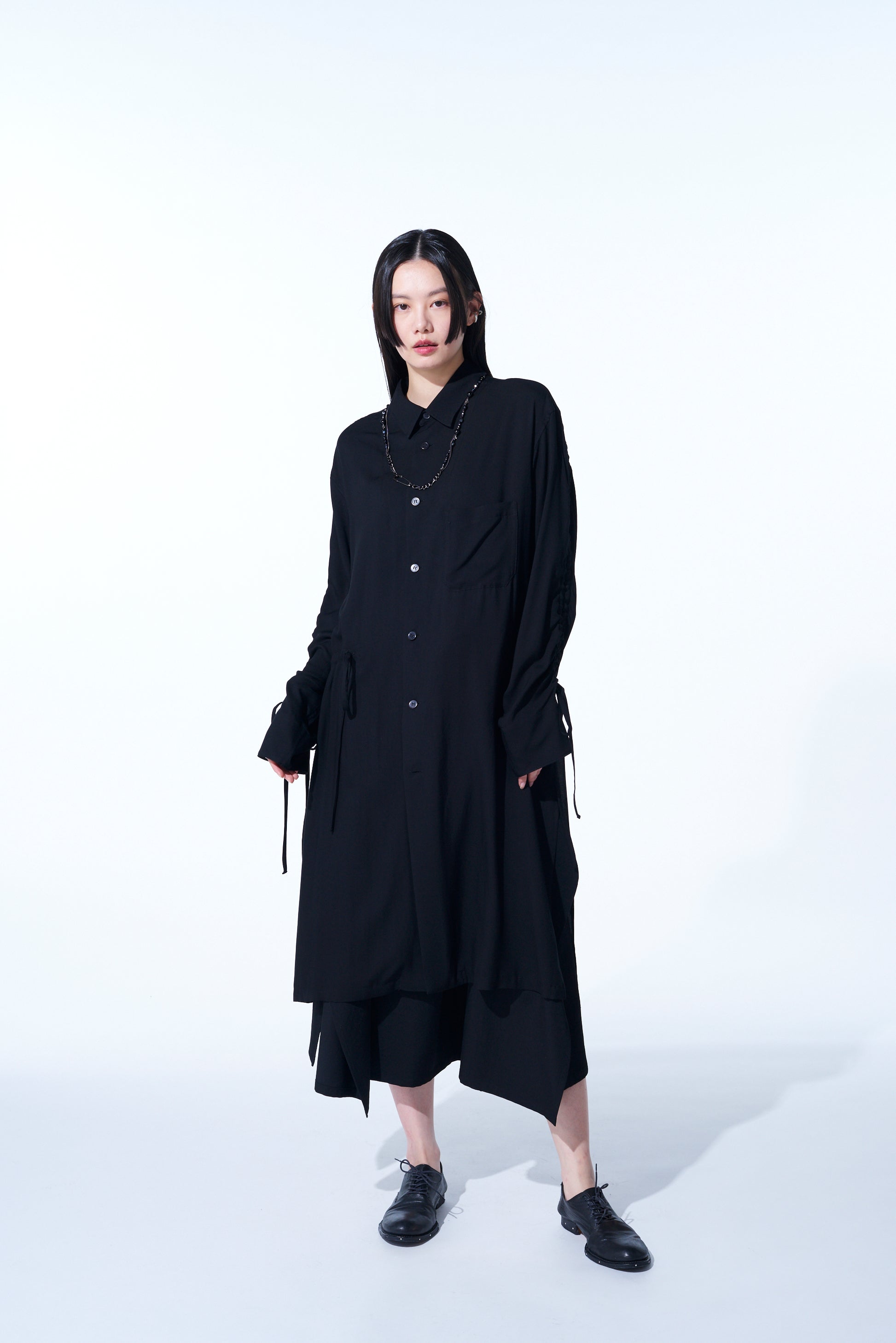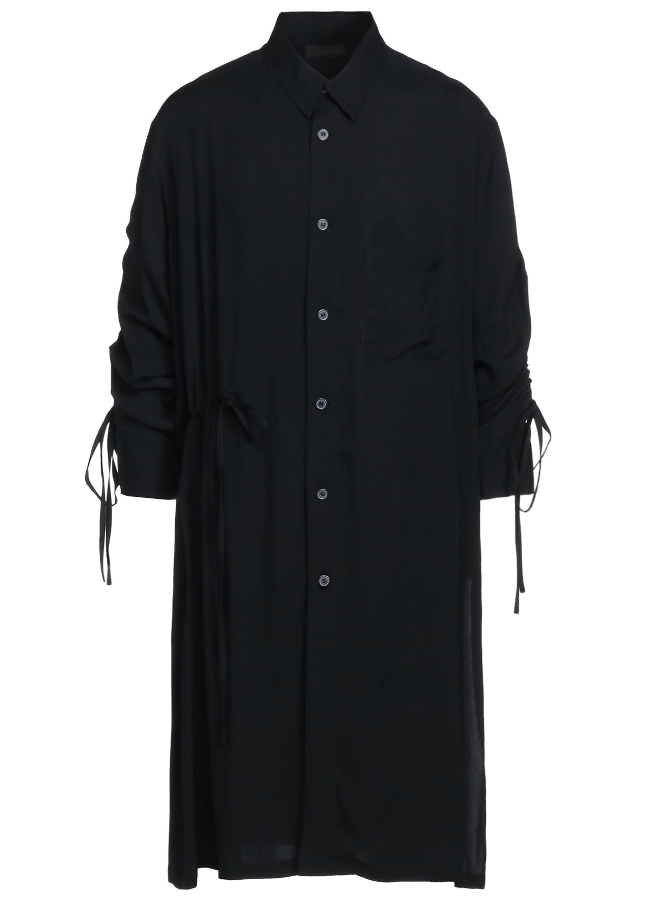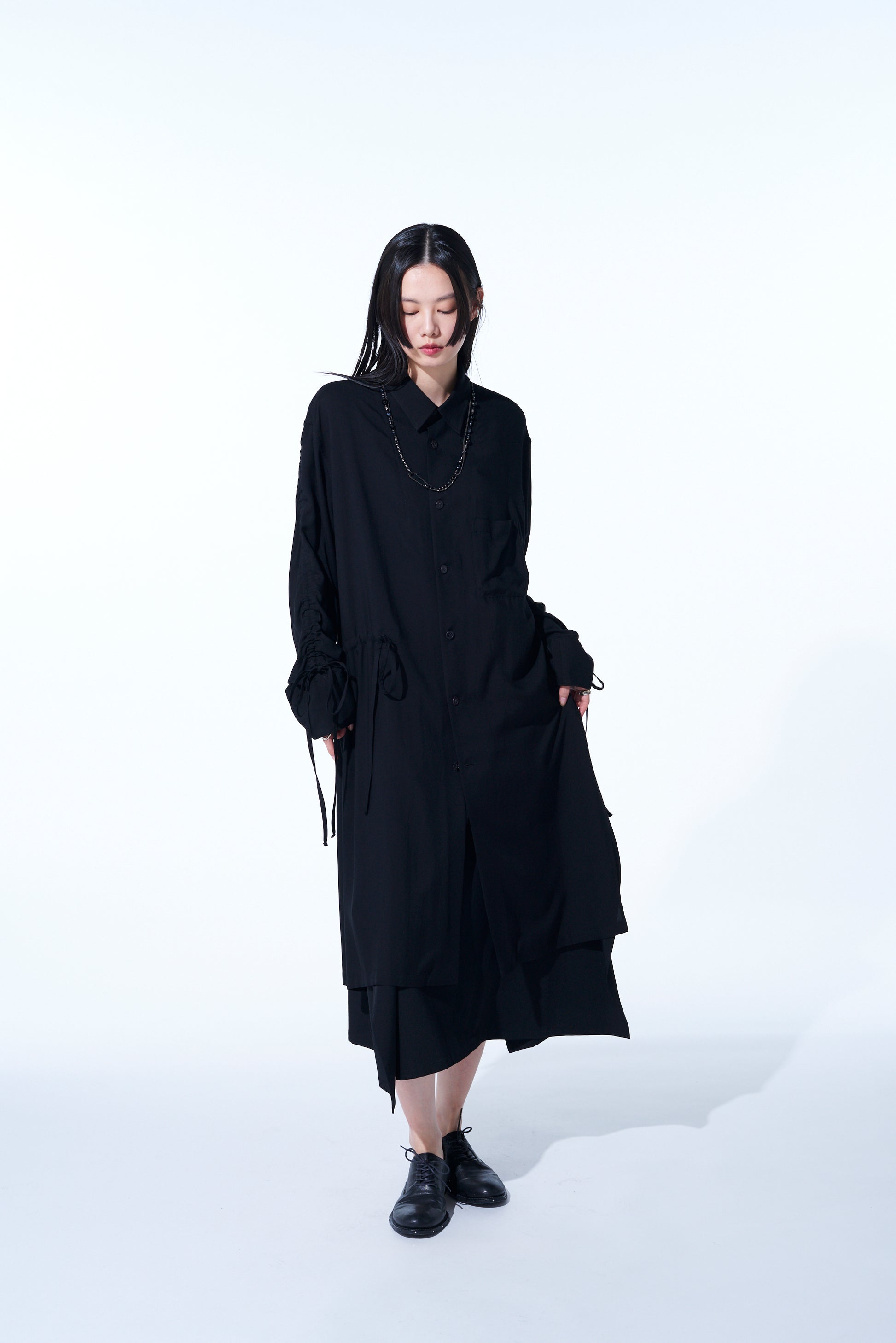 RAYON WASHER TWILL OVERSIZED LONG SHIRT WITH GATHERED STRINGS