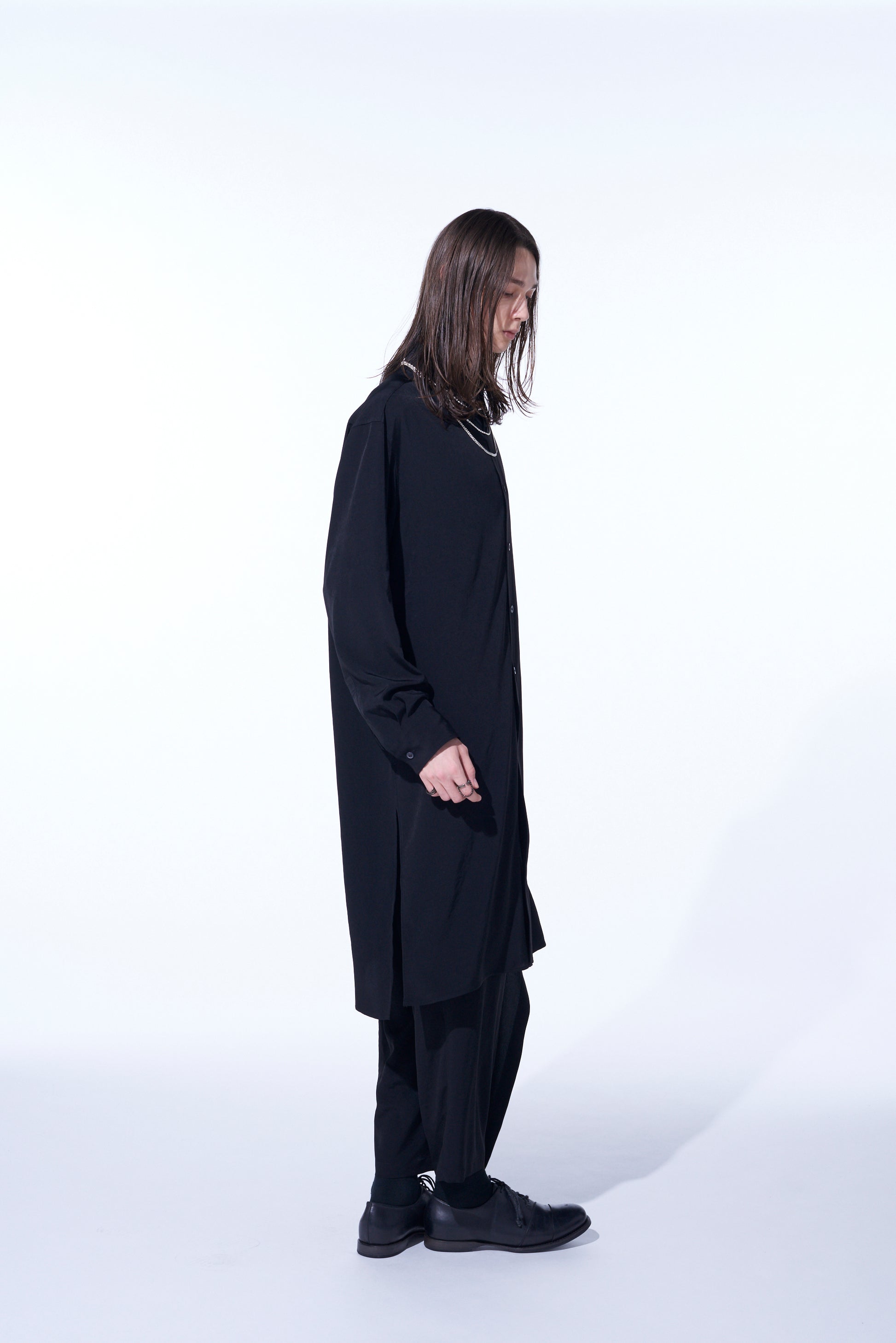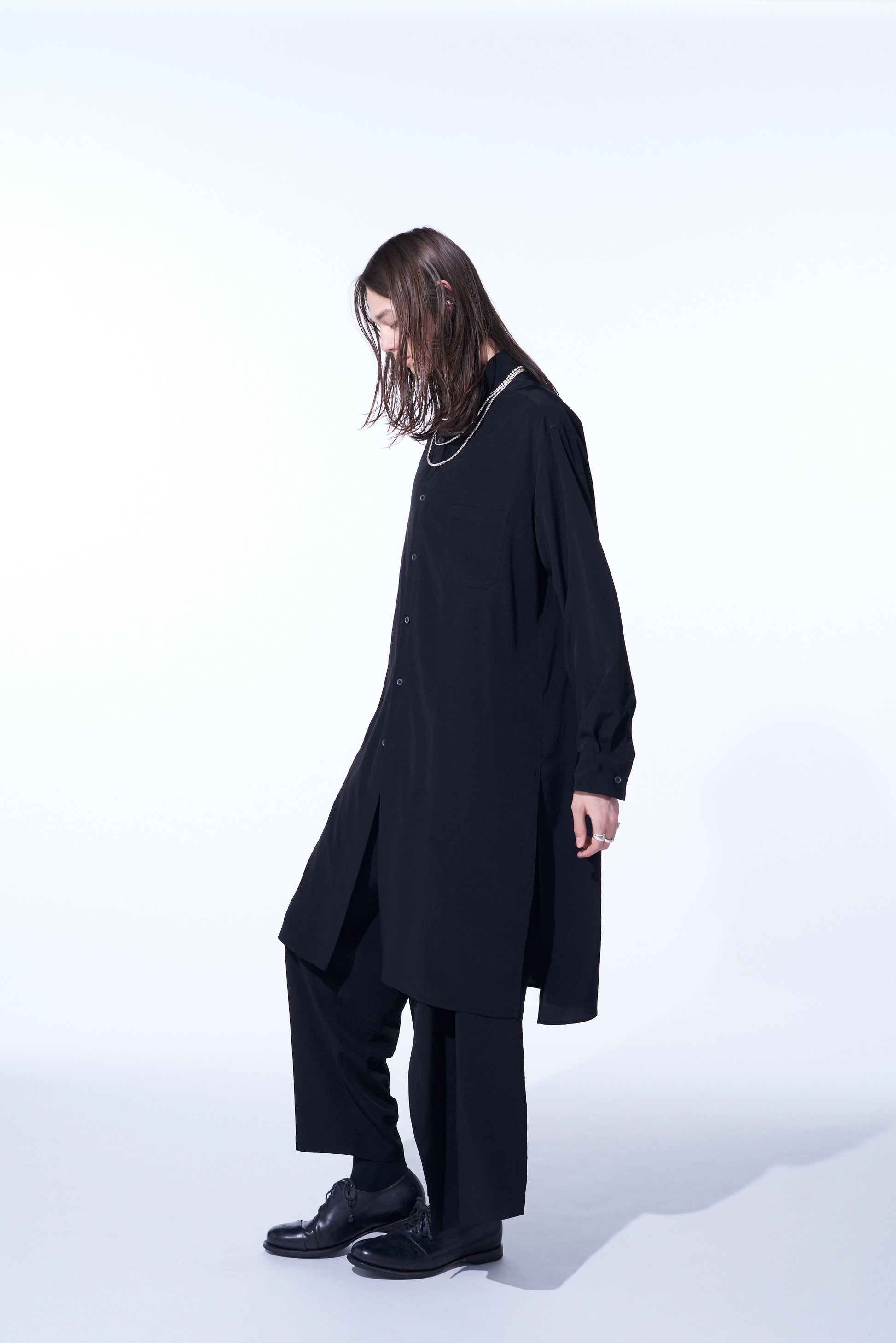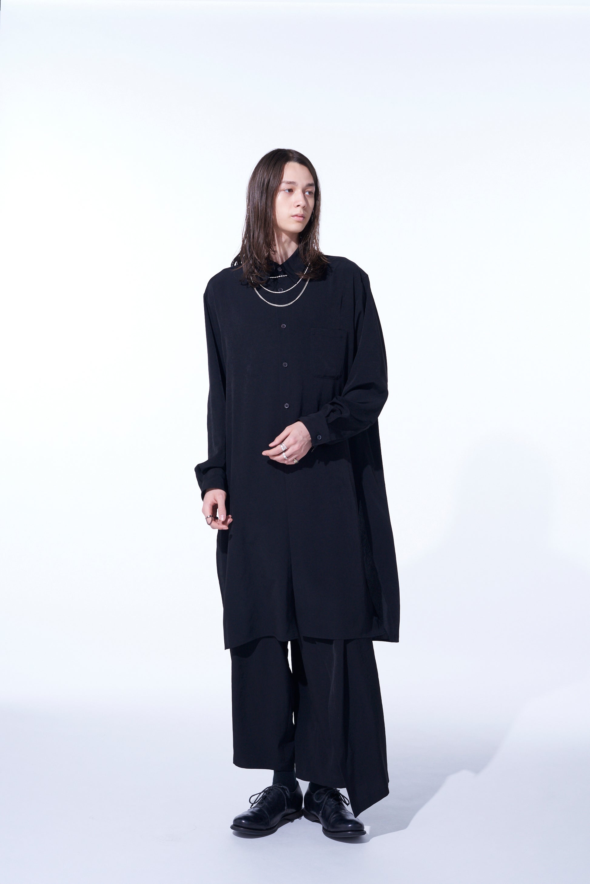 CREPE DE CHINE REGULAR COLLAR LOOSE FIT LONG SHIRT