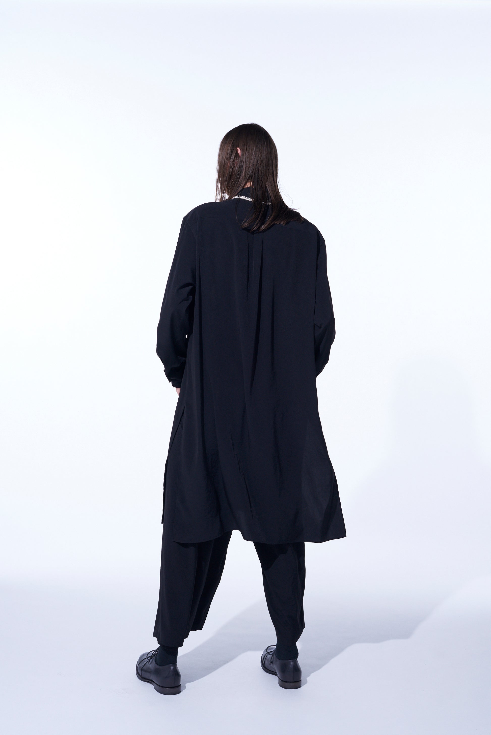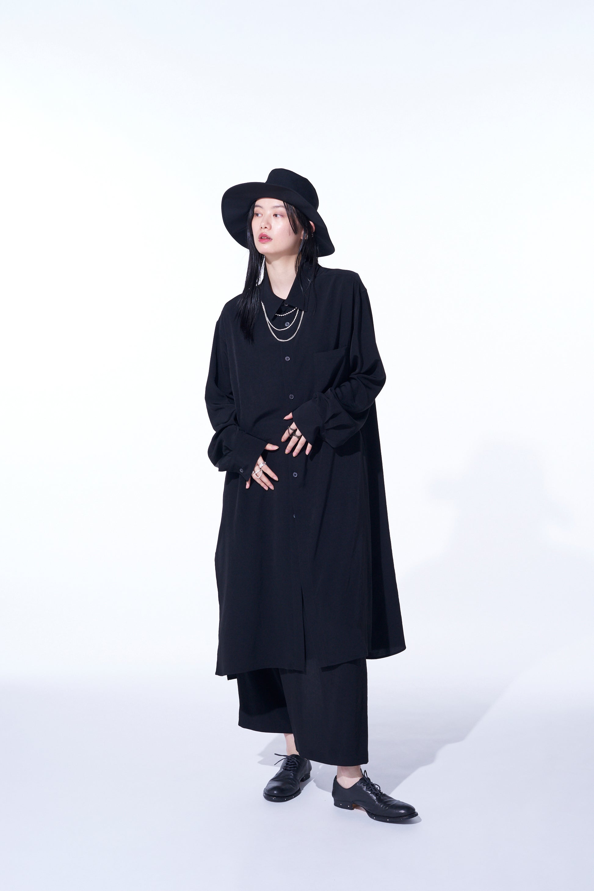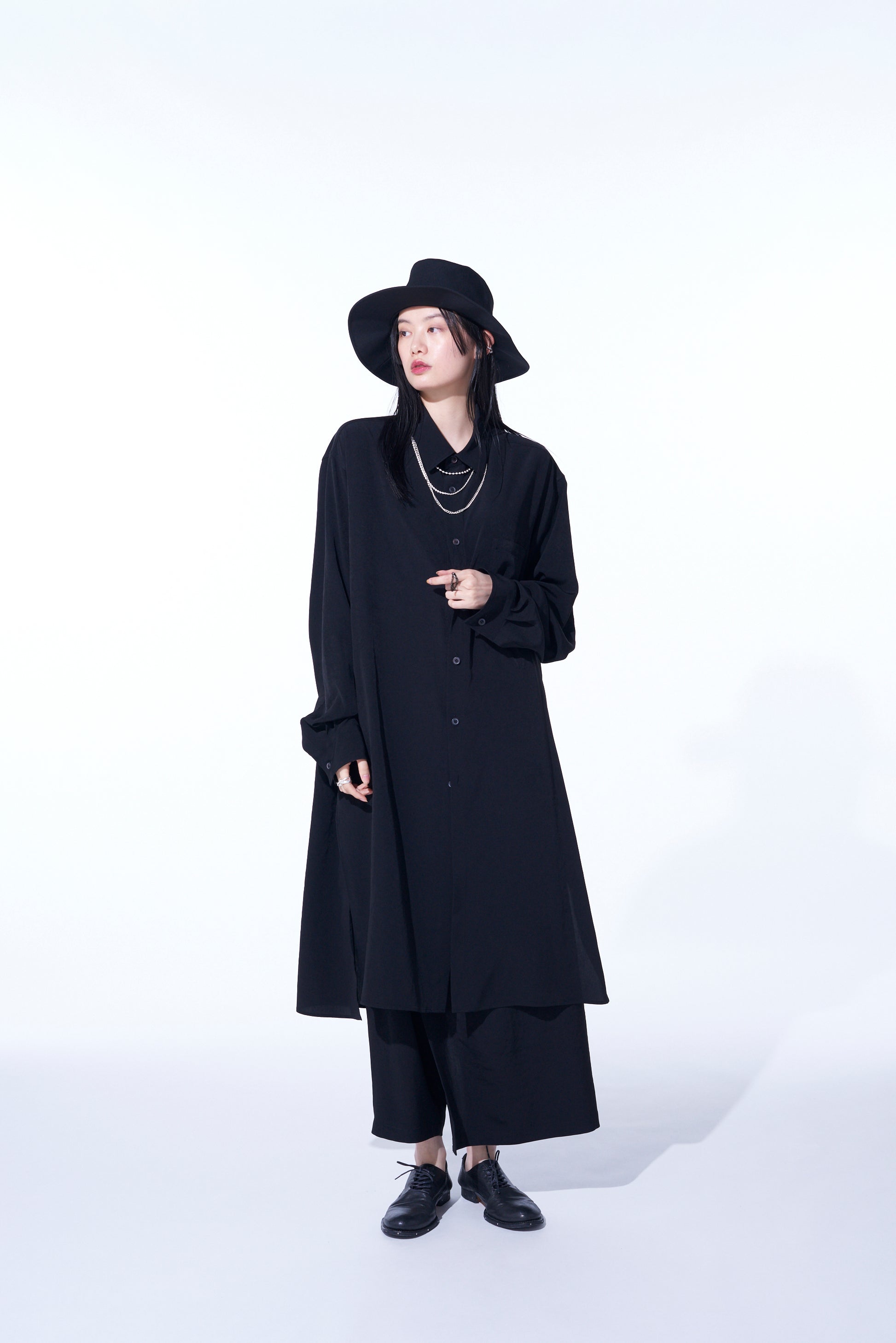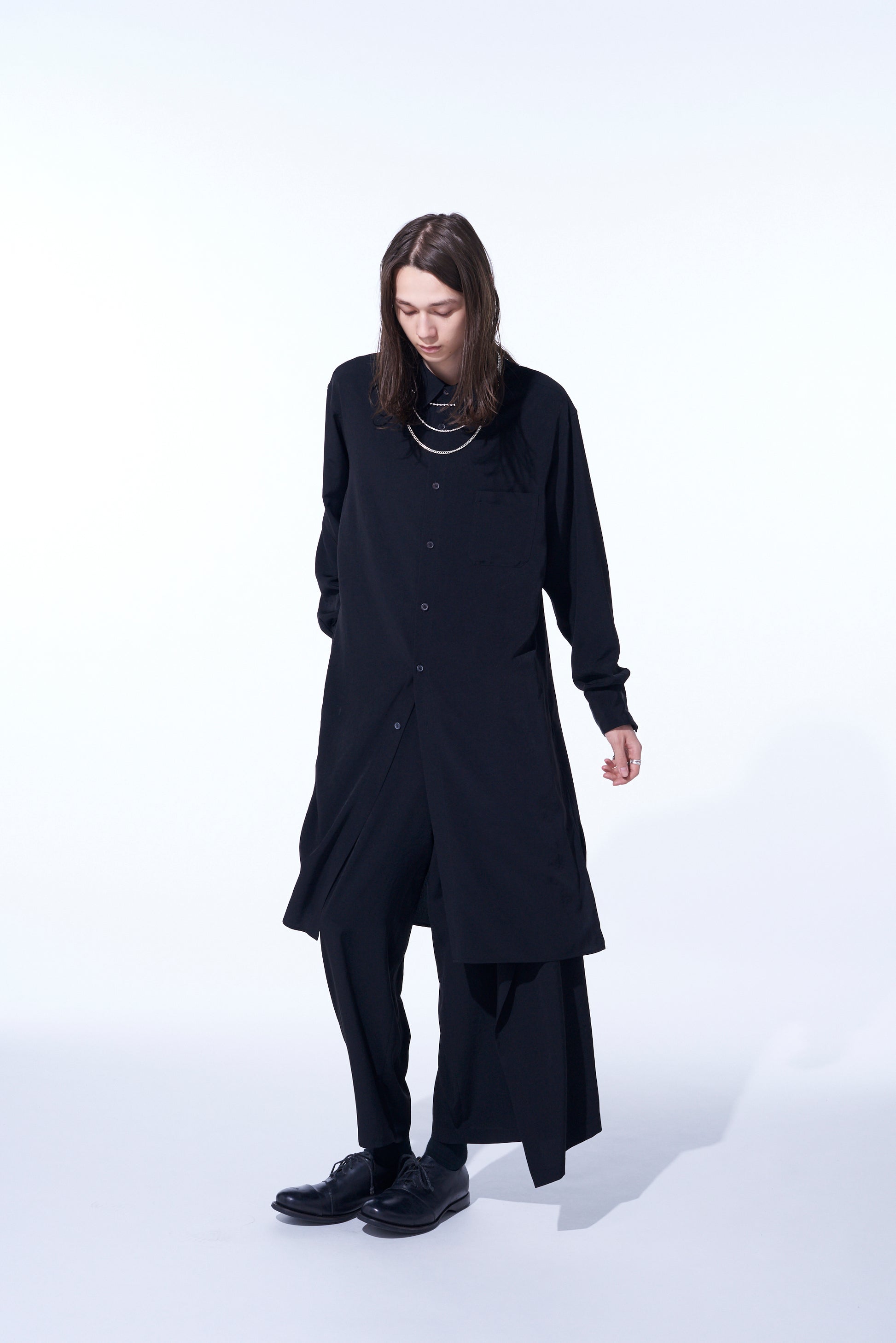 CREPE DE CHINE REGULAR COLLAR LOOSE FIT LONG SHIRT