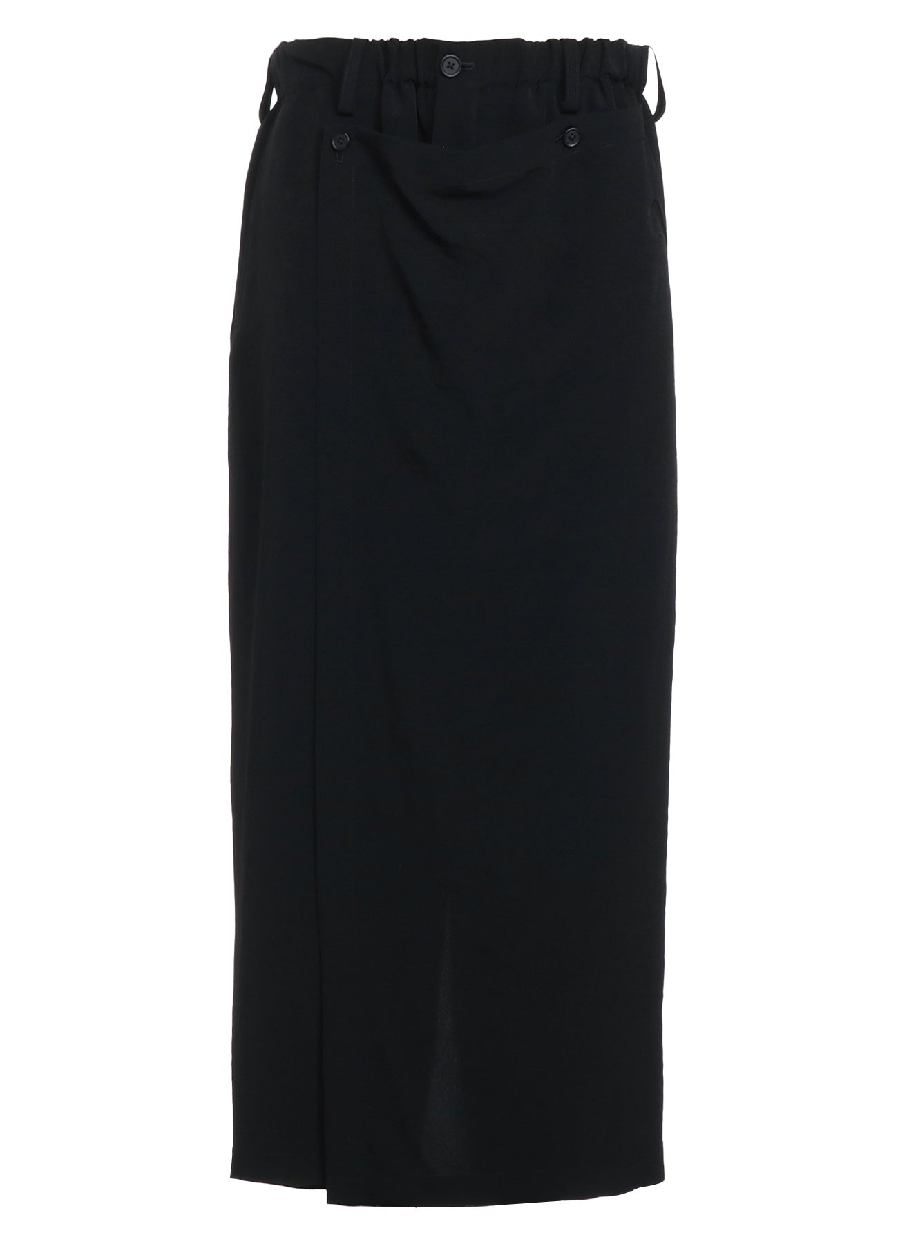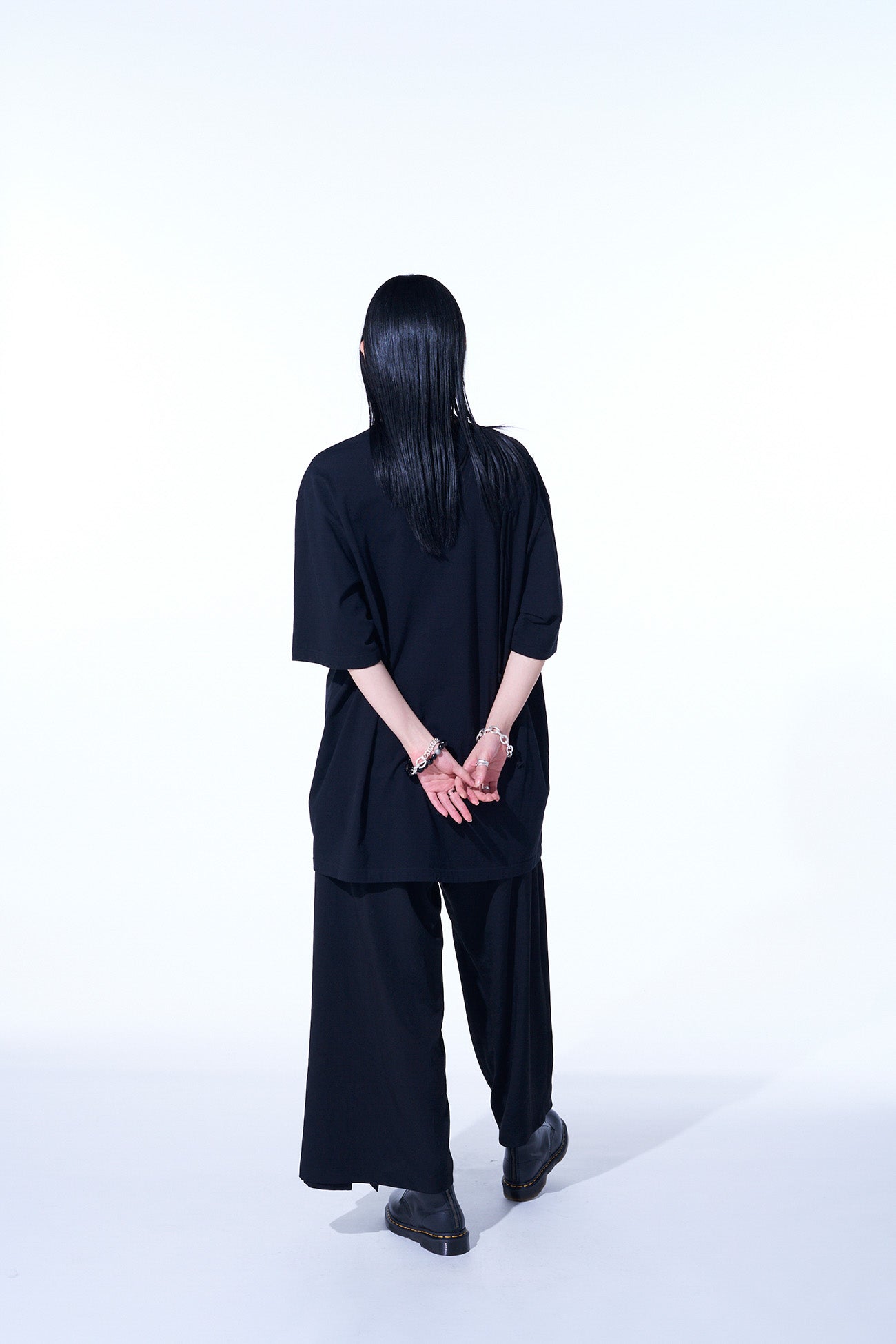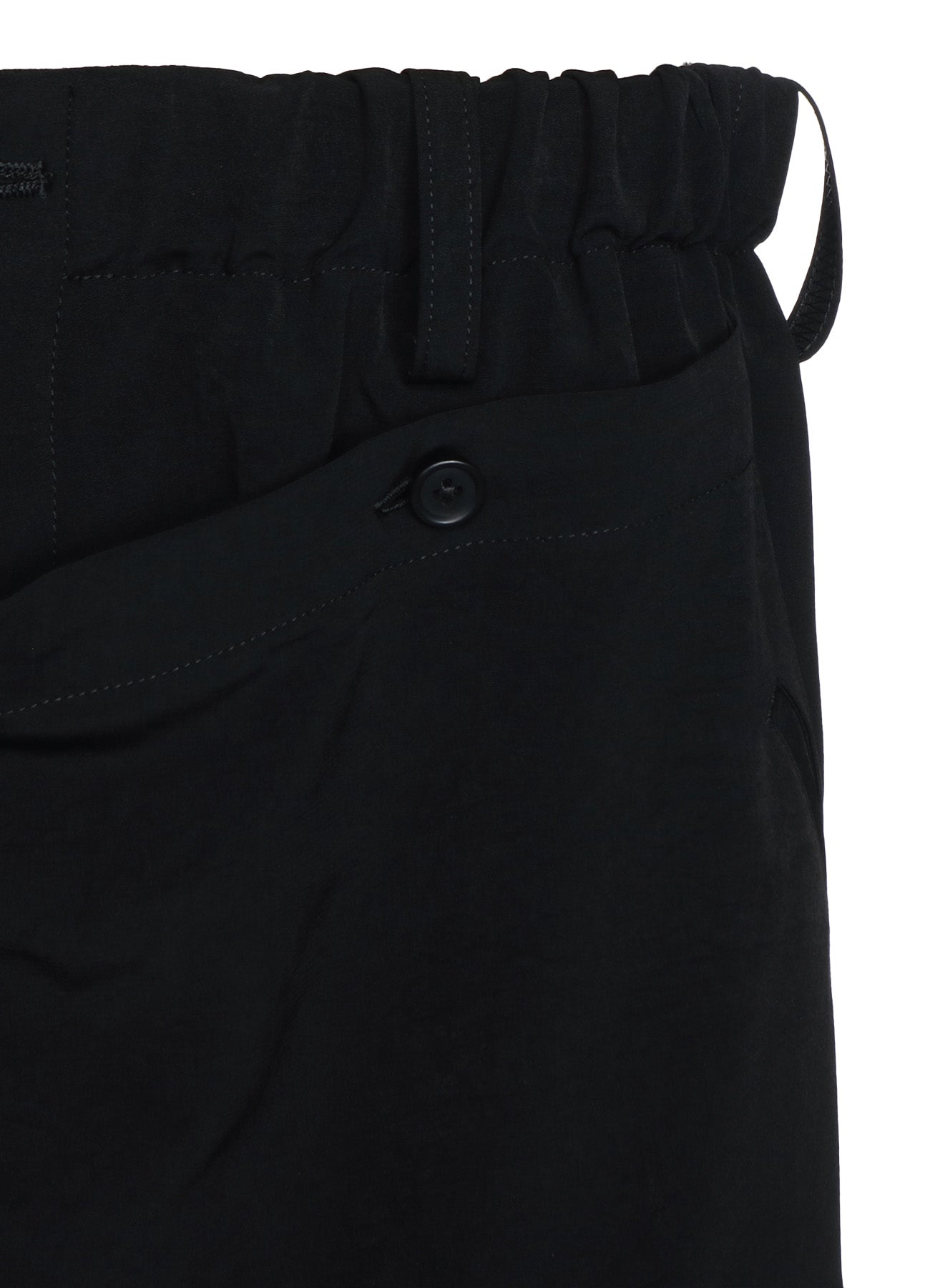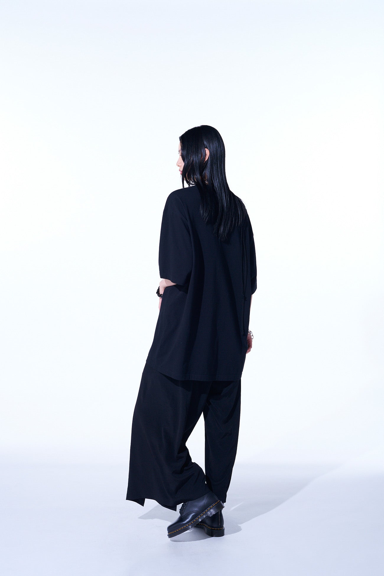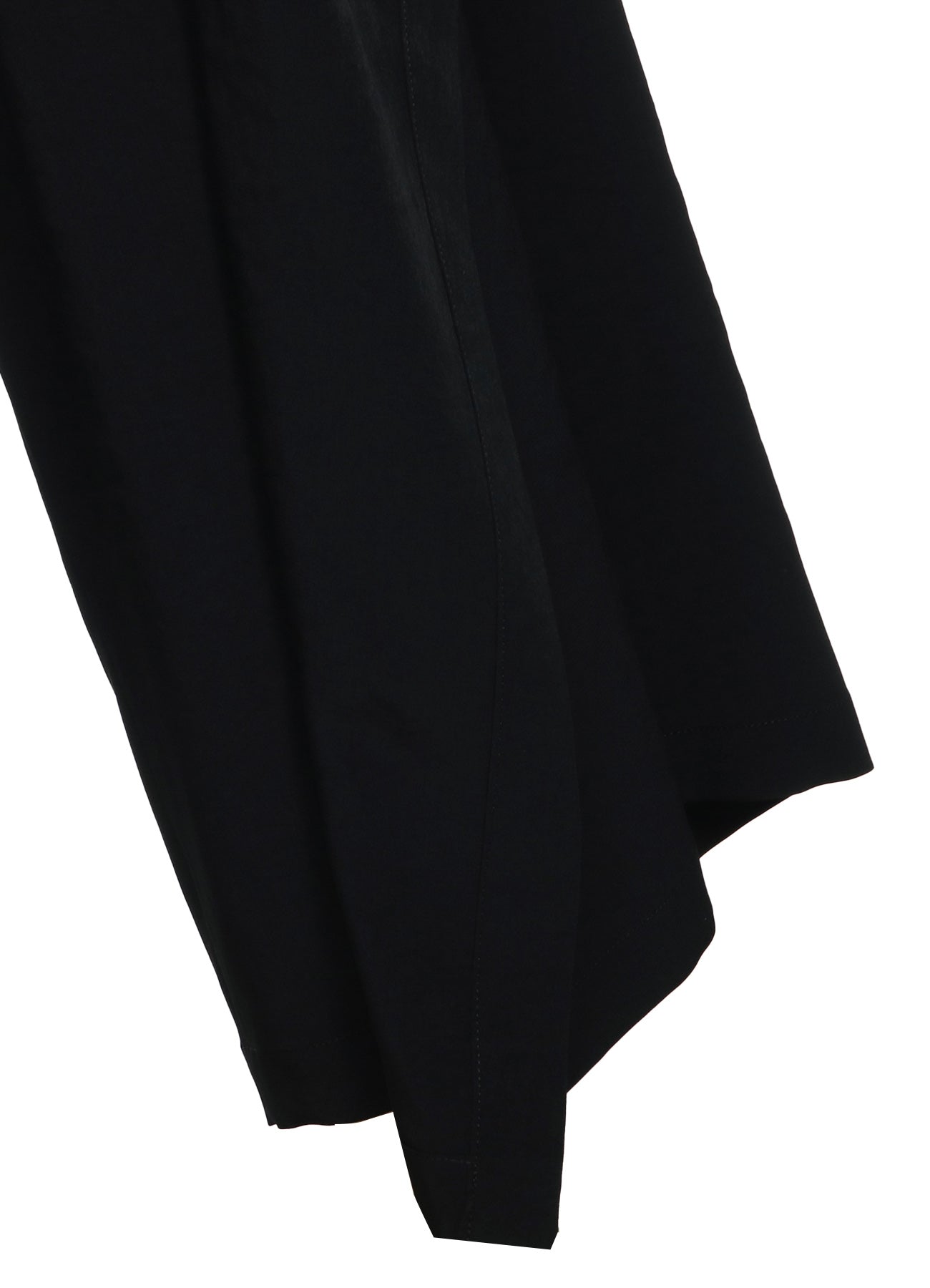 A unique design with tapered wide pants, combining voluminous fabric in a wrap style. The wrap part can be adjusted at the waist with buttons, creating dynamic movement. Easy to wear with an elastic and drawstring waist. Versatile coordination with matching tops and adaptable footwear.