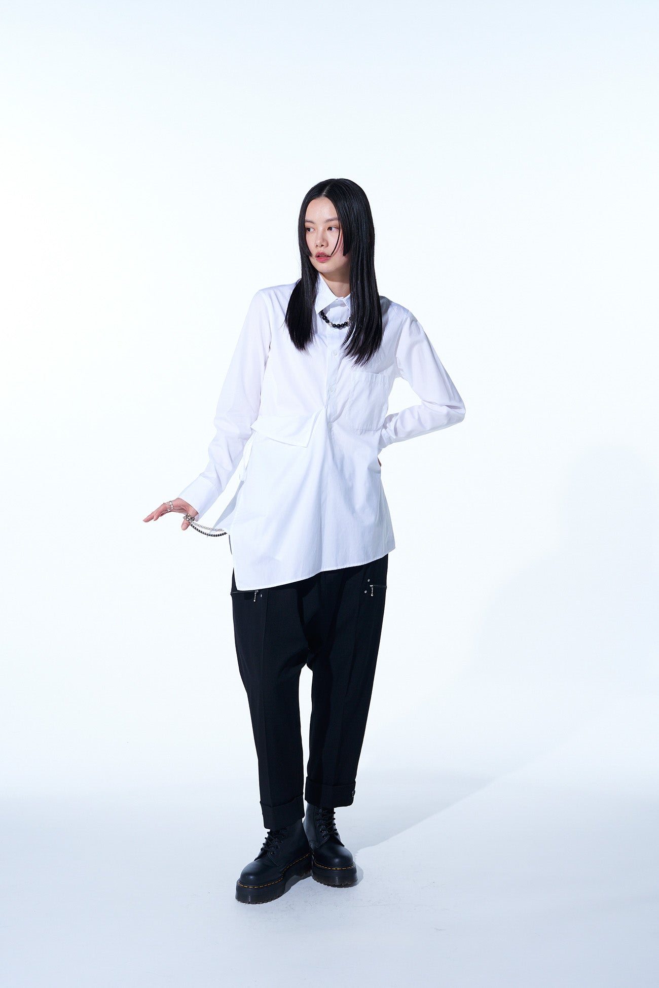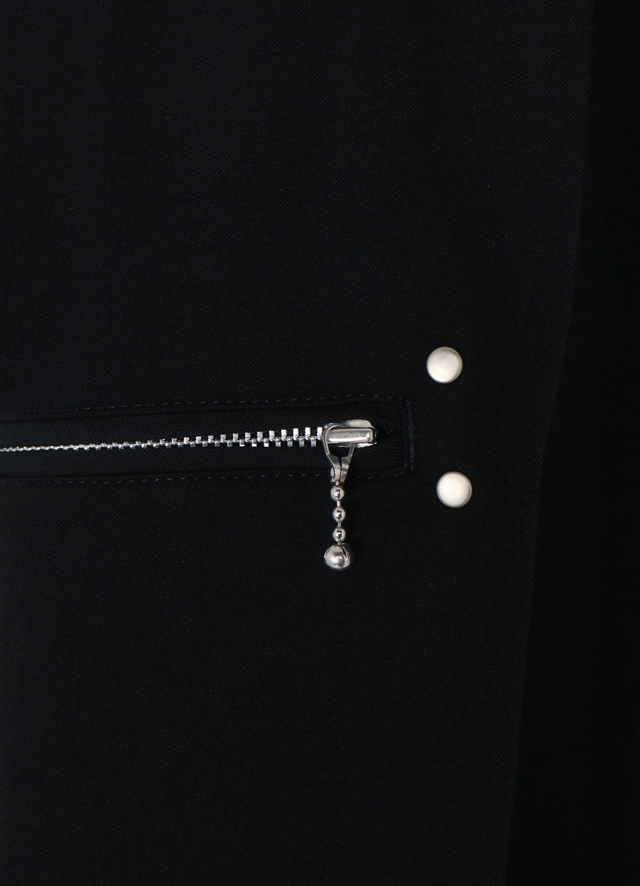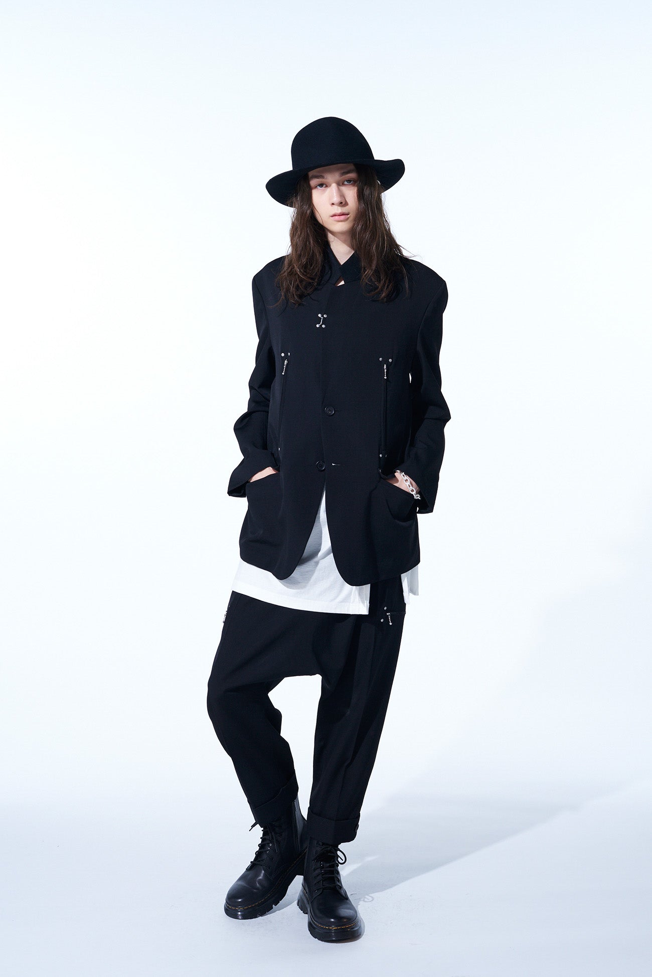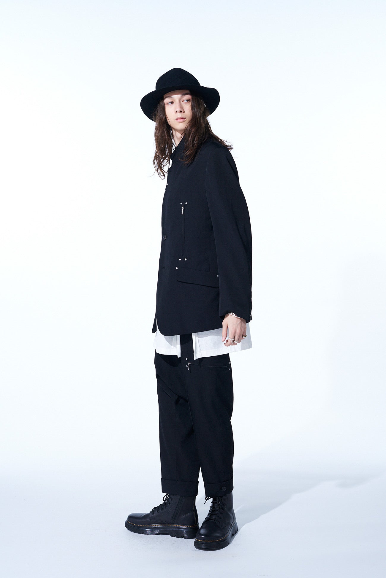 This best-selling sarouel pants have been widely supported every season. Now featuring 100% wool gabardine, they offer exceptional comfort and a beautiful silhouette. Enhanced with cuffed hems, button YY style, ball chains, studs, and wallet chain D-rings, they pair excellently with the STUDS JACKET (UY-J09-101).