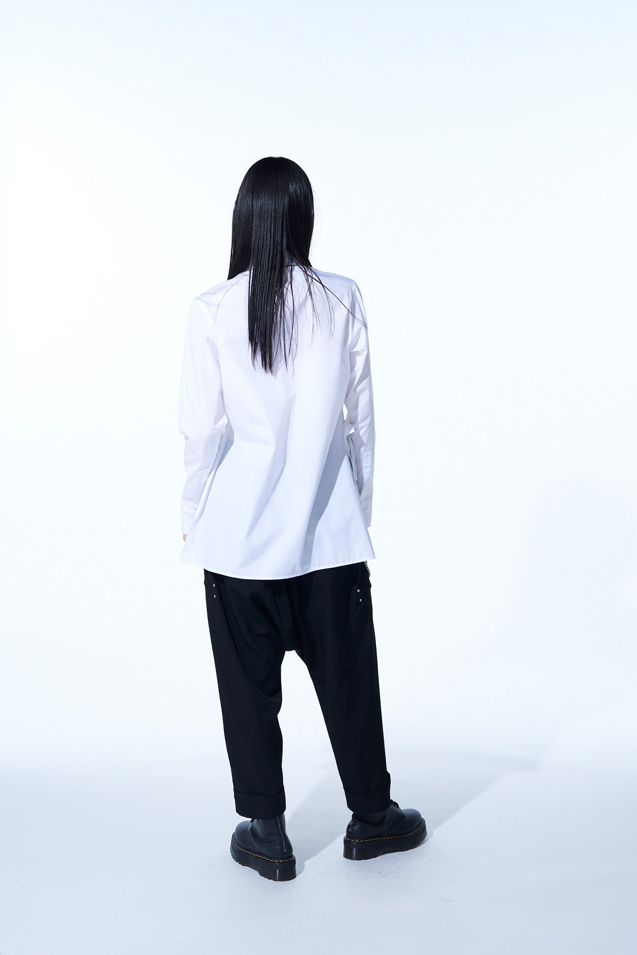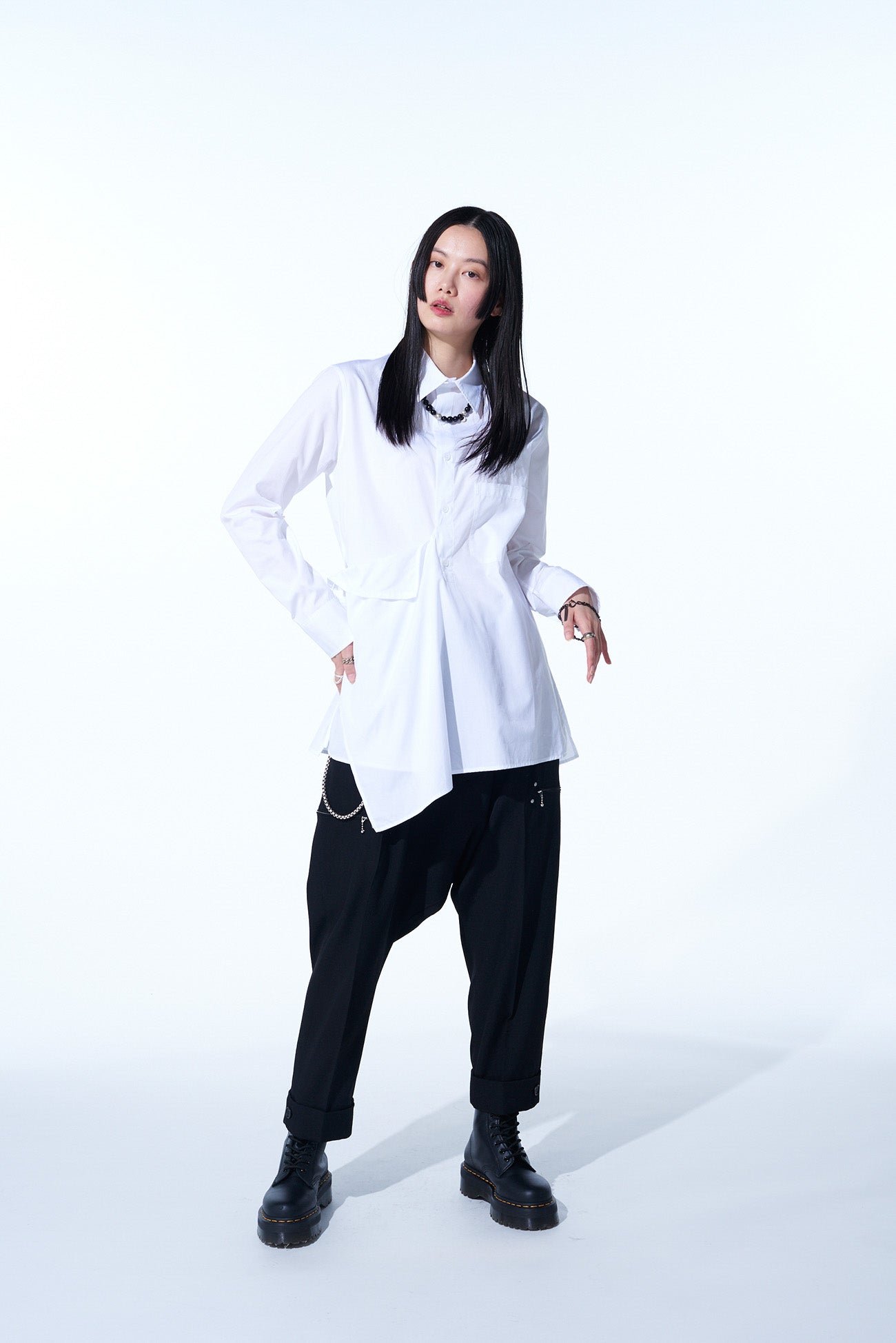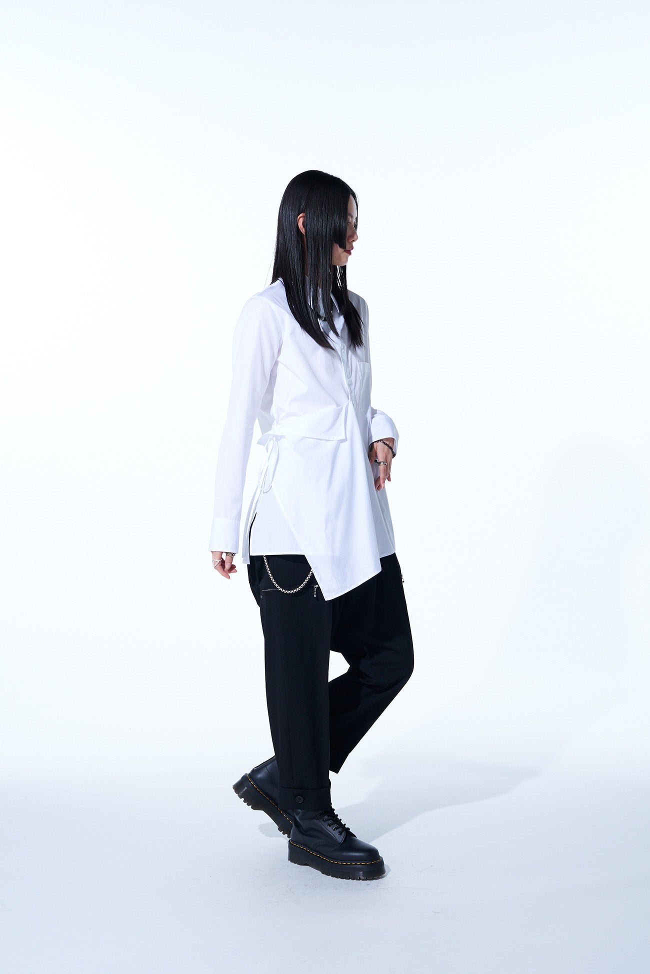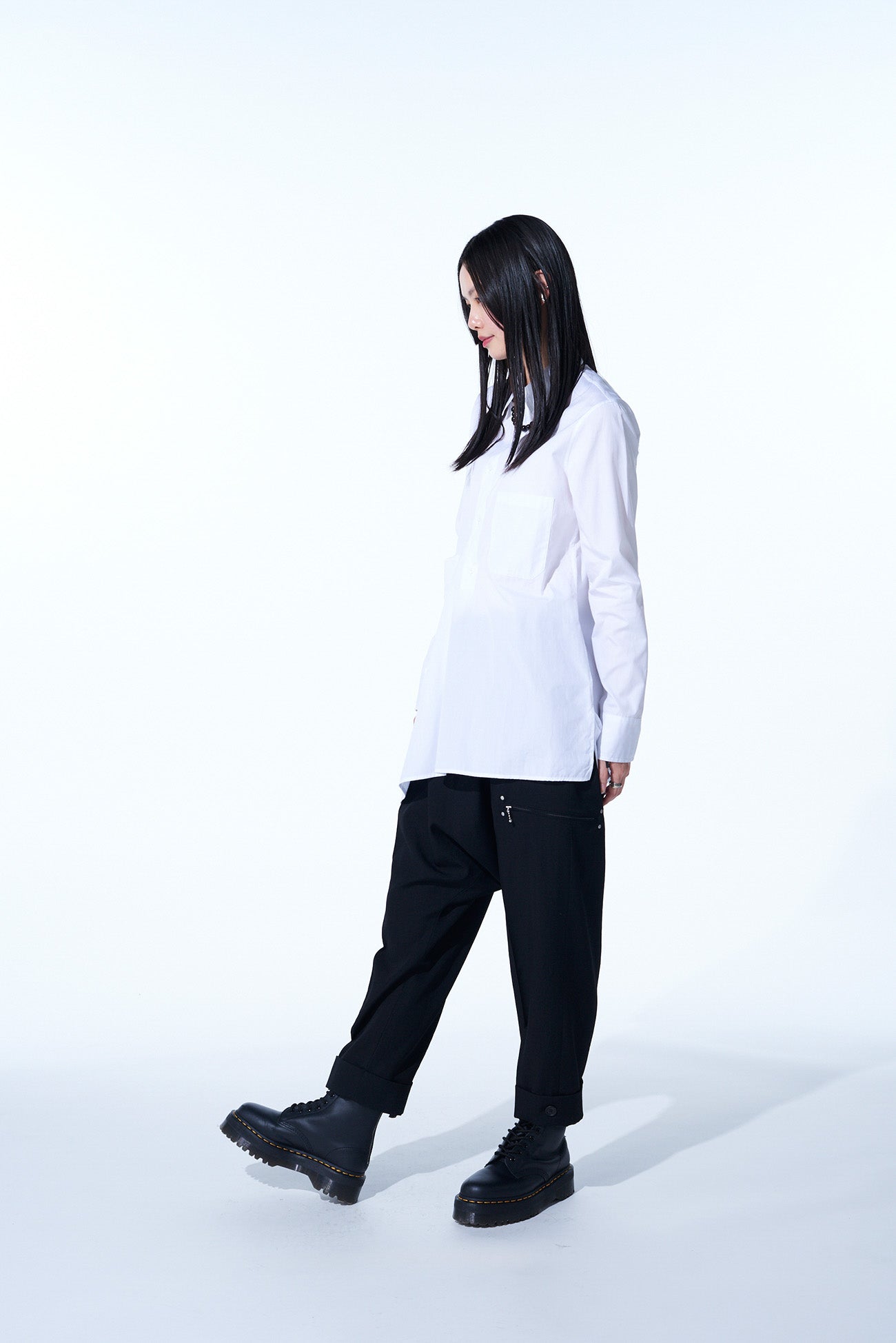 This best-selling sarouel pants have been widely supported every season. Now featuring 100% wool gabardine, they offer exceptional comfort and a beautiful silhouette. Enhanced with cuffed hems, button YY style, ball chains, studs, and wallet chain D-rings, they pair excellently with the STUDS JACKET (UY-J09-101).