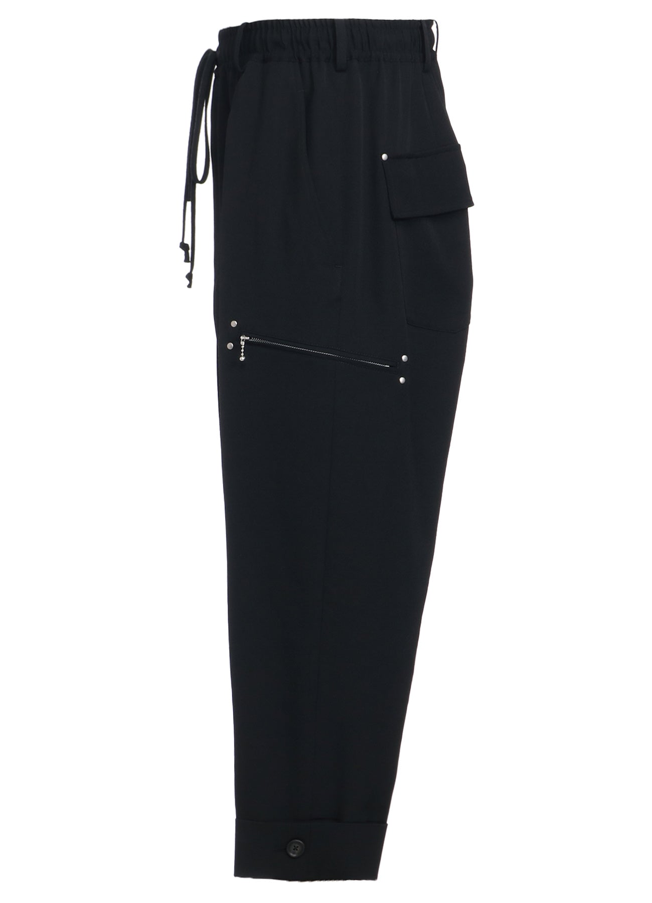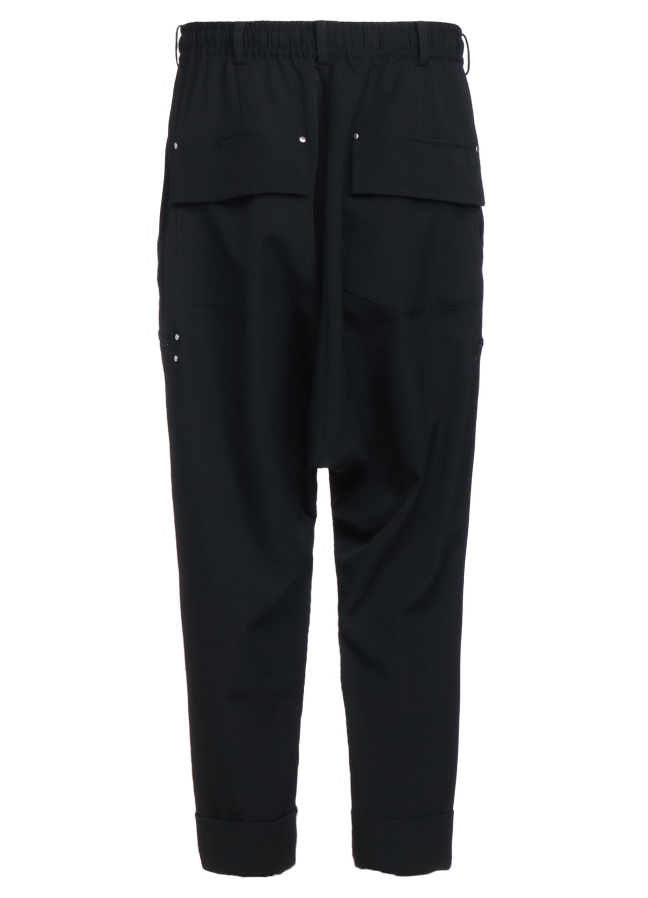 WASHER FINISHED WOOL GABARDINE STUDS SLIM SAROUEL PANTS