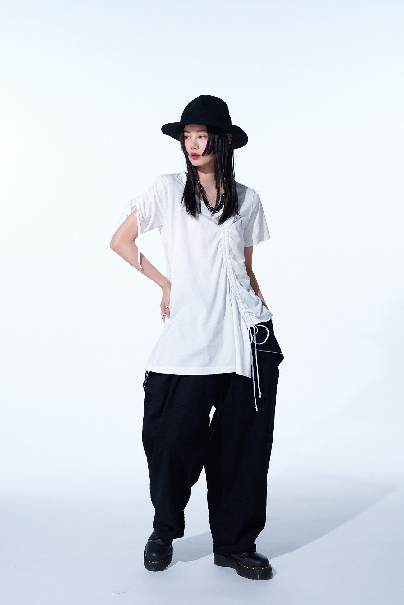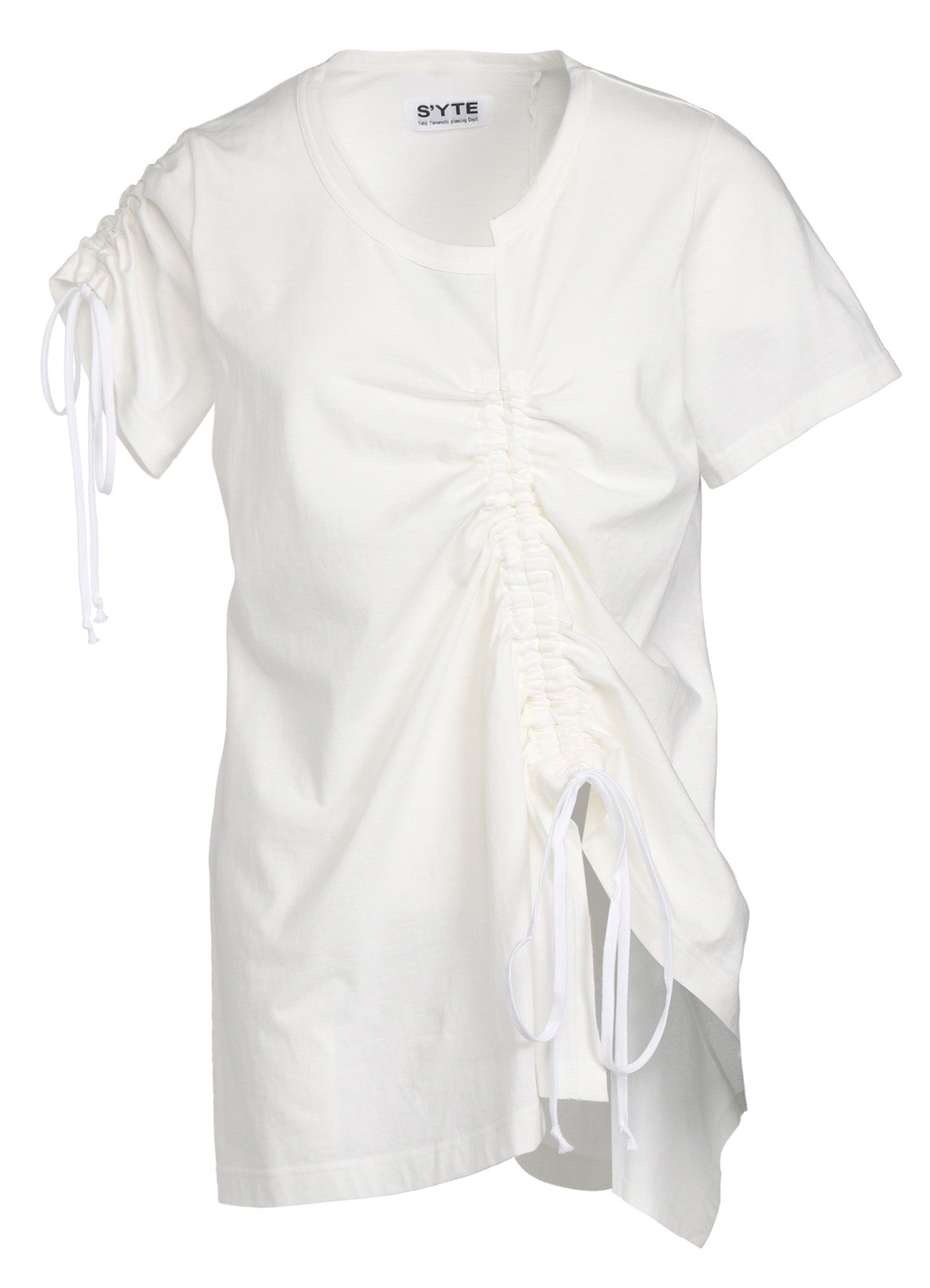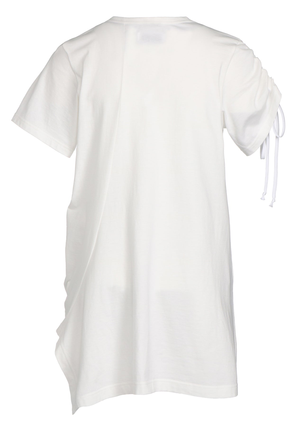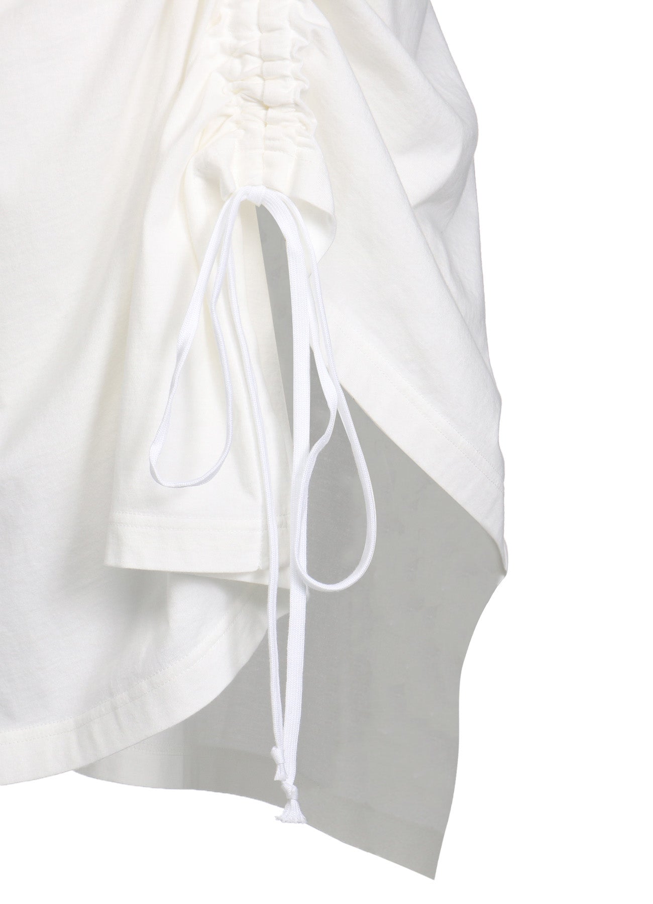 COTTON JERSEY ASYMMETRICAL T-SHIRT WITH GATHERED STRINGS