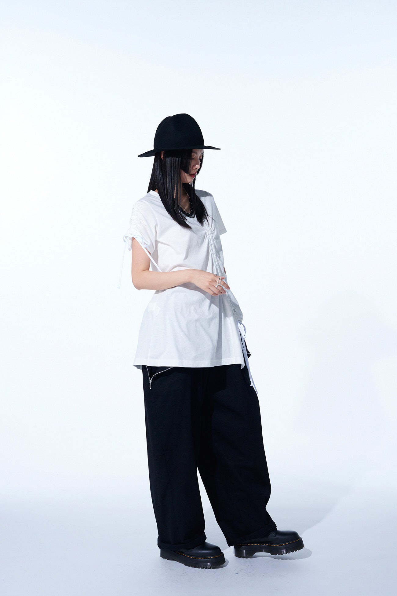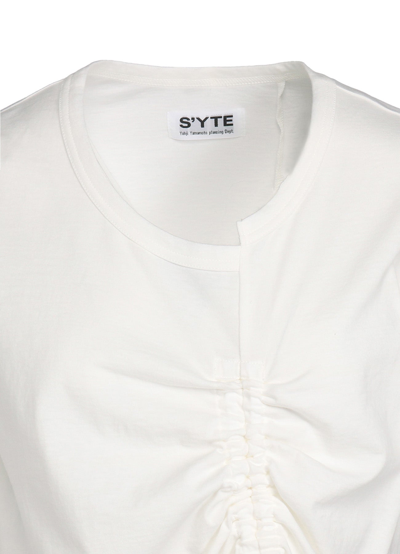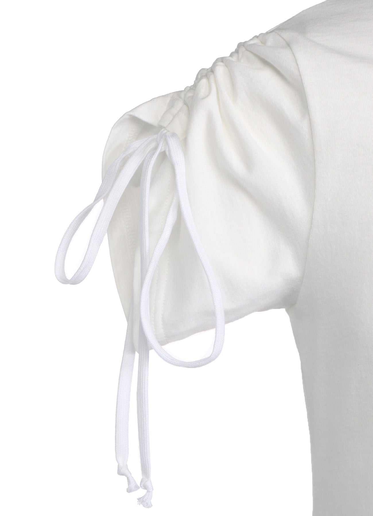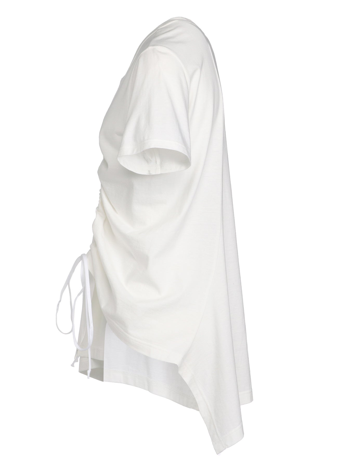 COTTON JERSEY ASYMMETRICAL T-SHIRT WITH GATHERED STRINGS