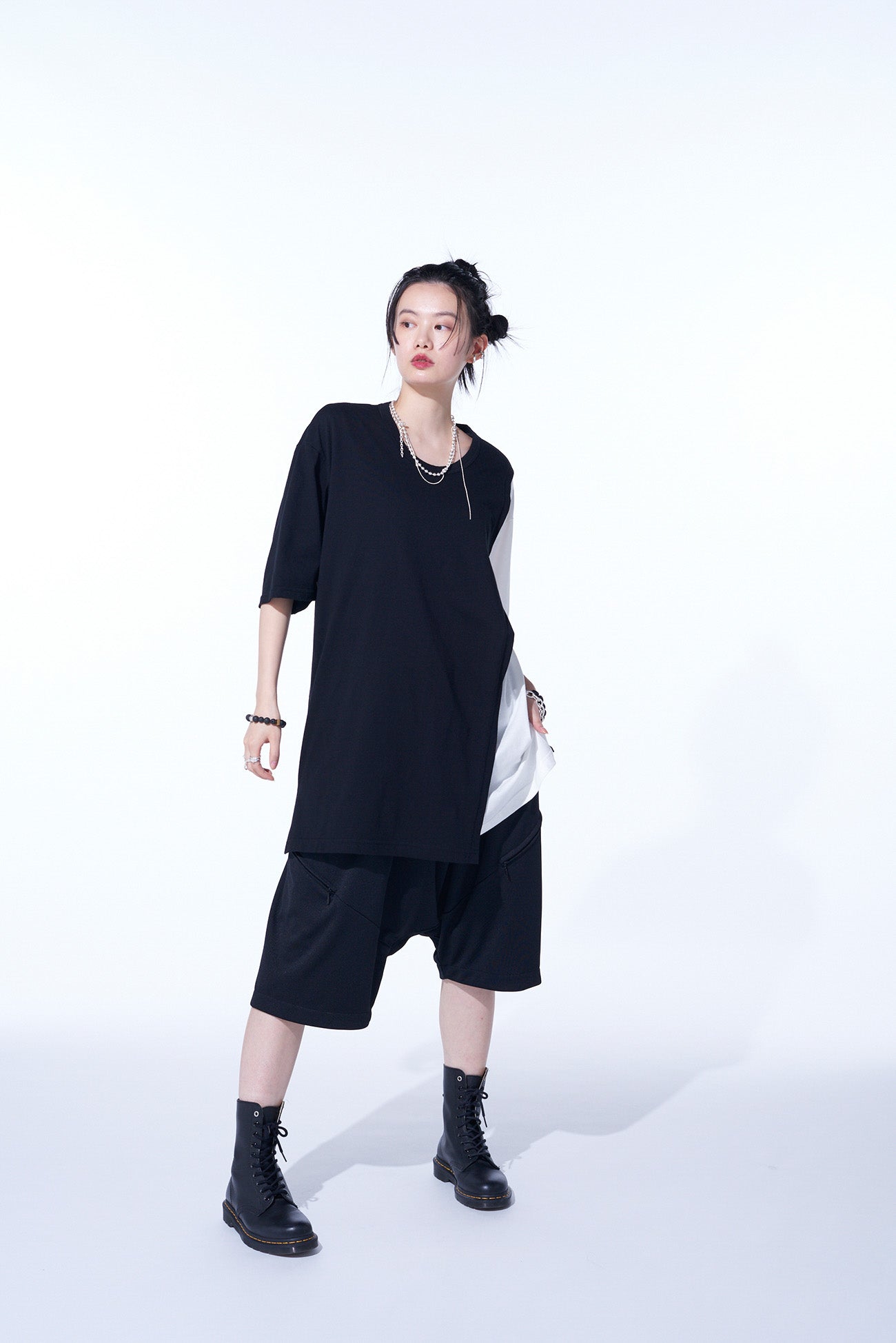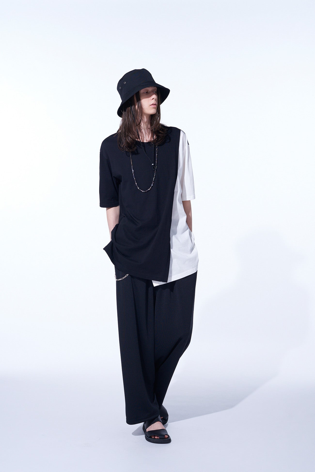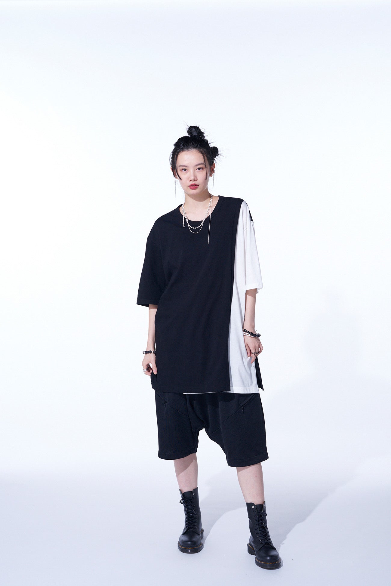 This unique top features a layered wrap detail on the front that sways with movement, adding dynamism to the monochromatic design. Perfect for pairing with wide silhouette pants, its soft and durable 30/1 plain stitch fabric offers a comfortable yet stylish daily wear. The versatile monochrome design works well with jackets or shirts for refined styling.