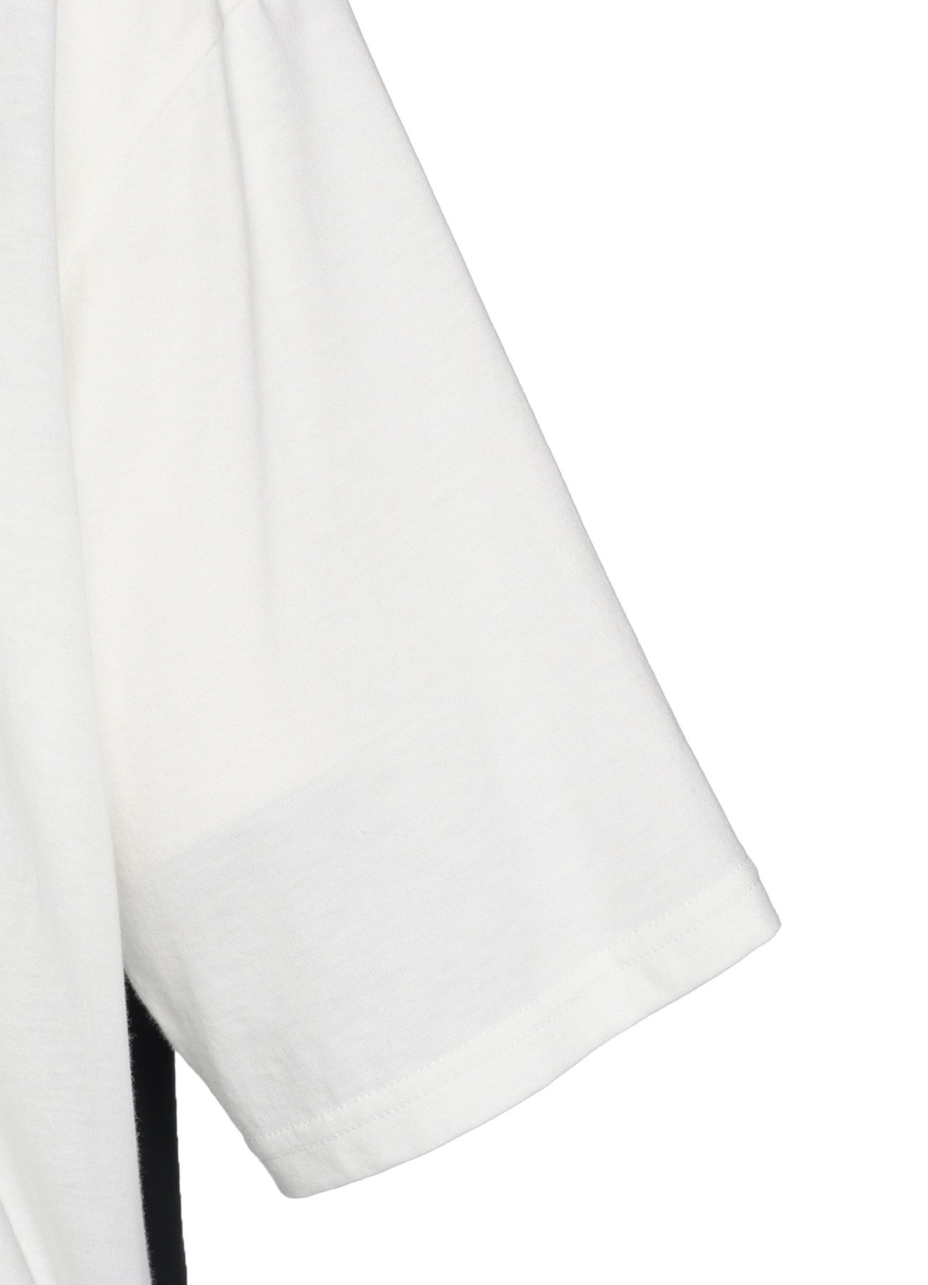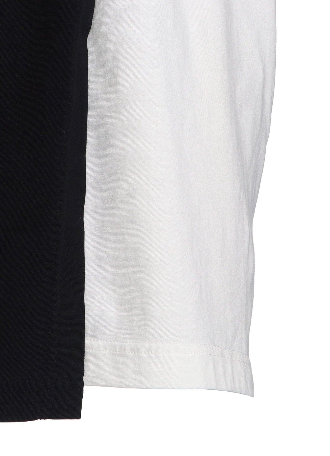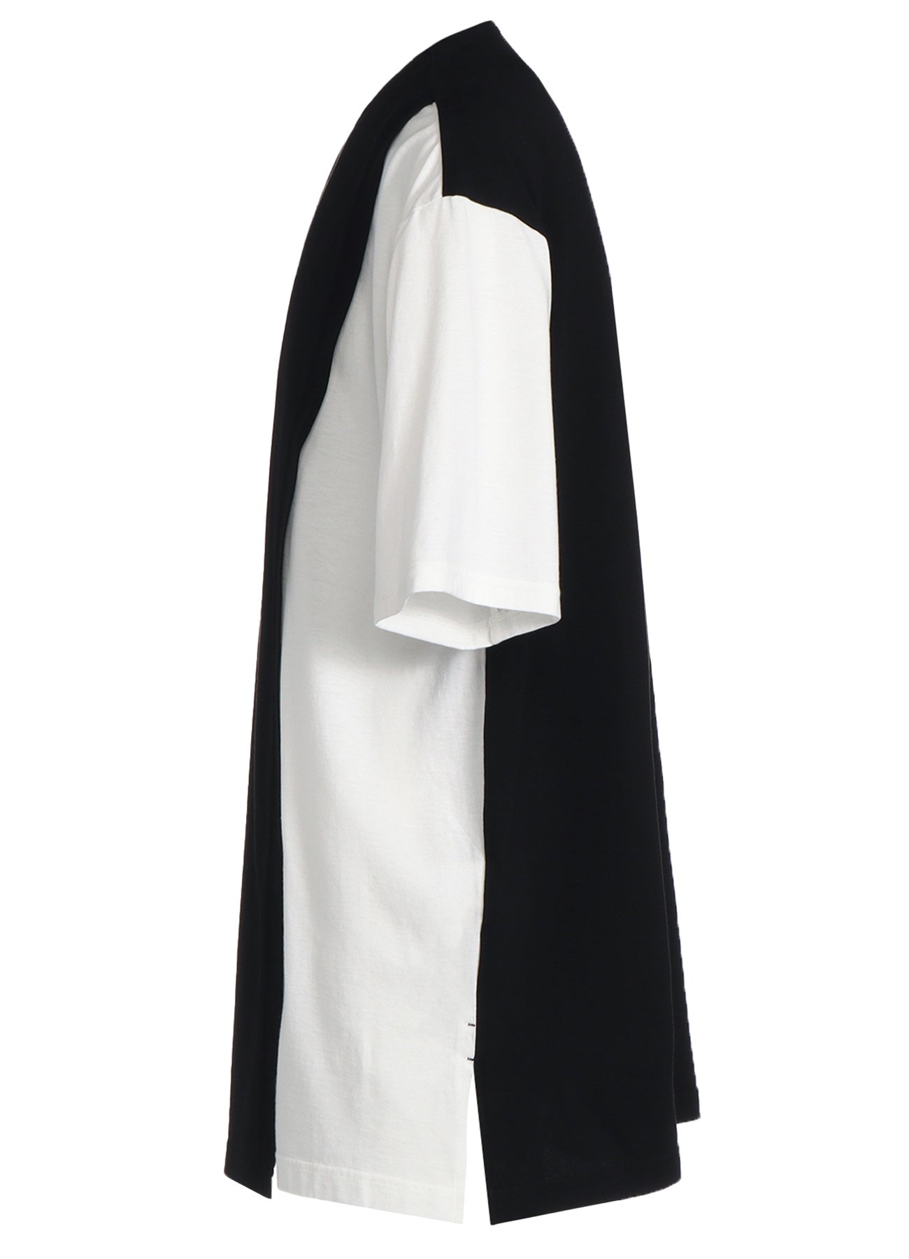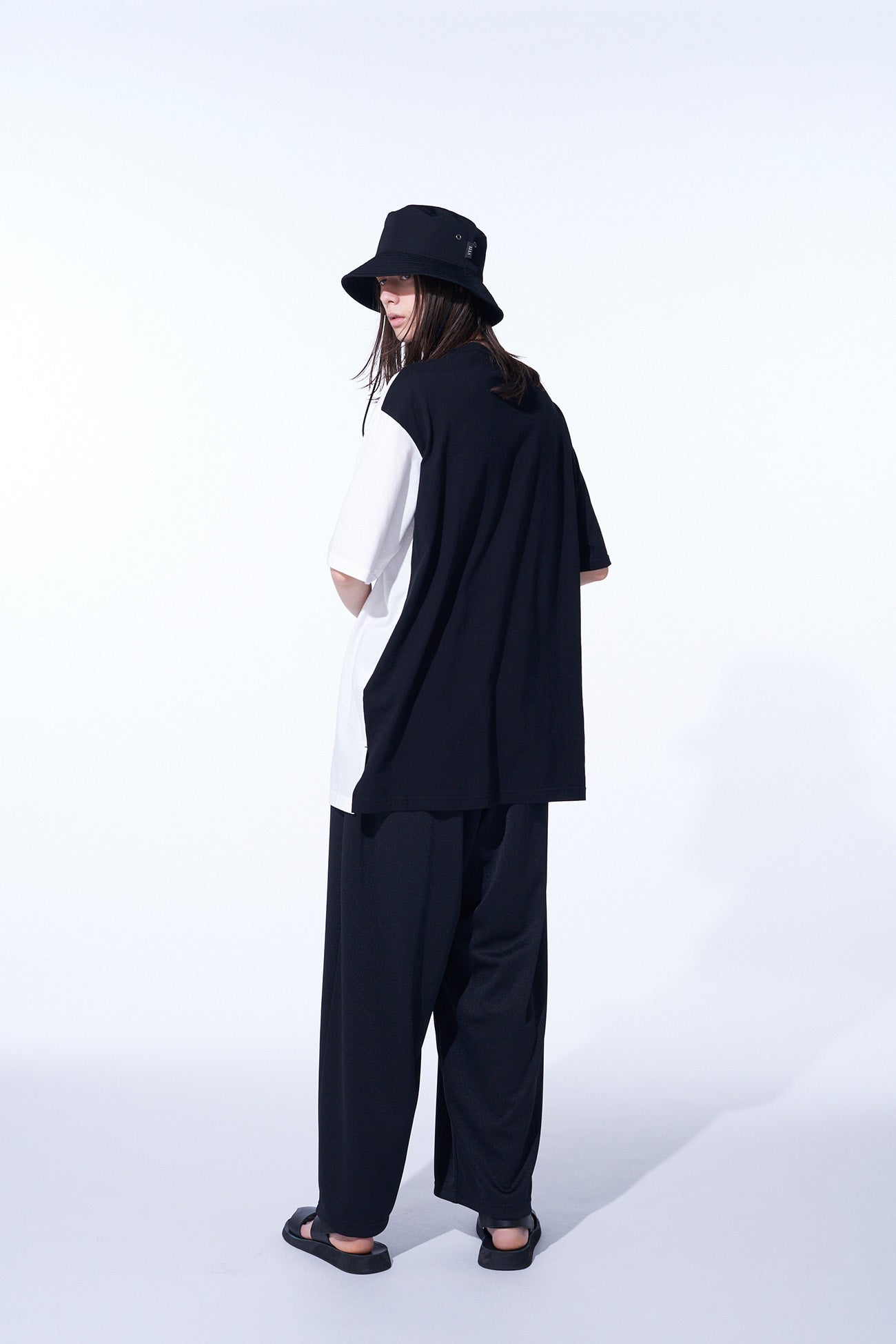 This unique top features a layered wrap detail on the front that sways with movement, adding dynamism to the monochromatic design. Perfect for pairing with wide silhouette pants, its soft and durable 30/1 plain stitch fabric offers a comfortable yet stylish daily wear. The versatile monochrome design works well with jackets or shirts for refined styling.