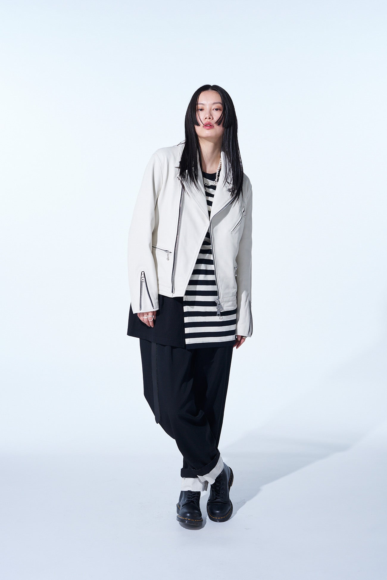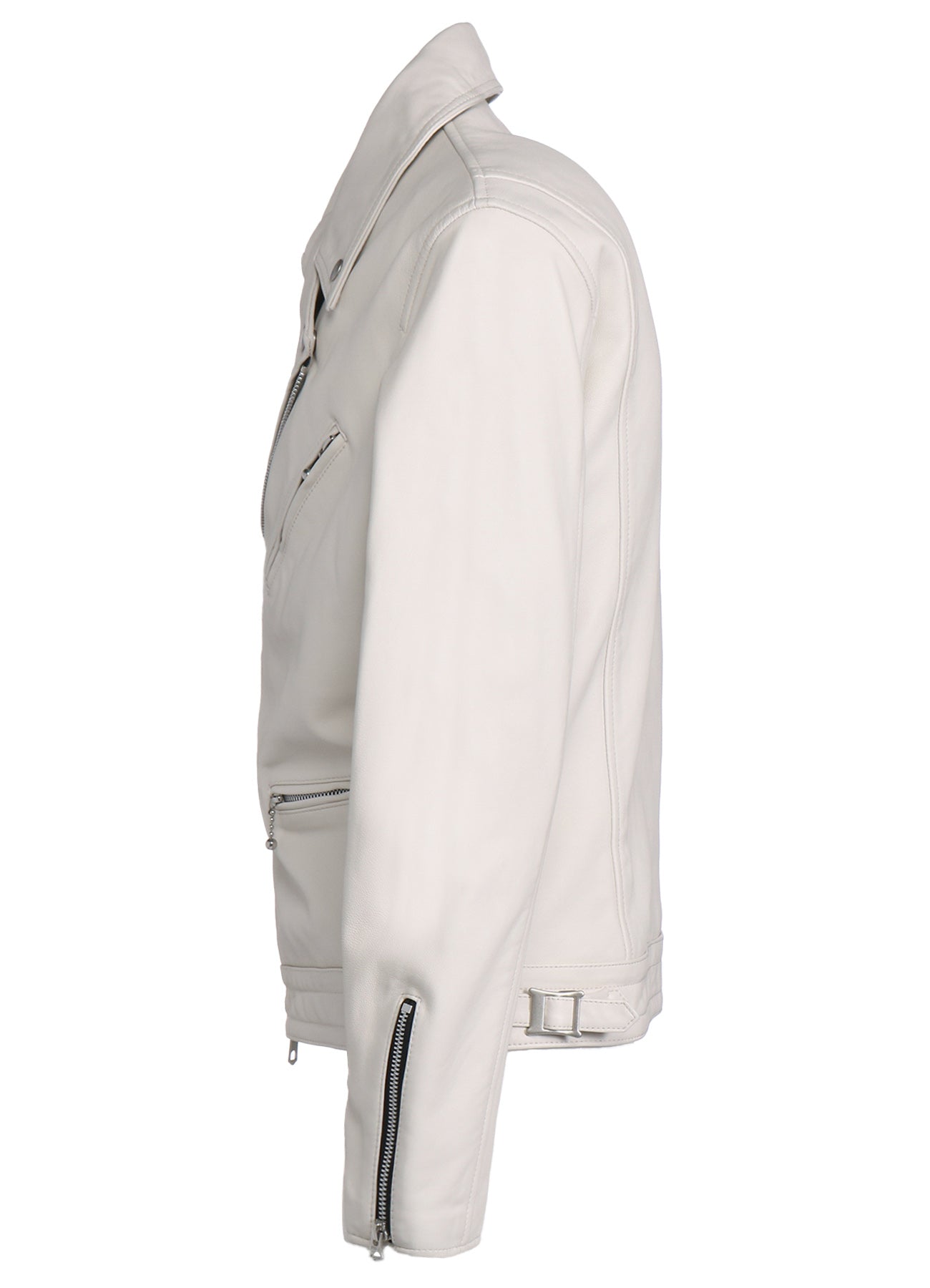 CHROME WHITE SHEEP LEATHER DOUBLE MOTORCYCLE JACKET