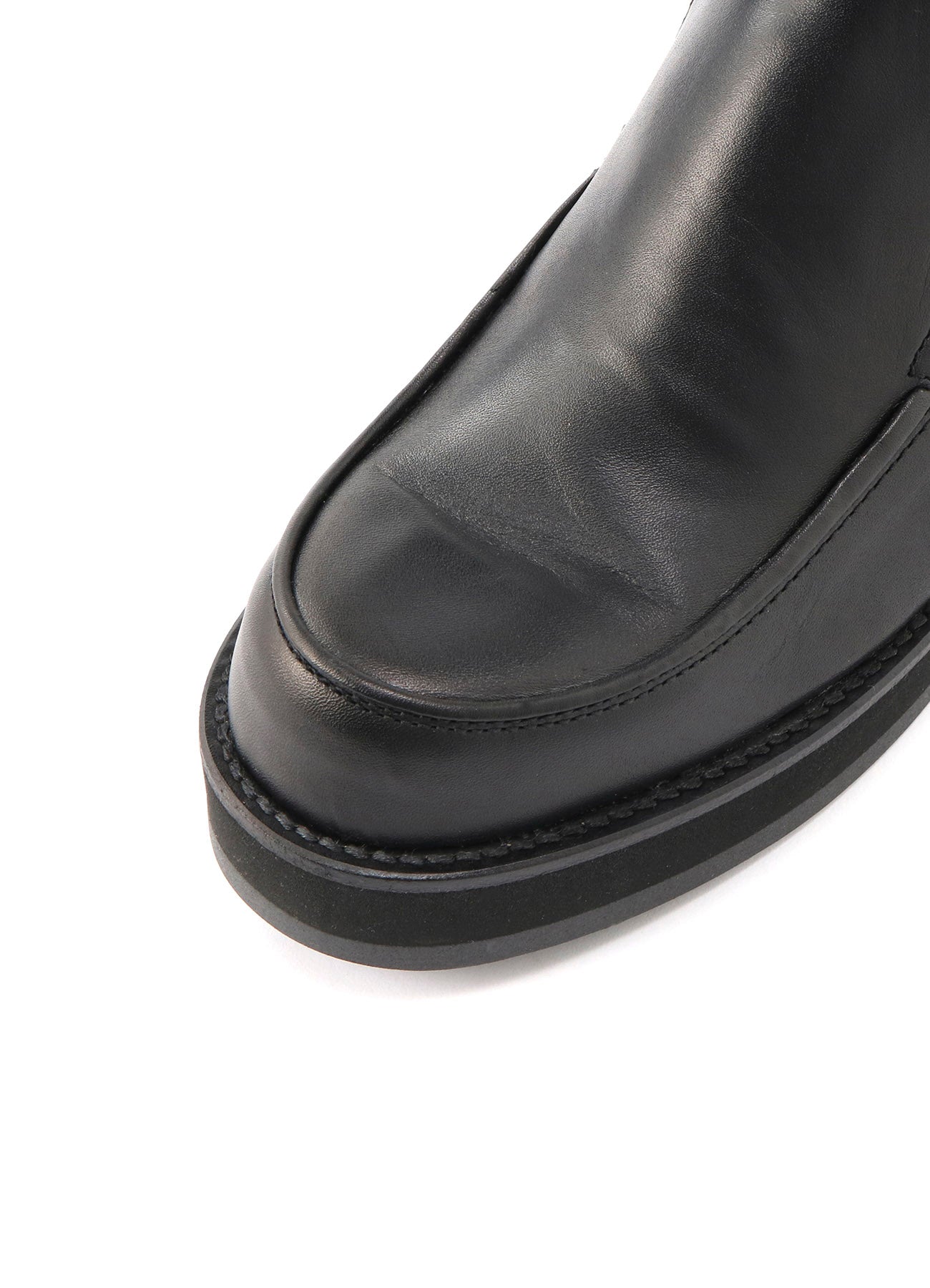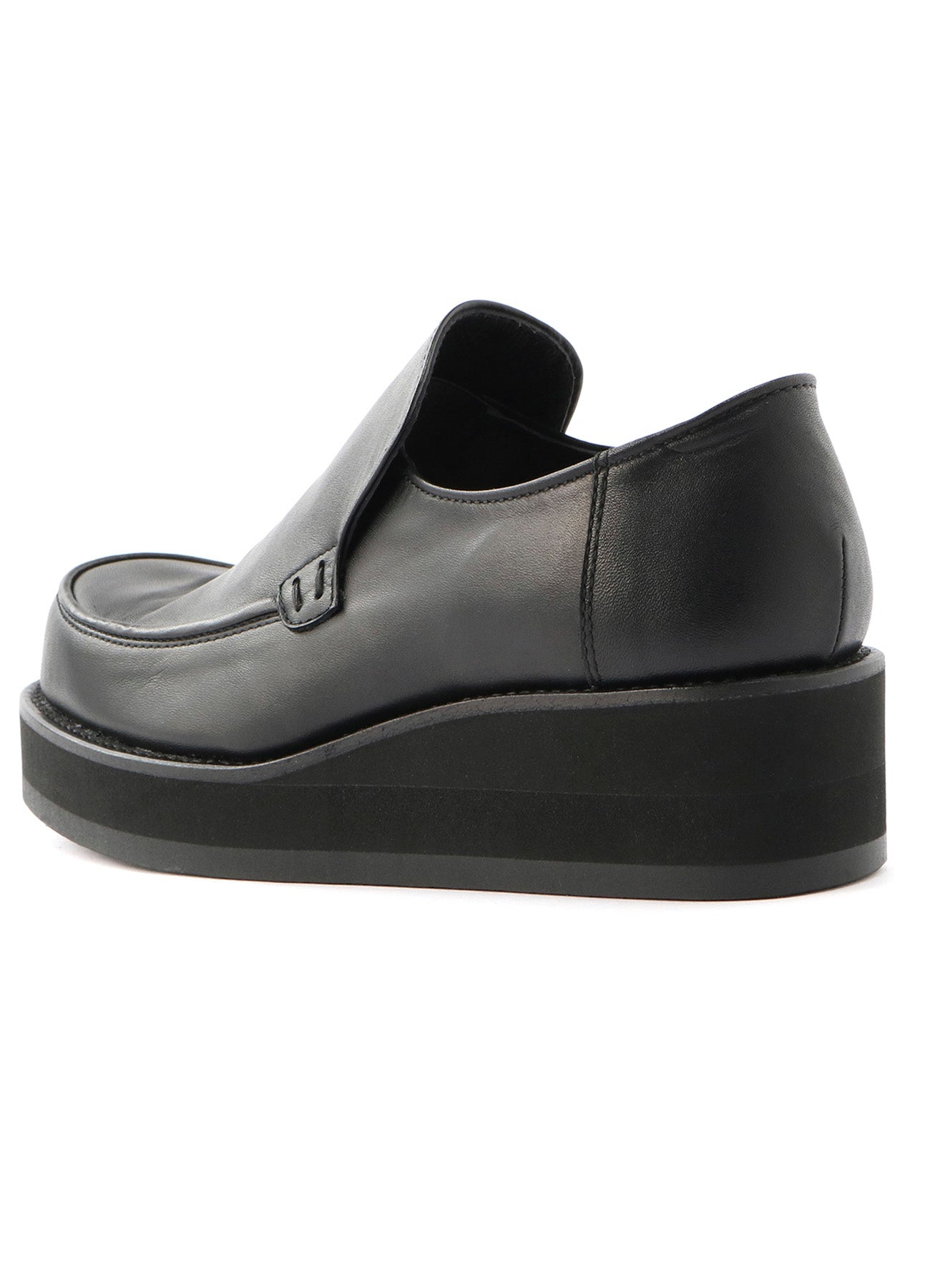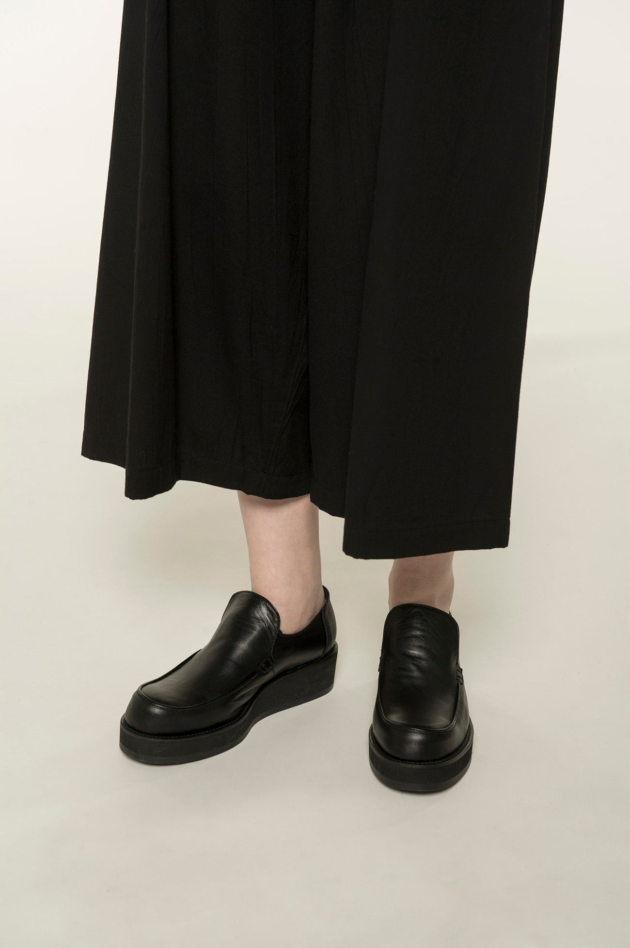 This classic leather slip-on from Y's is made from soft, smooth leather, offering a comfortable fit that molds to your feet over time. Despite having a thick sole, it is lightweight, ensuring comfort for long periods. It's a versatile shoe that pairs well with both casual and formal outfits.