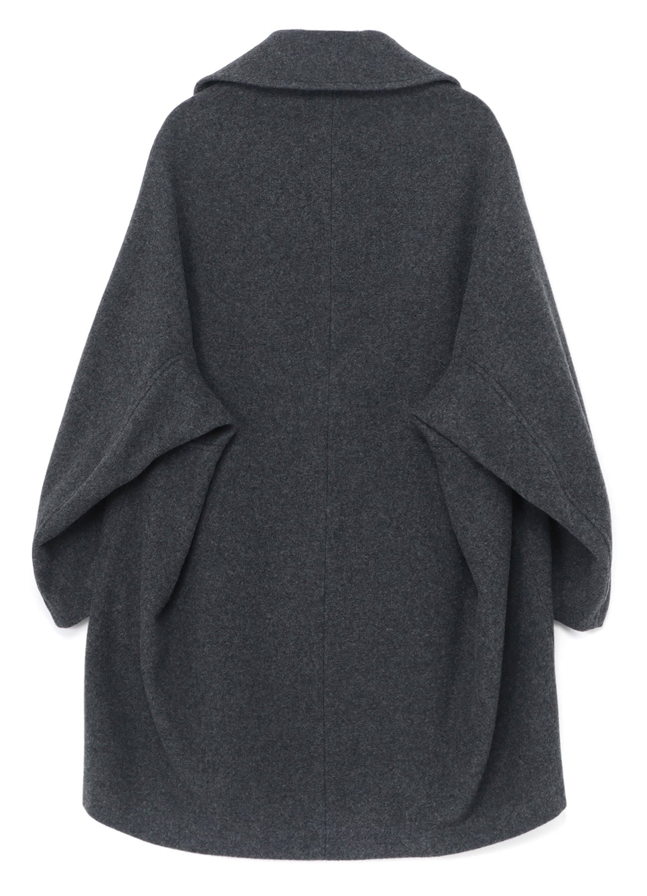 This ever-popular airy mosser long coat features a unique, seamless form and three-dimensional pattern known for its softness and lightweight. The distinctive shape, characteristic of Y's, combined with relaxed dolman sleeves, makes it versatile for various styles, accommodating different inner wear.