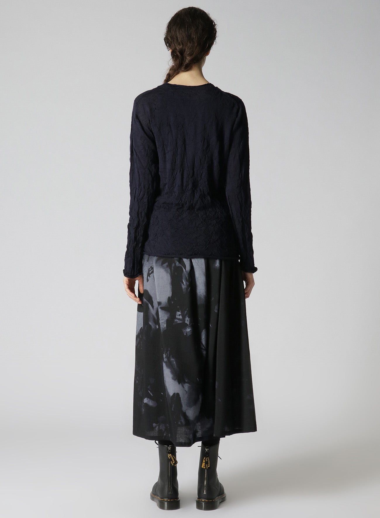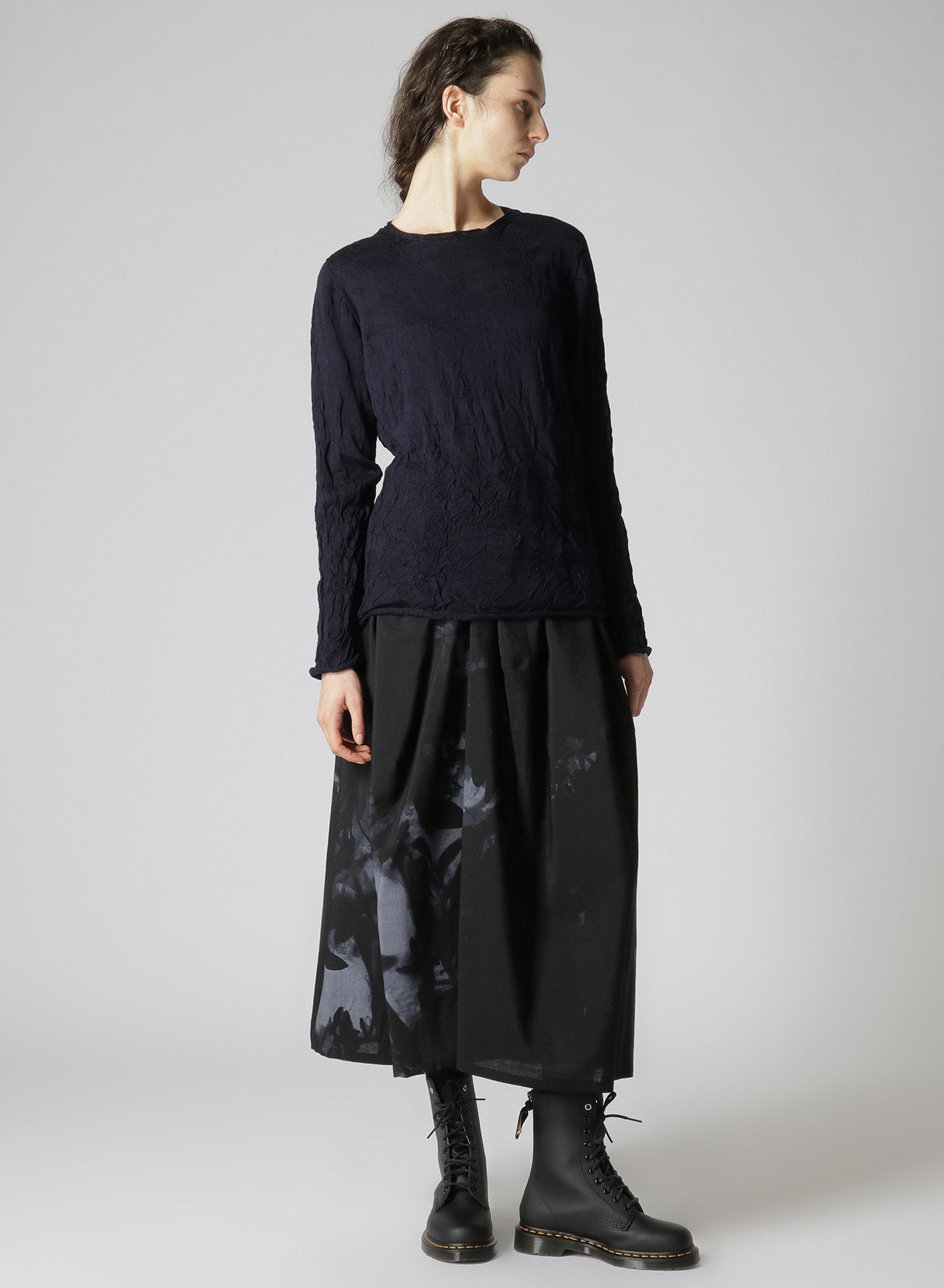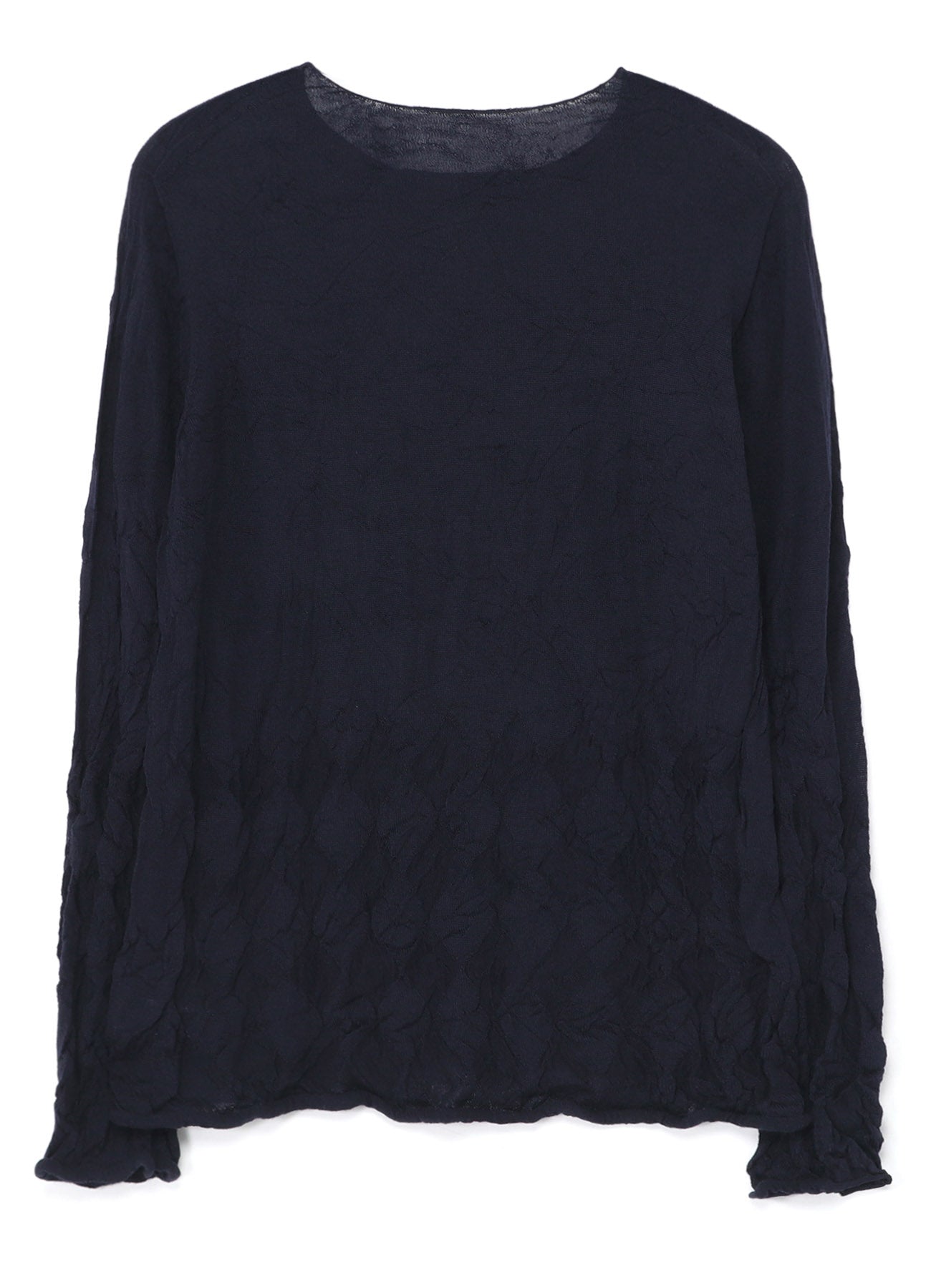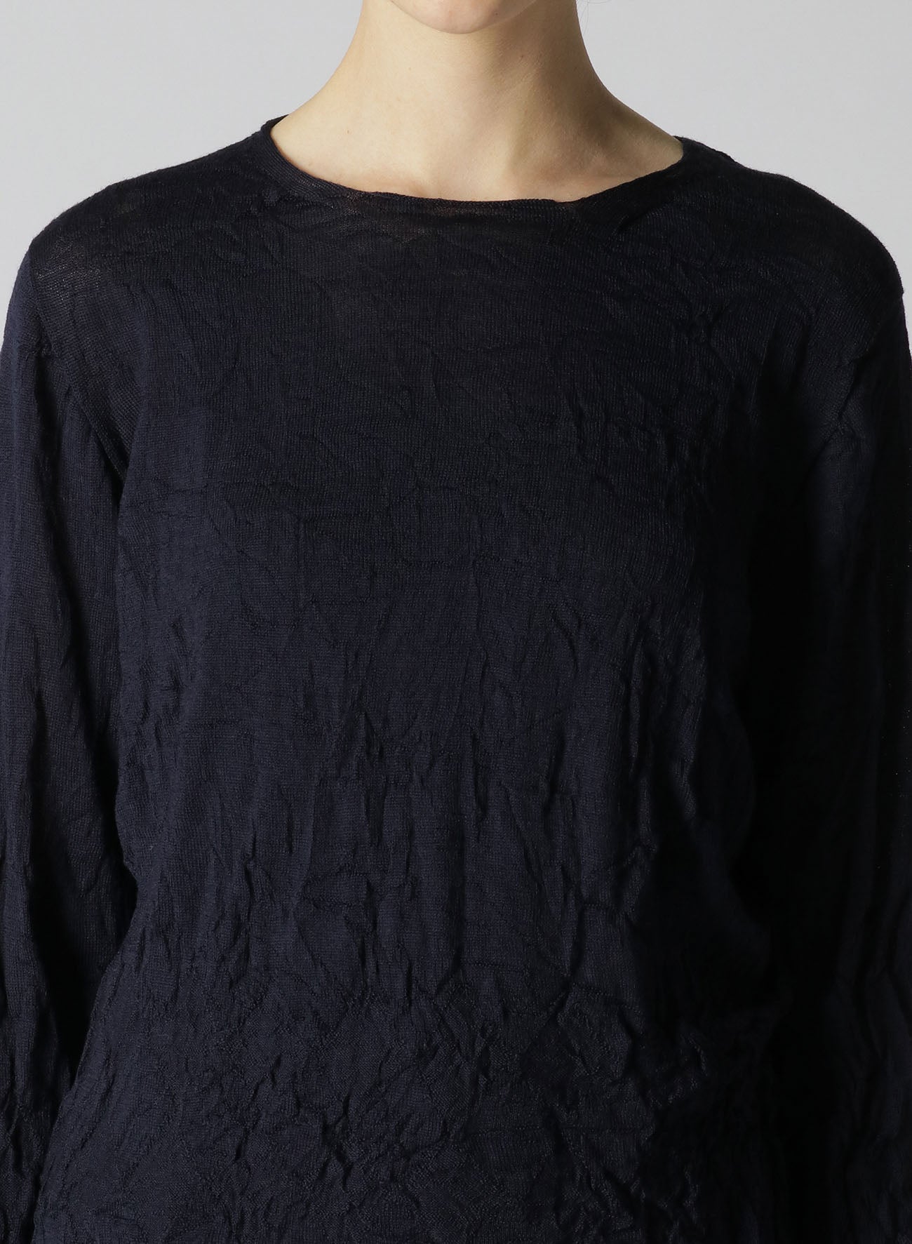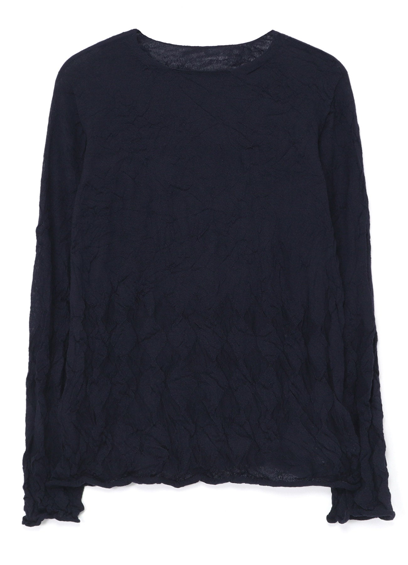 WOOL WRINKLE ROUND NECK LONG SLEEVE T-SHIRT