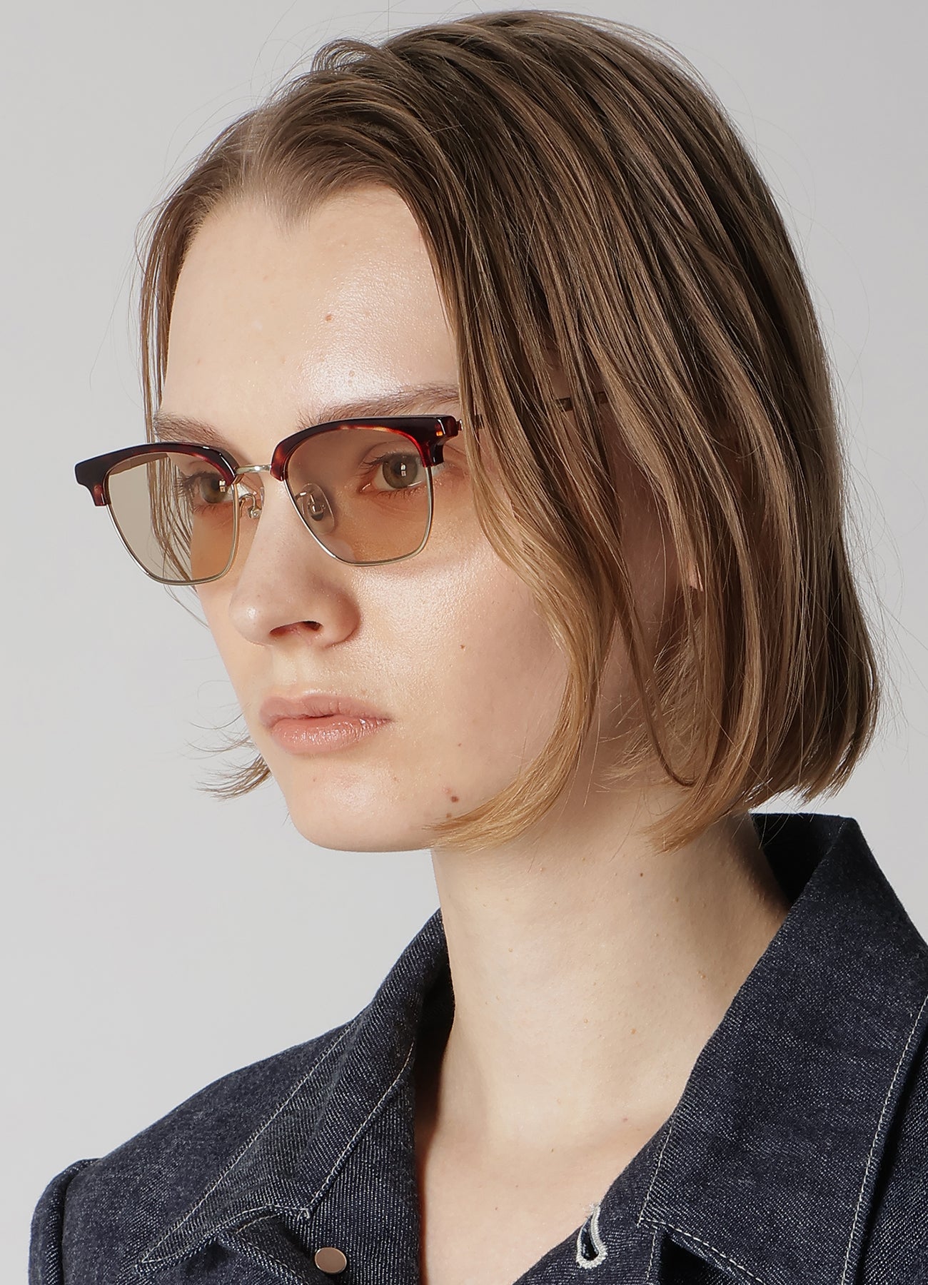 Acetate brow parts for a refined yet antique-inspired look.