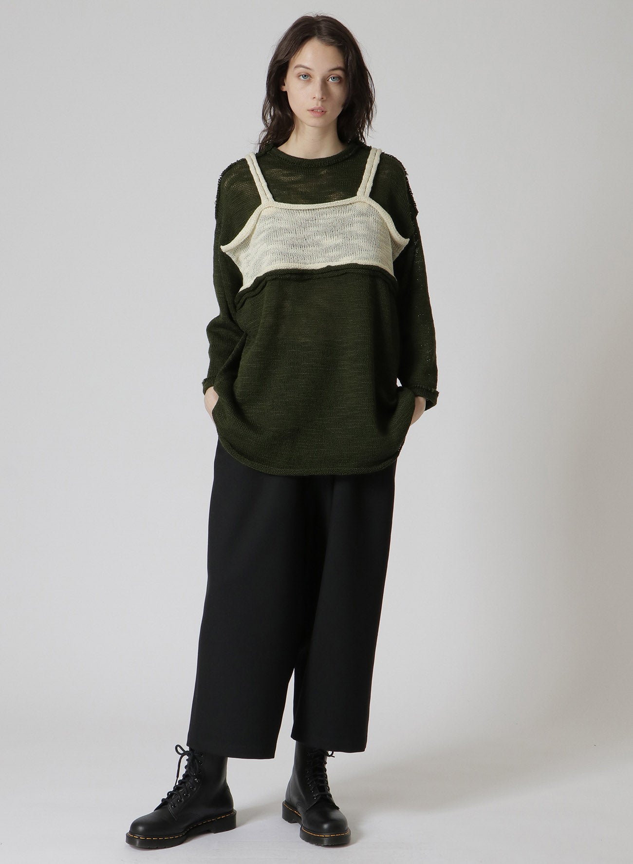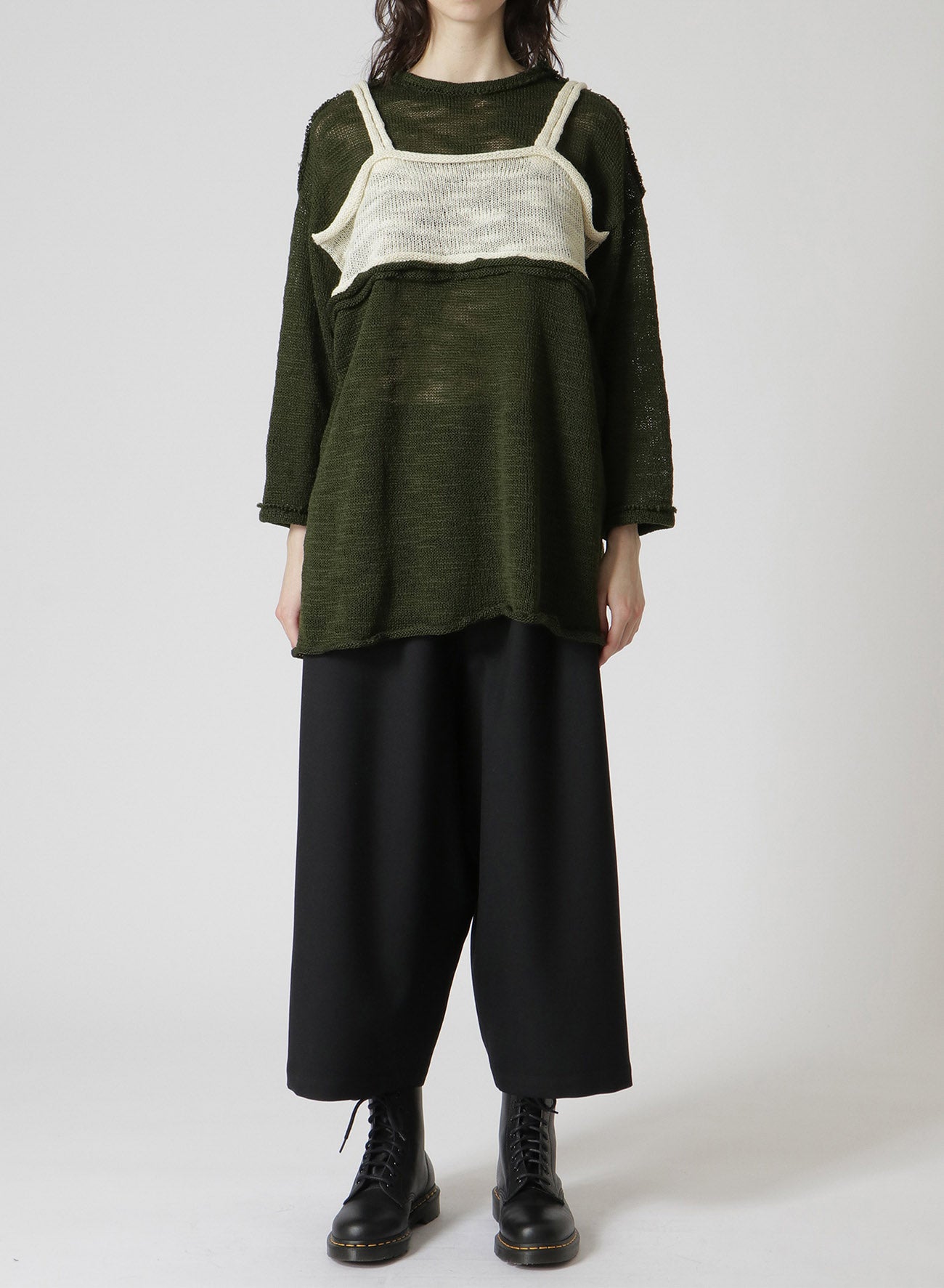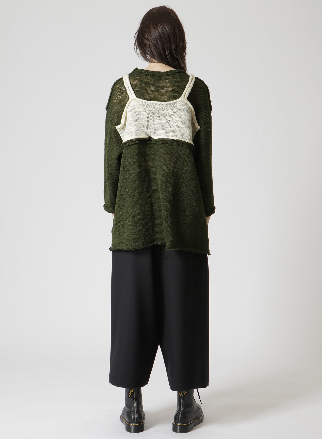 SLUB PLAIN STITCH CUT OFF KNIT PULLOVER
