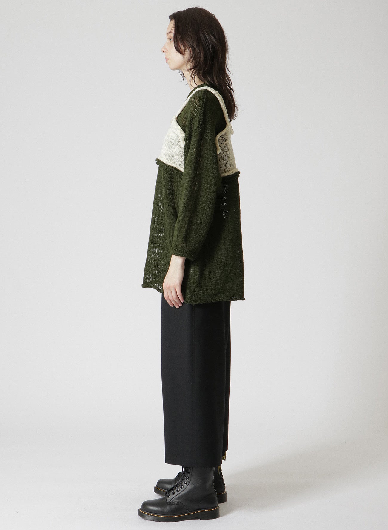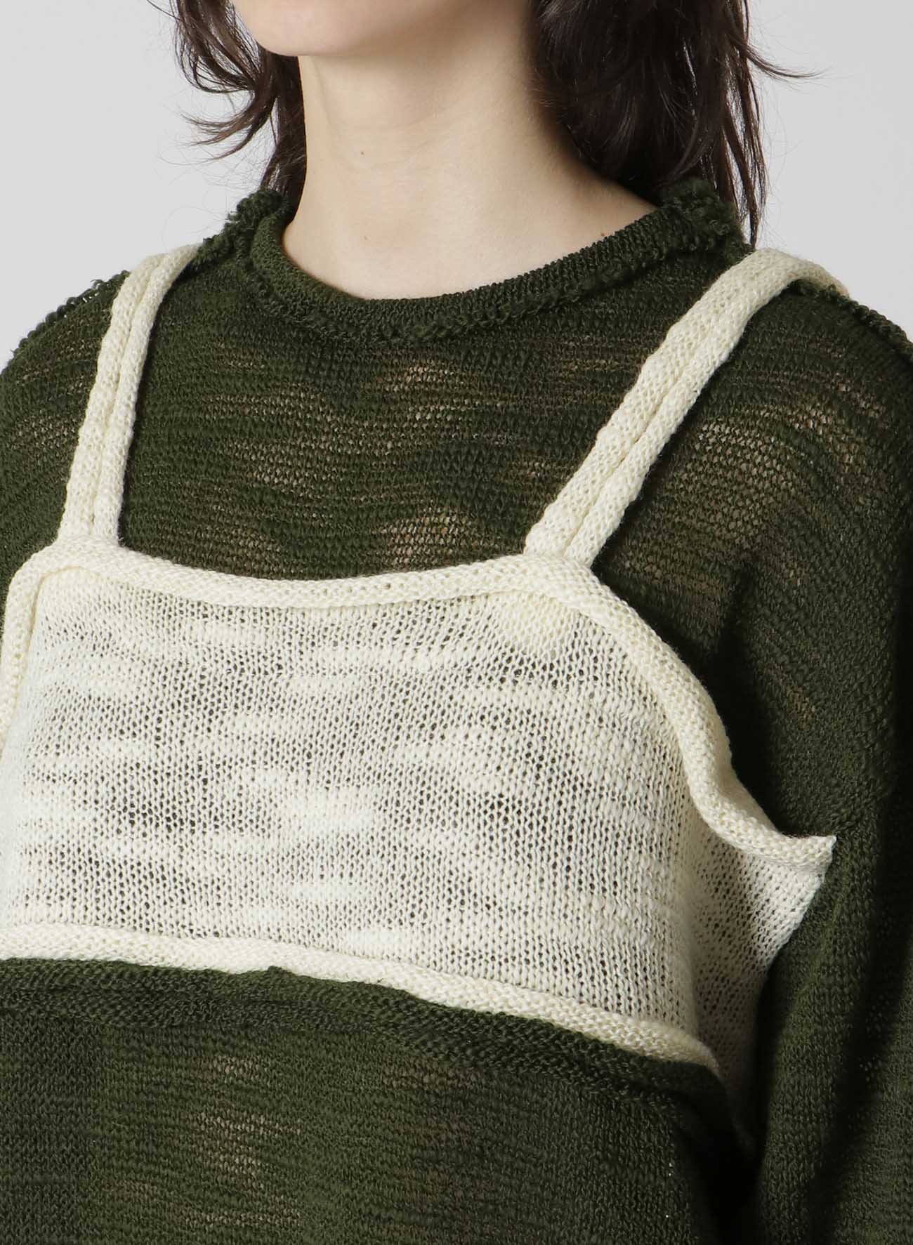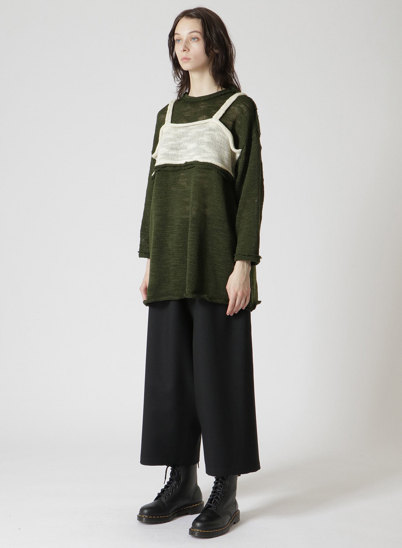 SLUB PLAIN STITCH CUT OFF KNIT PULLOVER