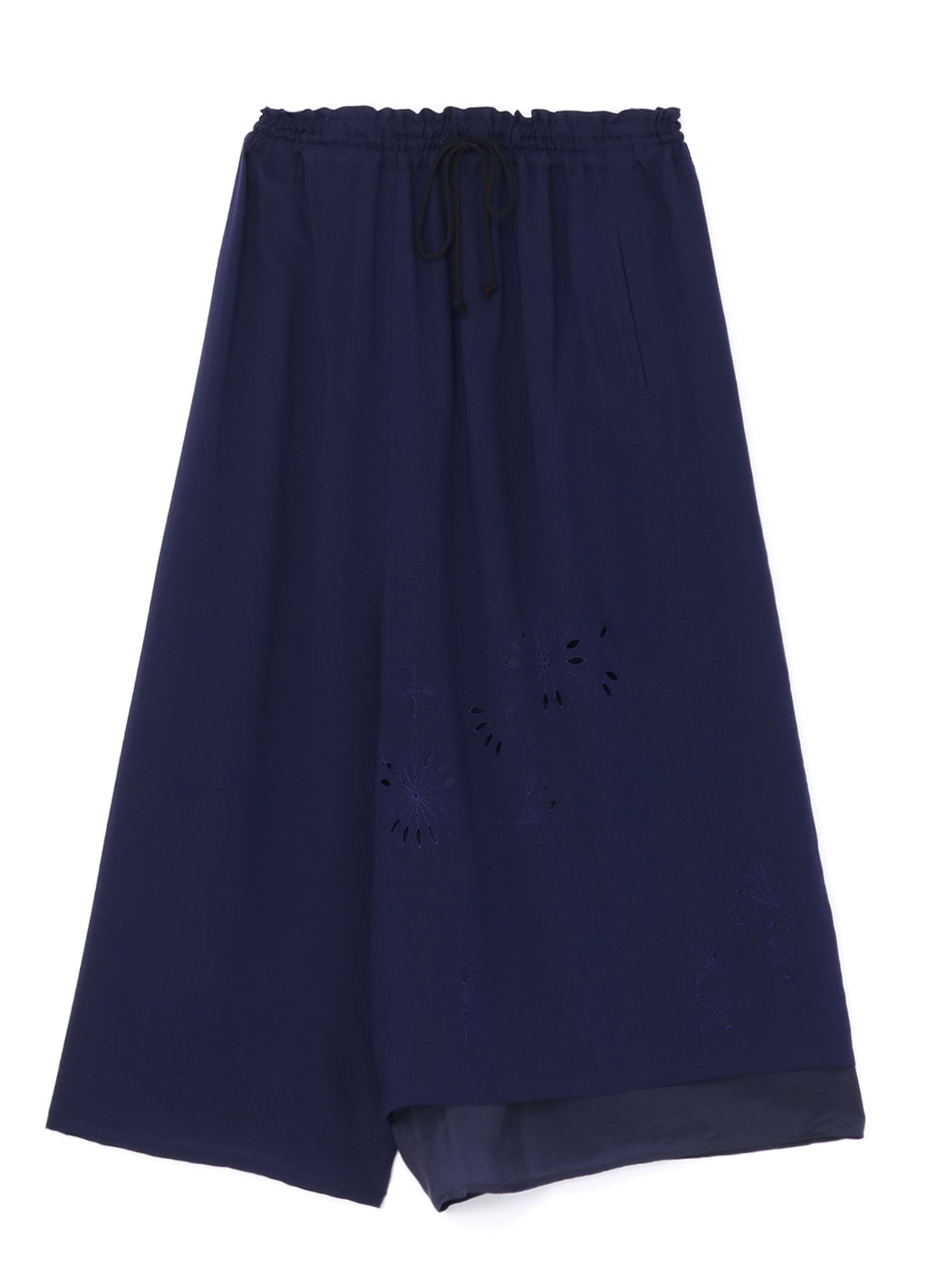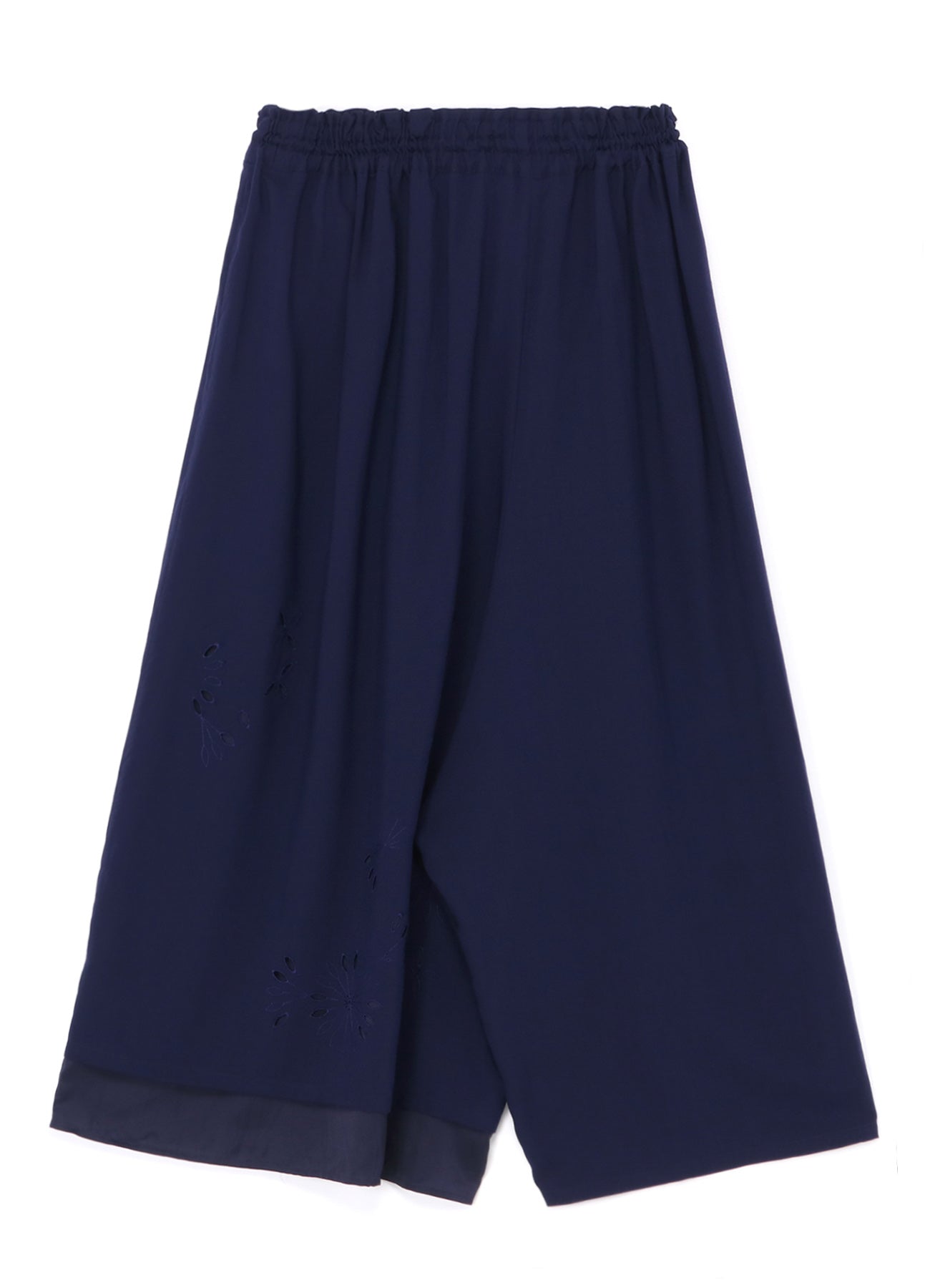 These comfortable wide pants are made from lightweight cellulose slub material. Featuring delicate bohler lace for a unique texture, they include an accent fabric on the left hem. Their voluminous yet versatile silhouette allows for easy styling across various occasions.