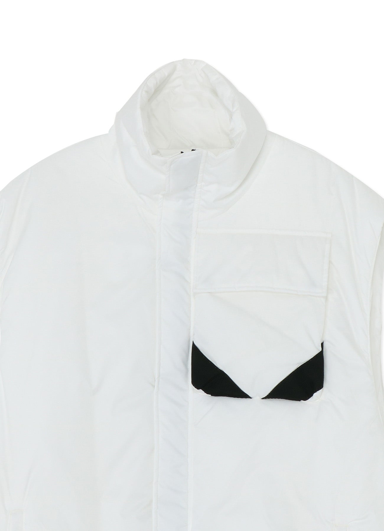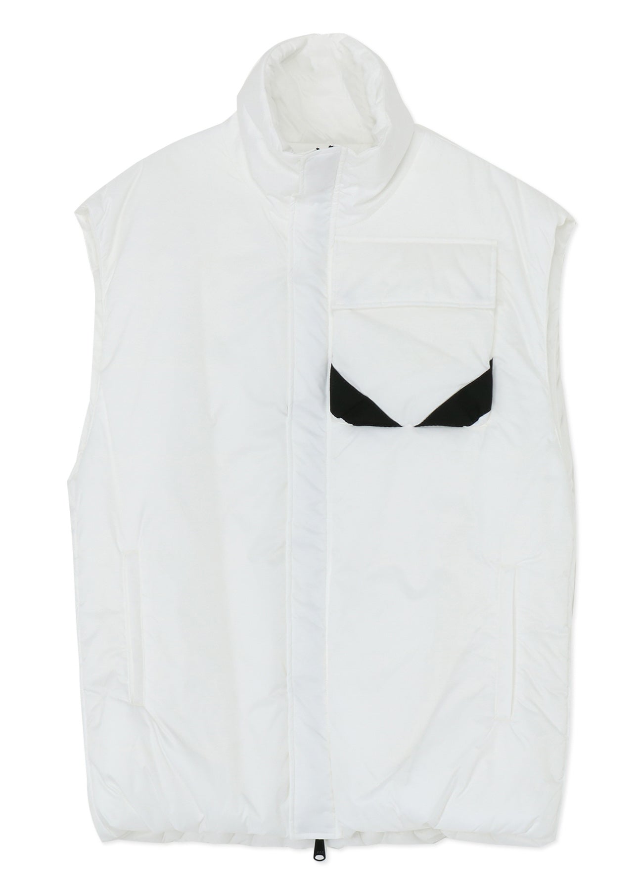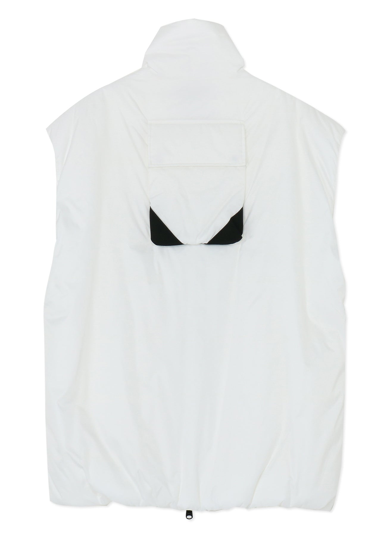 This padded vest offers a voluminous yet lightweight feel. Its fabric features durable water repellent and oil repellent treatments, enhancing both design and functionality. Accented with chest and back pockets, it exudes a sporty vibe. The oversized silhouette provides a unisex fit.