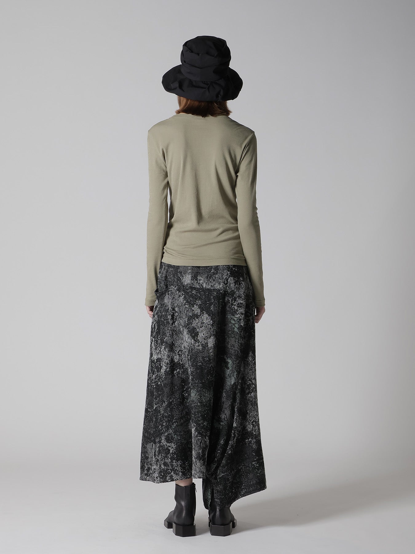 COTTON GAUZE FRAISE ROUND NECK LONG SLEEVE TEE