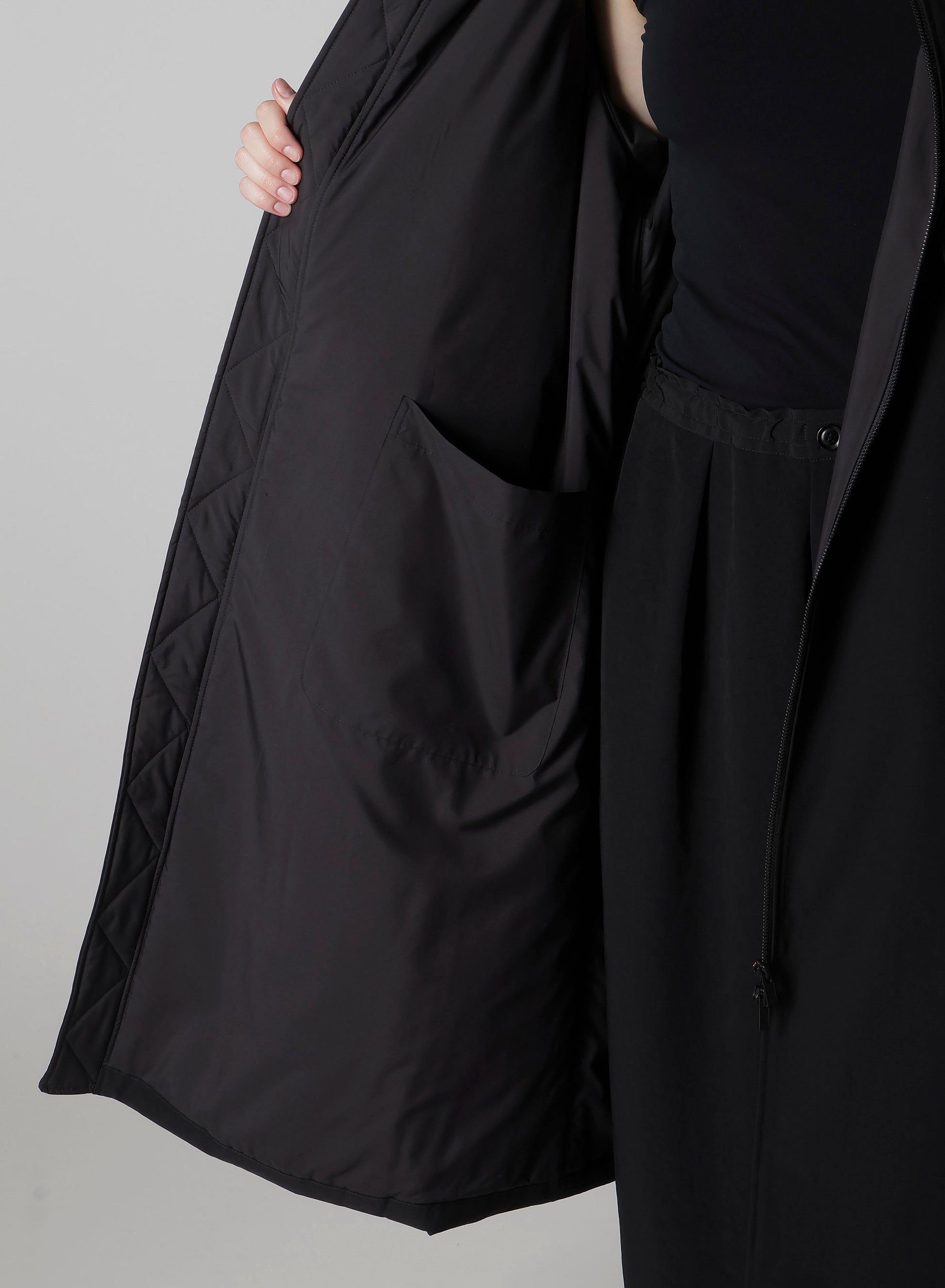 This long MA-1 coat uses Solotex fabric for a soft touch and stretchiness. The inner features high-density taffeta for a smooth feel, while Thinsulate padding ensures warmth. Wear it as a standalone piece or inner layer. The coat's zipper showcases the Y's logo.