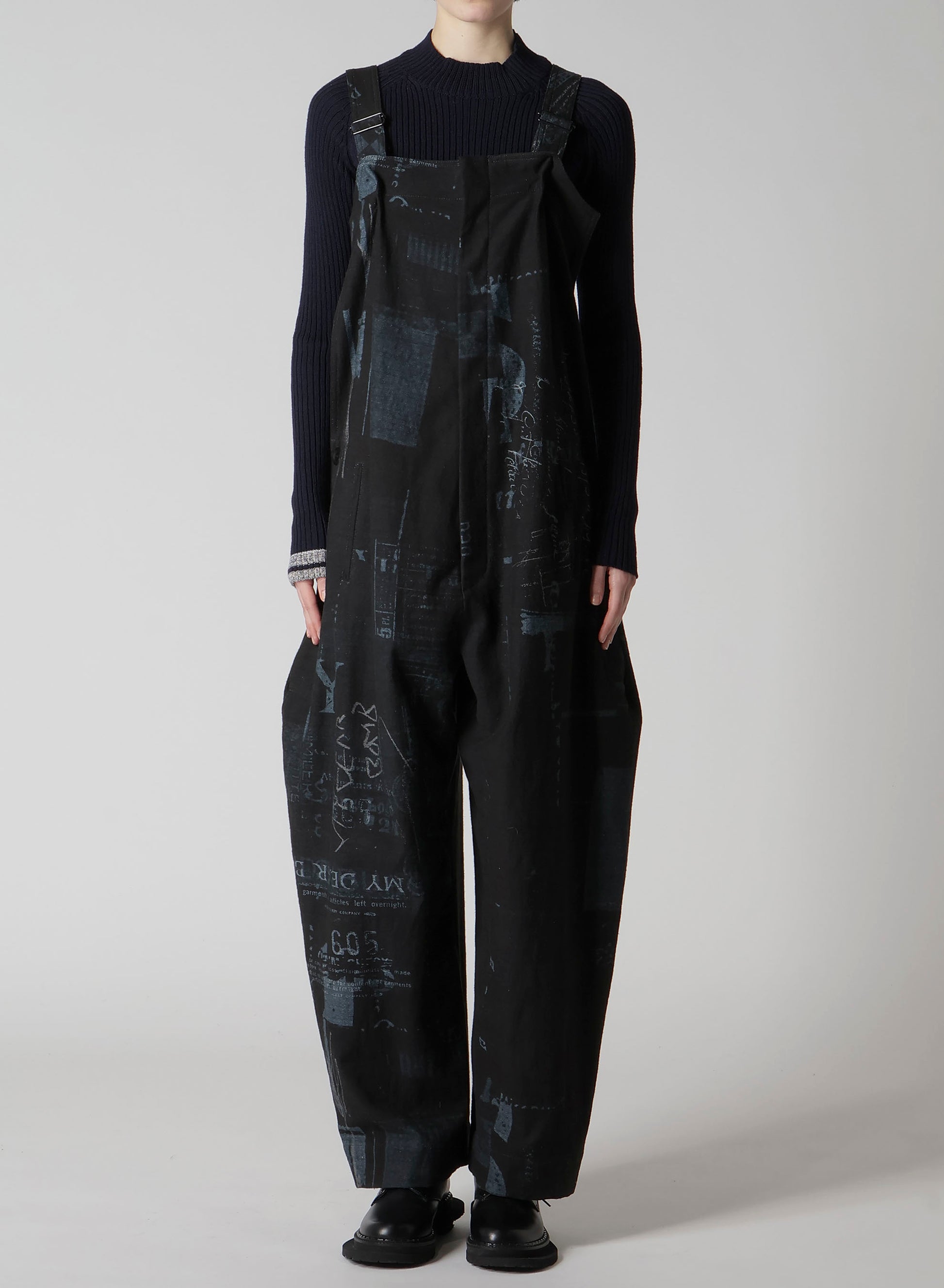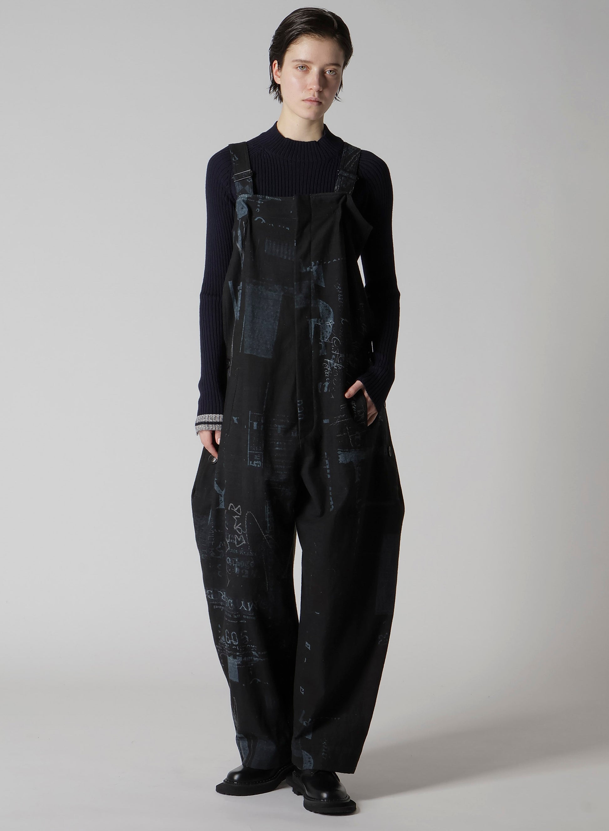 8OZ DENIM COLLAGE PRINT OVERALLS