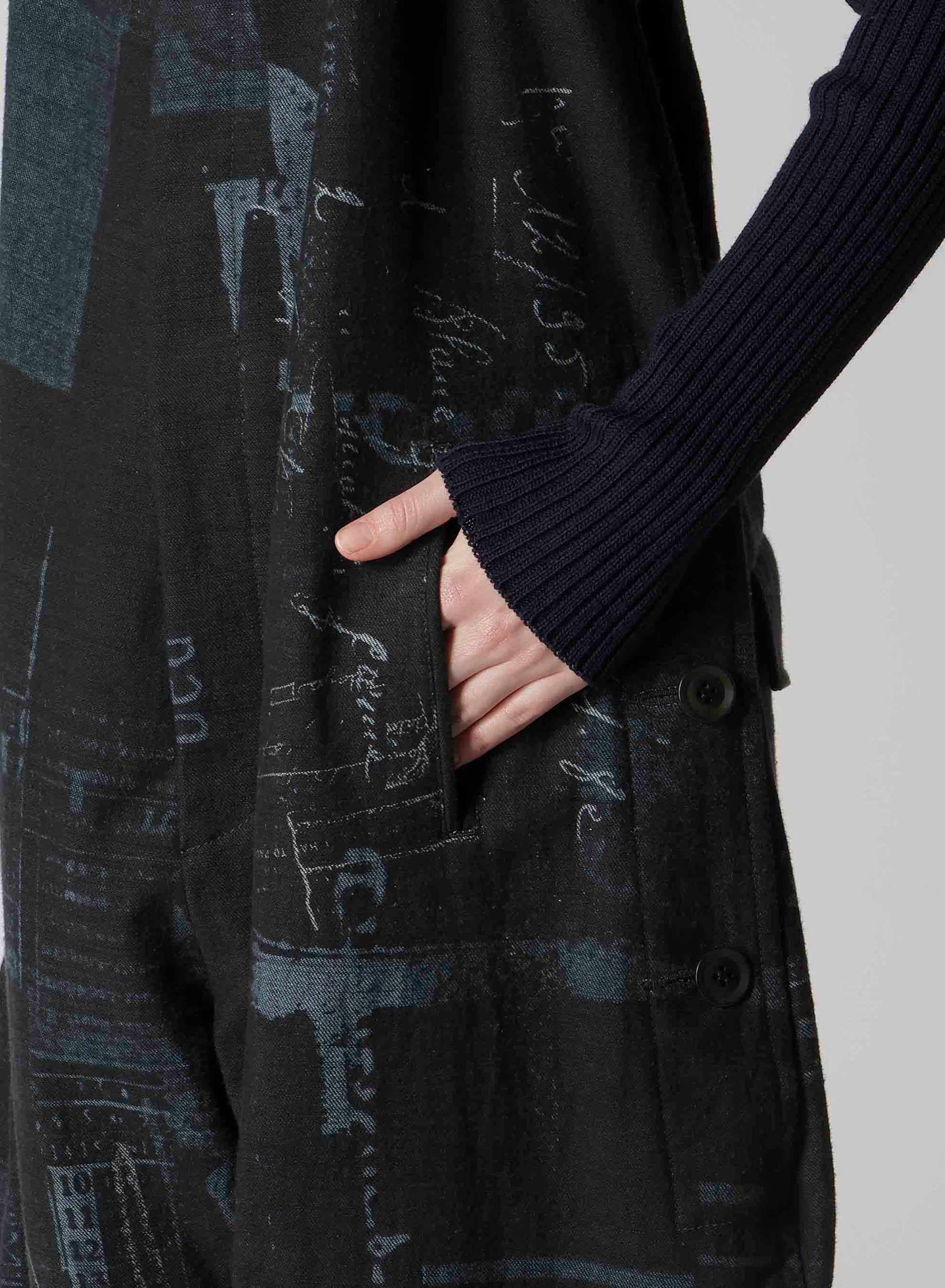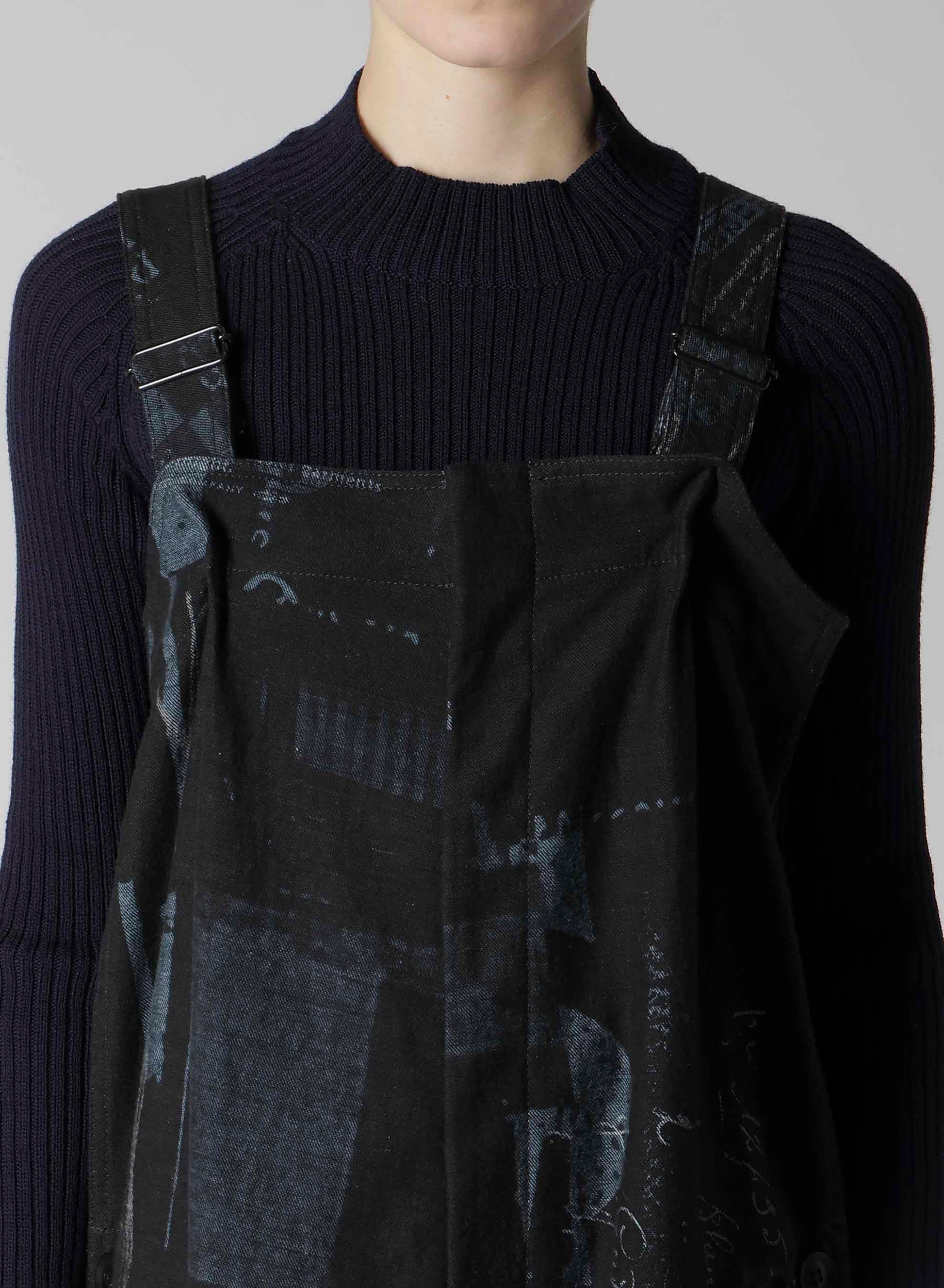 These overalls feature a collage pattern printed on soft denim fabric using an inkjet method. With a menswear-inspired volume and a silhouette that flatters the female form, these overalls provide a low-center balance. The front zipper also makes them easy to wear with a variety of inner wear like knitwear or shirts.