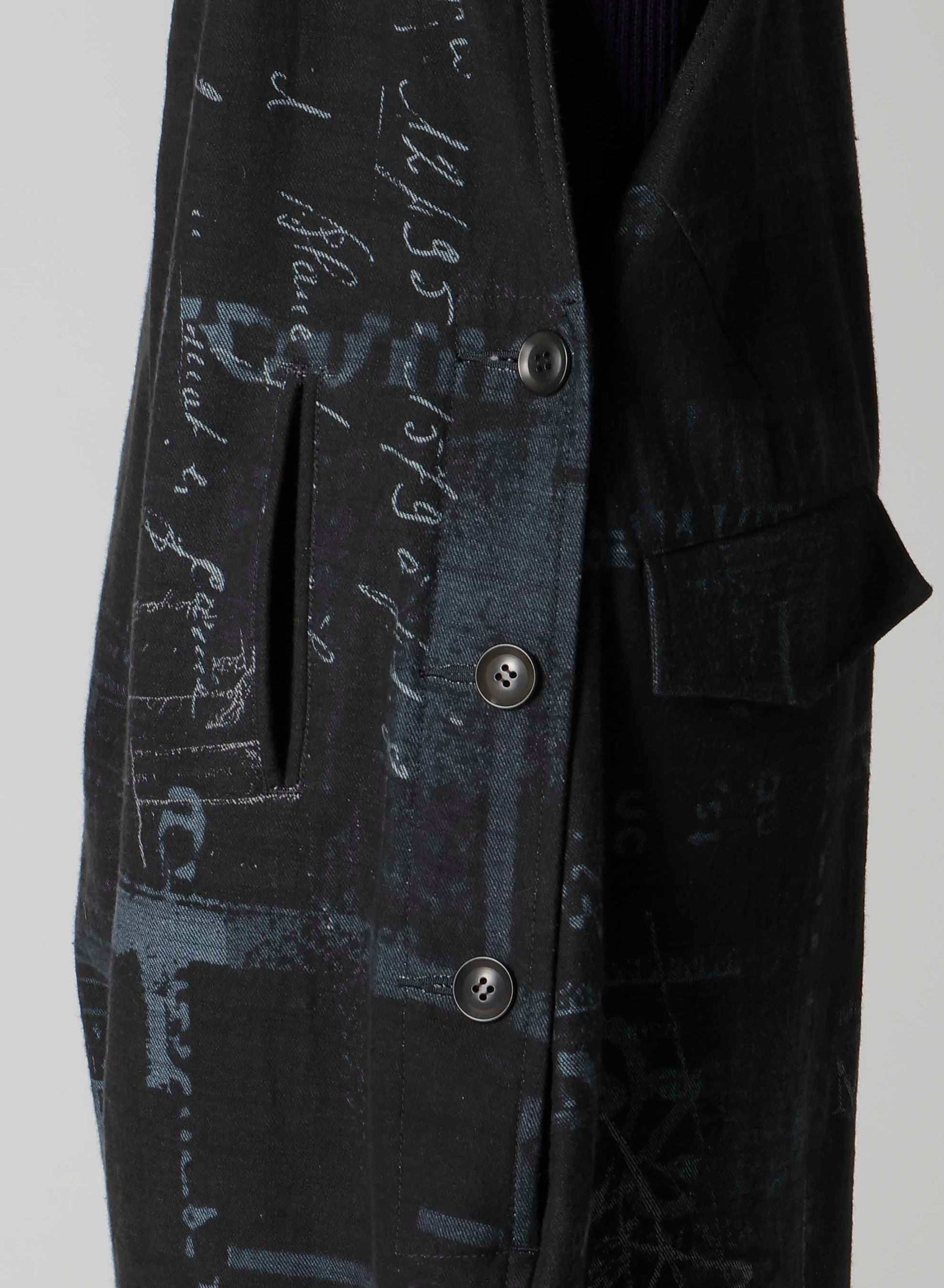 - Soft denim fabric with an inkjet-printed collage pattern.