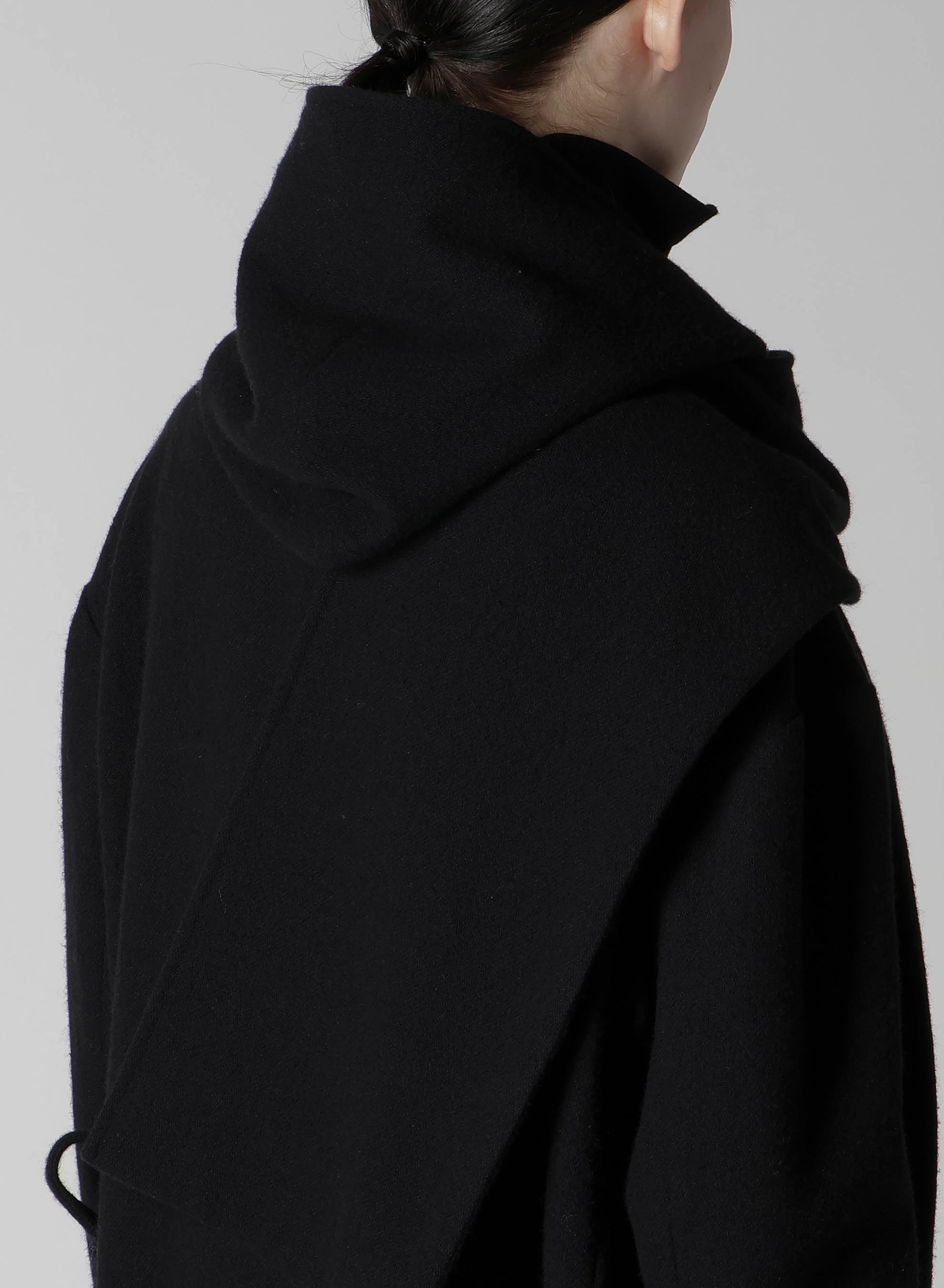 This flannel hooded stole jacket blends sustainability and style, crafted from recycled wool yarns into vintage flannel fabric featuring a cozy textured finish. Its versatile stole can be styled in multiple ways, making it a unique addition to any wardrobe, while a wide collar adds elegance and functionality.