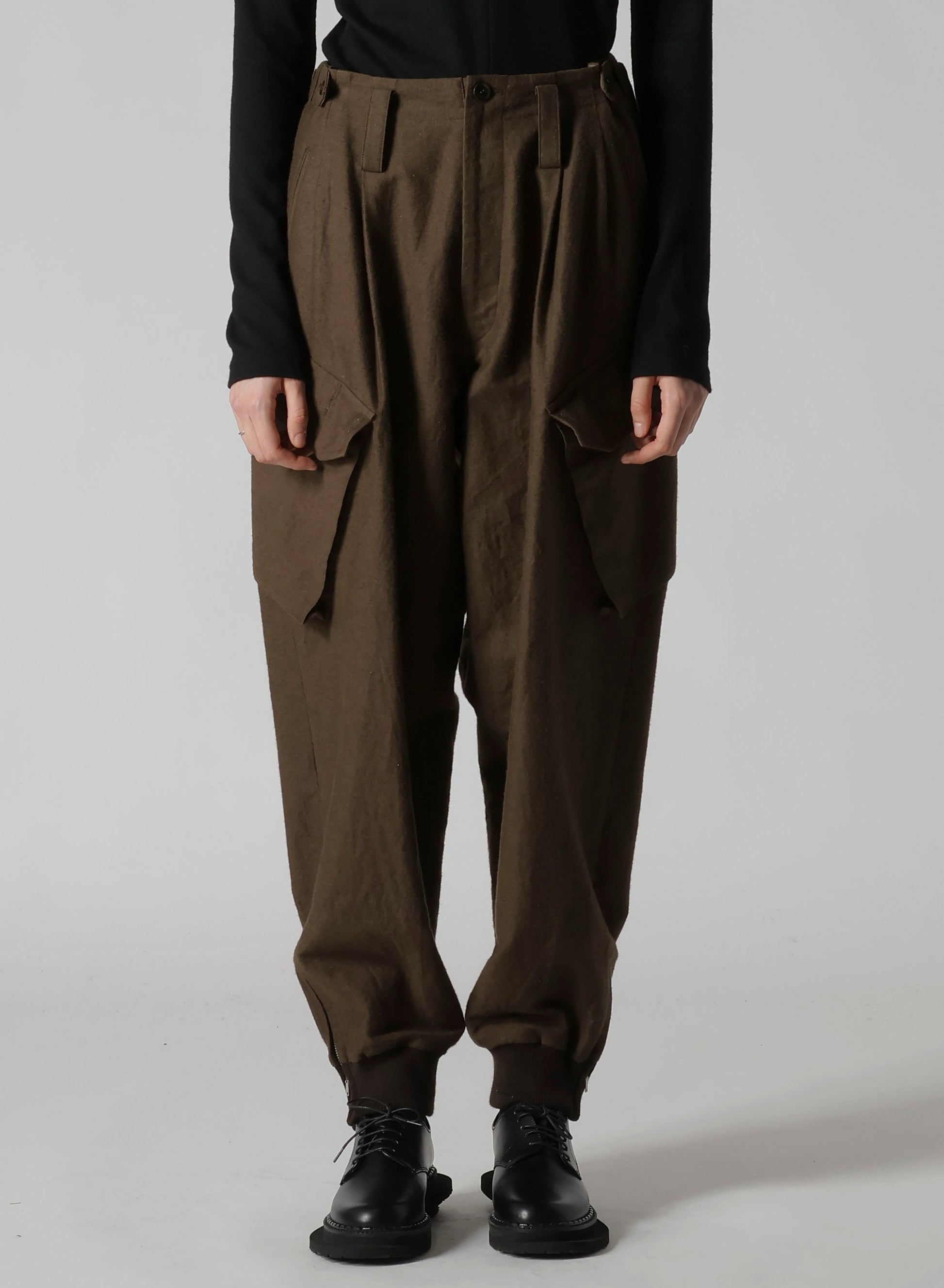 These pants are inspired by military wear with a relaxed tapered silhouette. Made of linen, they feature a fluffy texture and come with an accent of 3D outer pockets. Waist tabs allow for adjustment without a belt, and slightly opening the zipper at the hem maintains a clean silhouette.