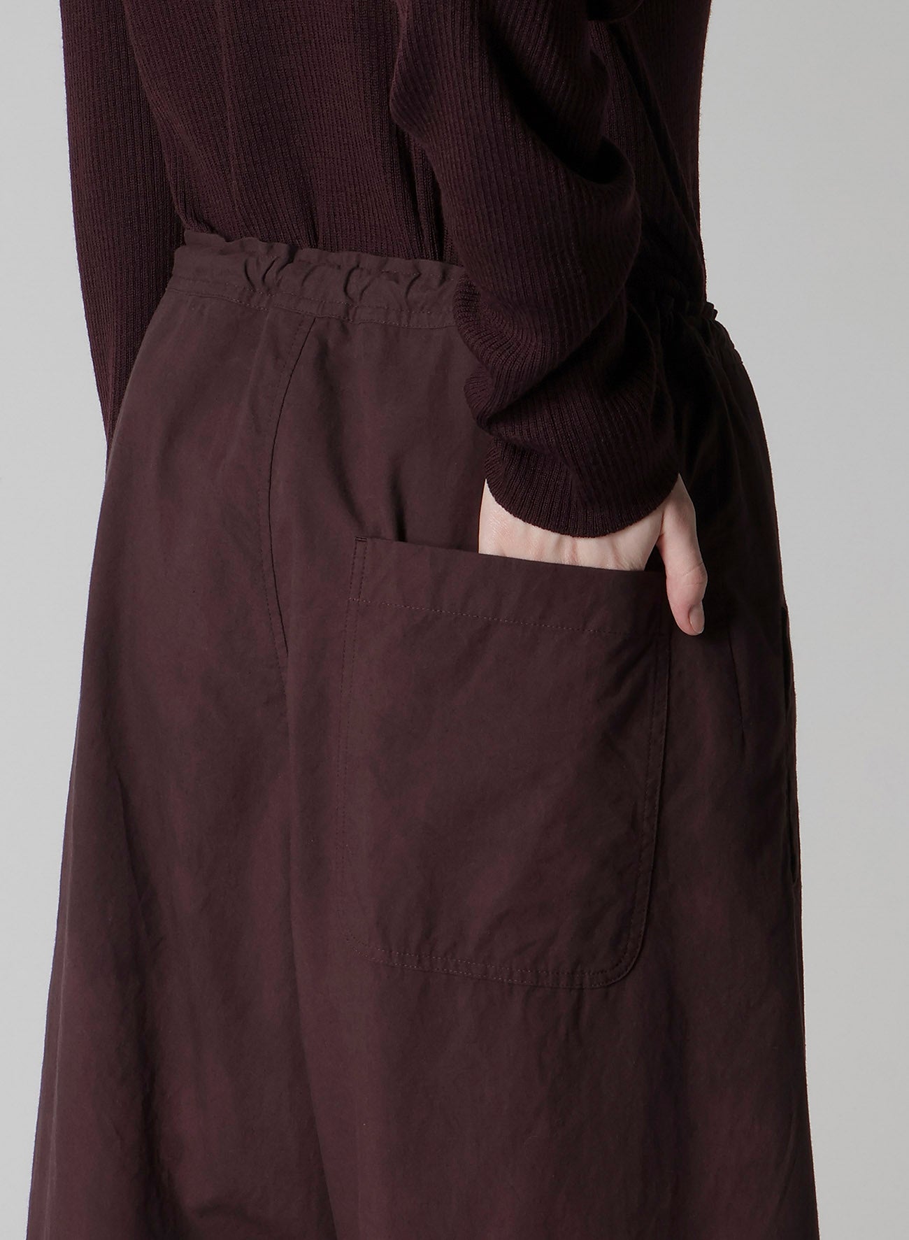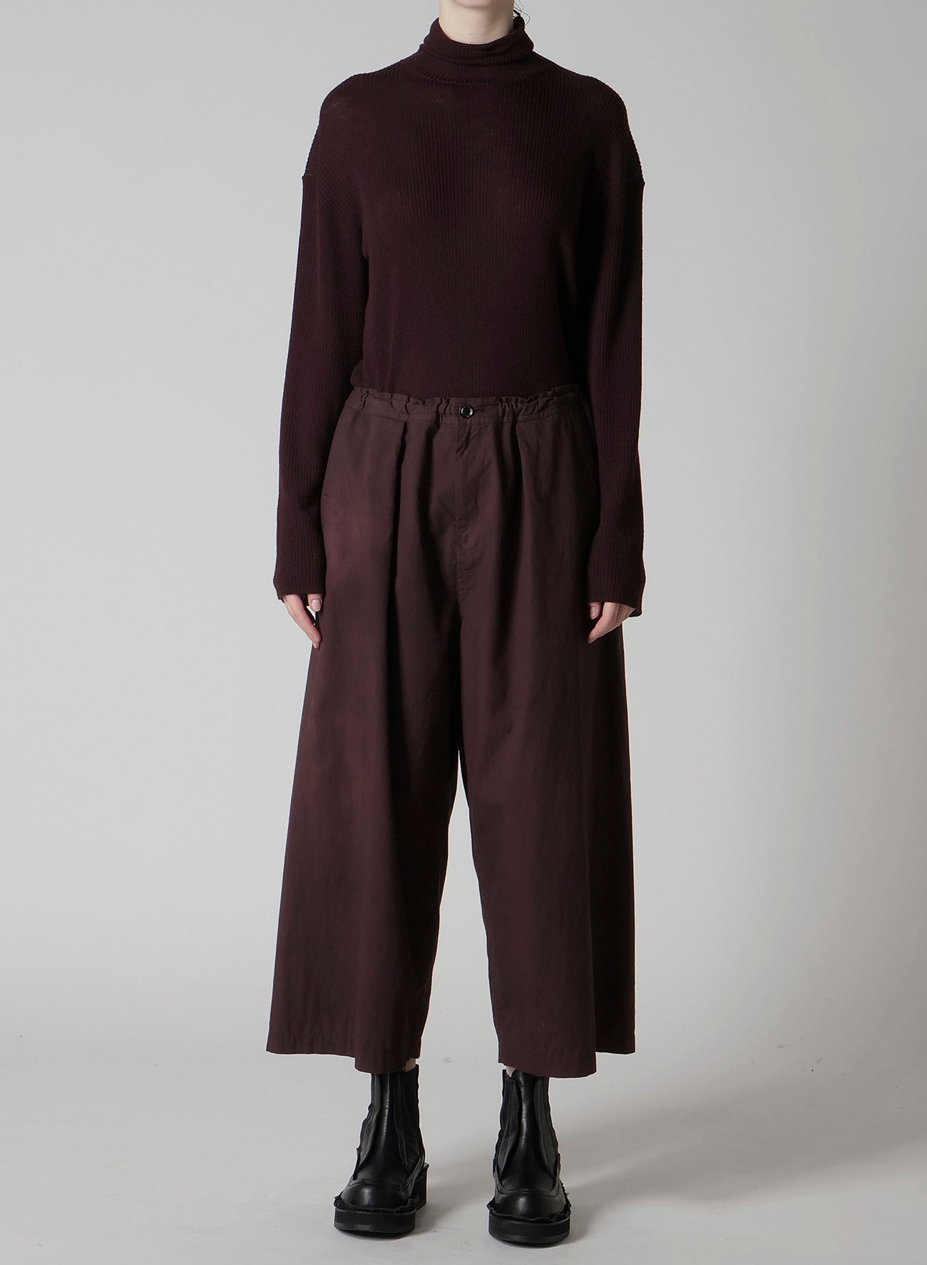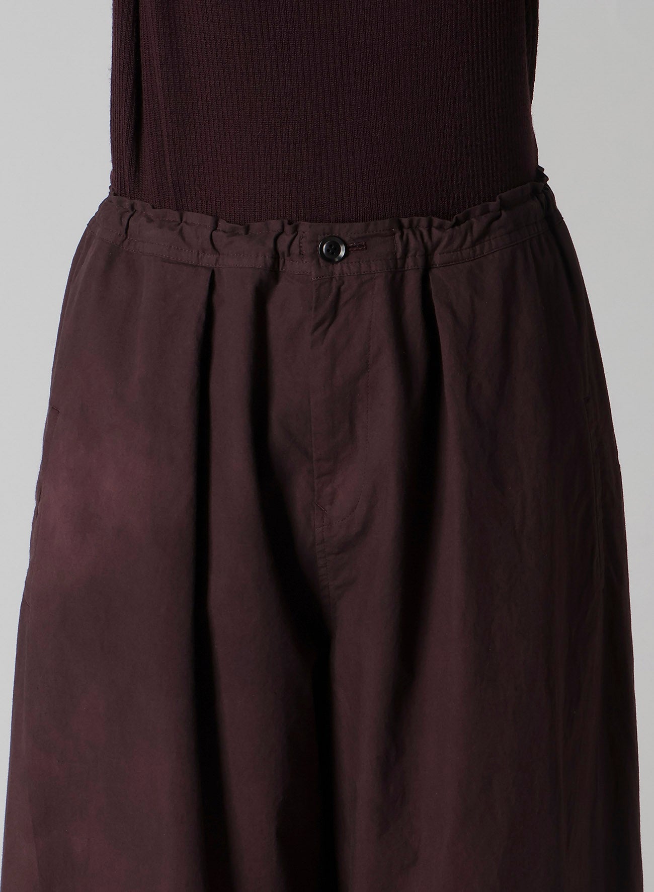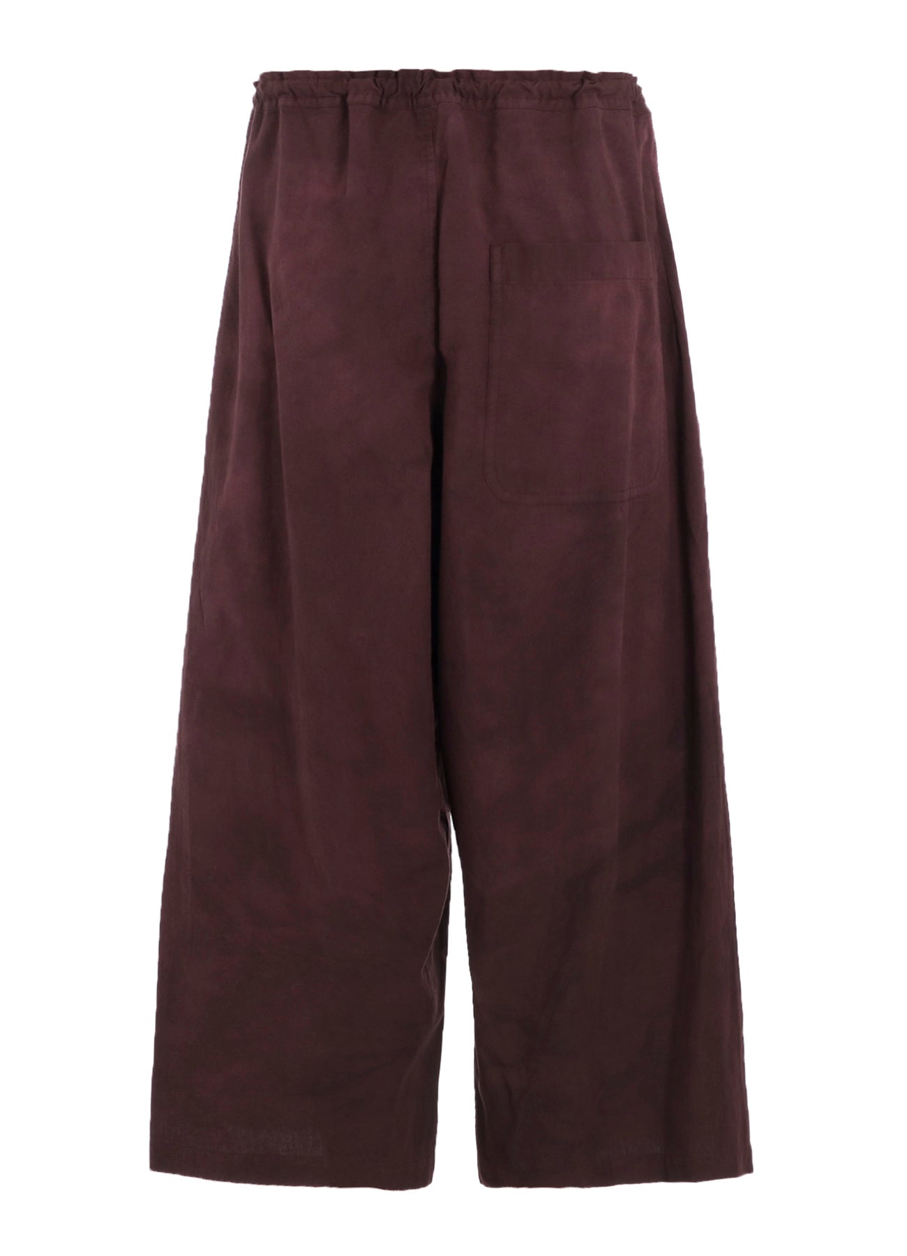 These pleated pants feature a slightly cropped, relaxed fit, ideal for coordinating with oversized coats. Crafted from cotton-wool, they are warm yet light and thin. Each piece is hand-dyed by artisans, creating unique variations and a texture unmatched by machines. They are a versatile staple for any wardrobe.