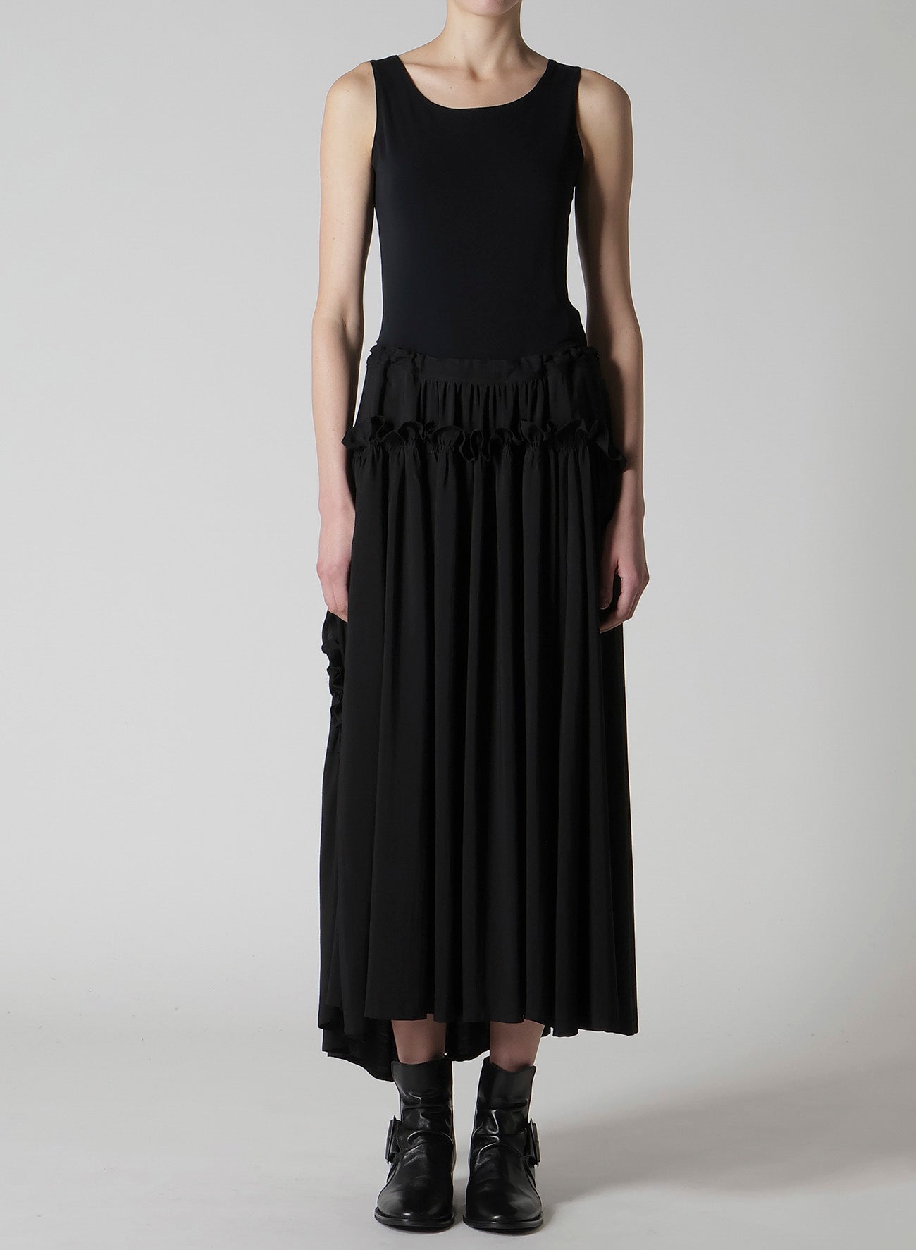 HARD-TWIST SERGE FRILL GATHER SKIRT