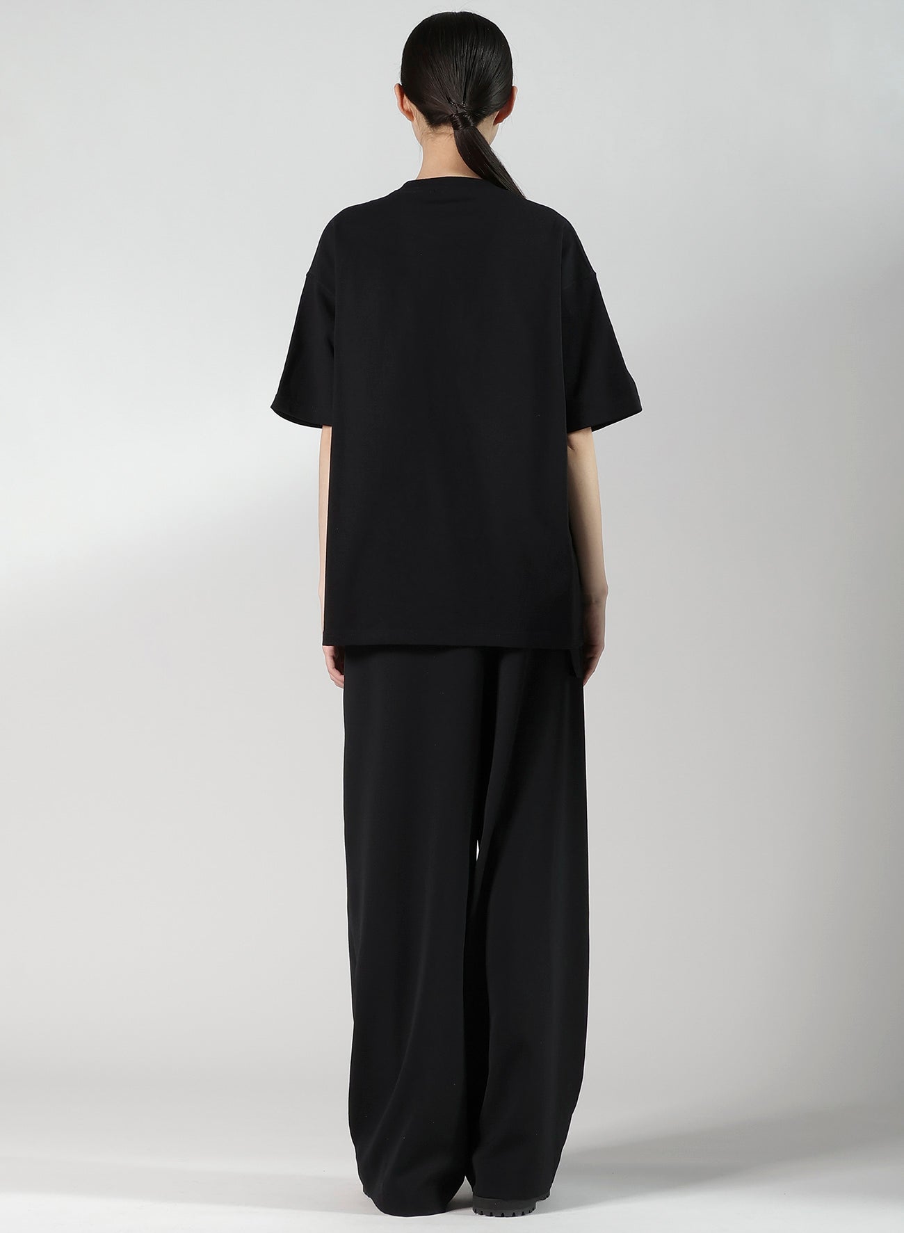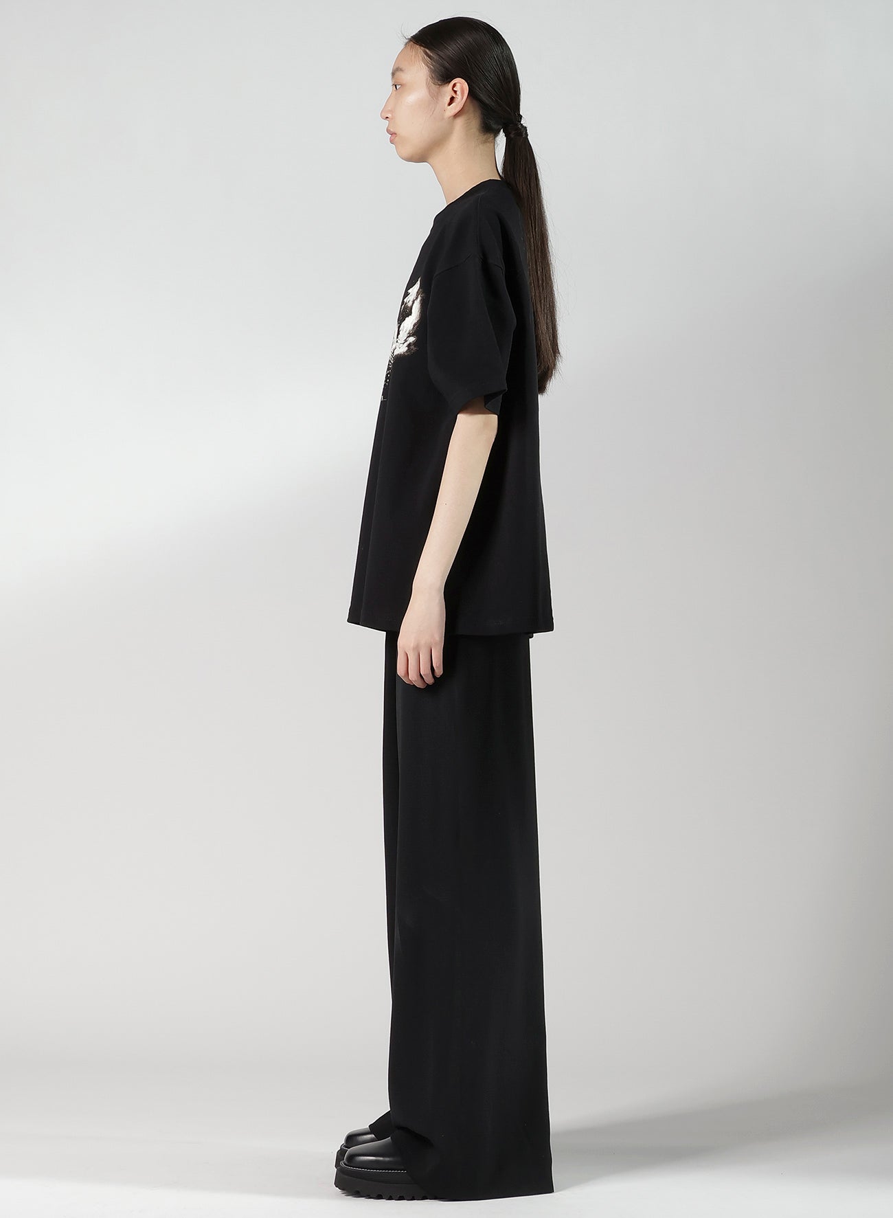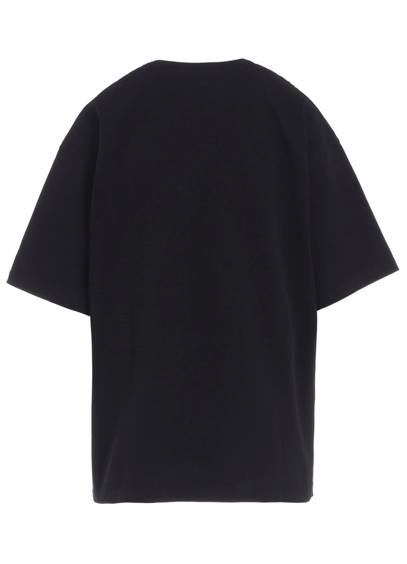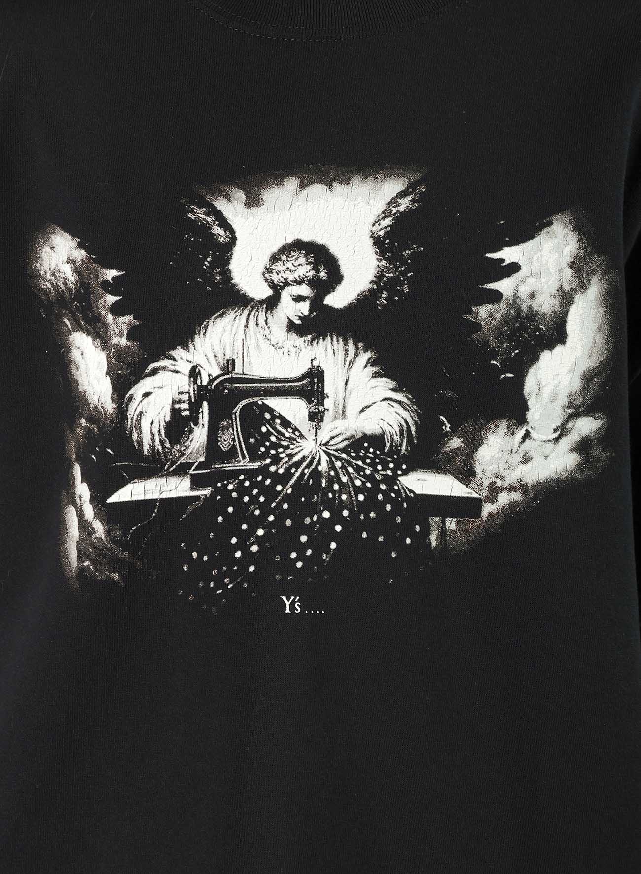 A short-sleeve top featuring an angel motif applied with pigment print. The oversized silhouette is designed for a unisex fit, accommodating various body types comfortably.