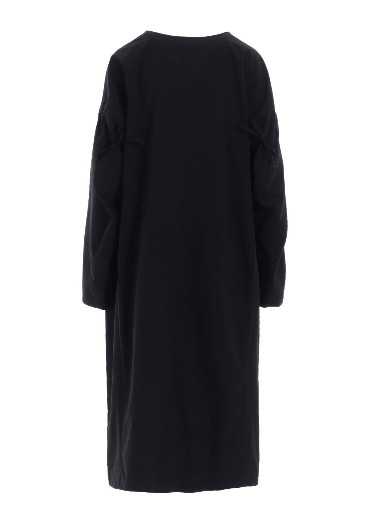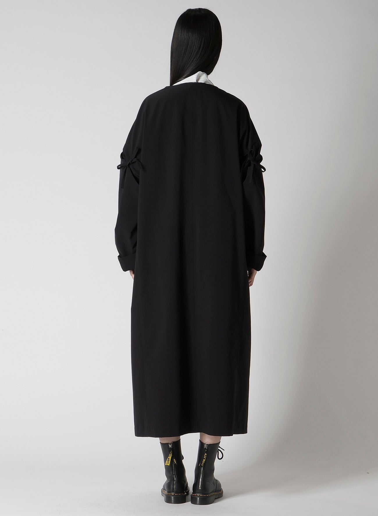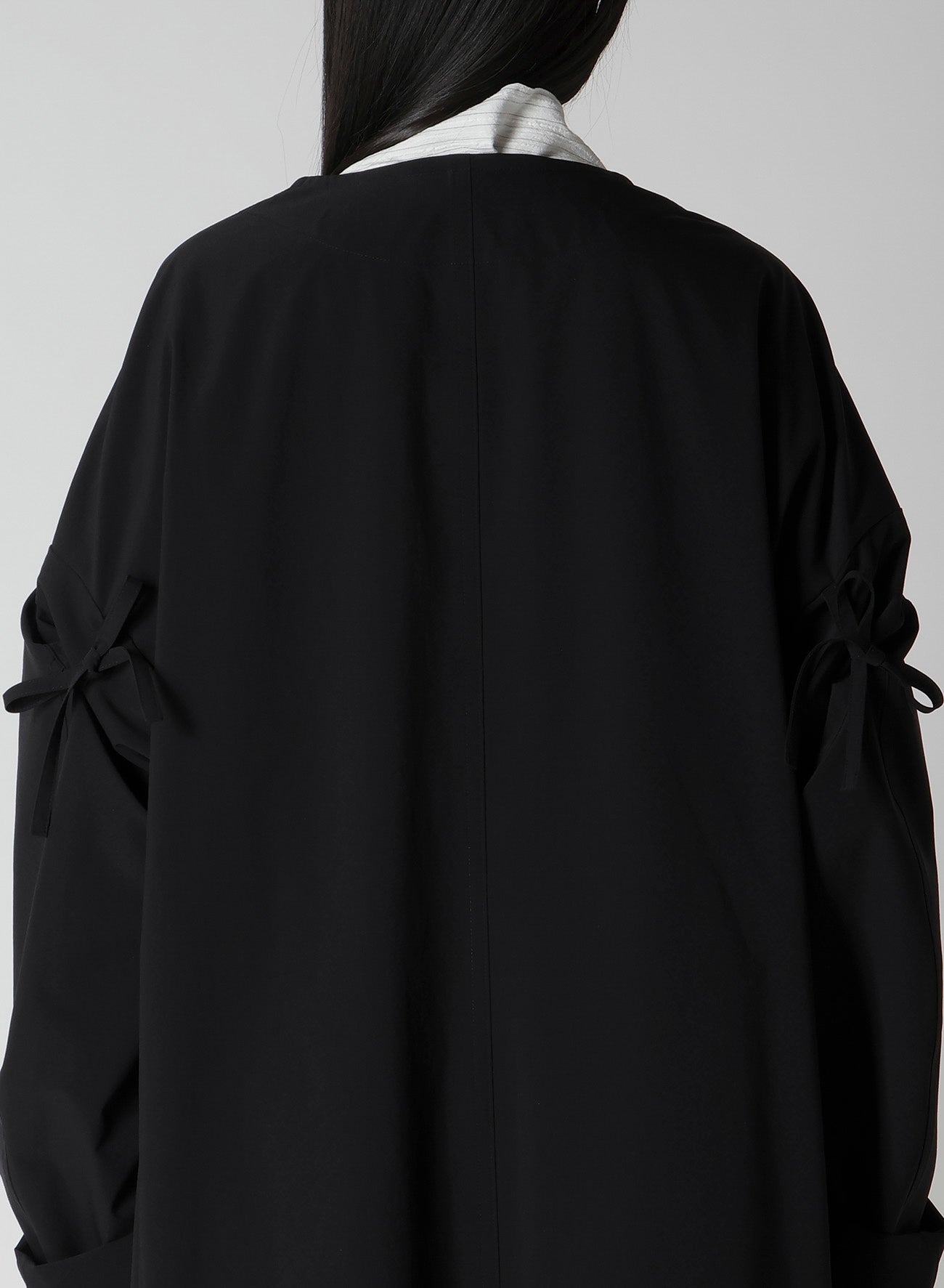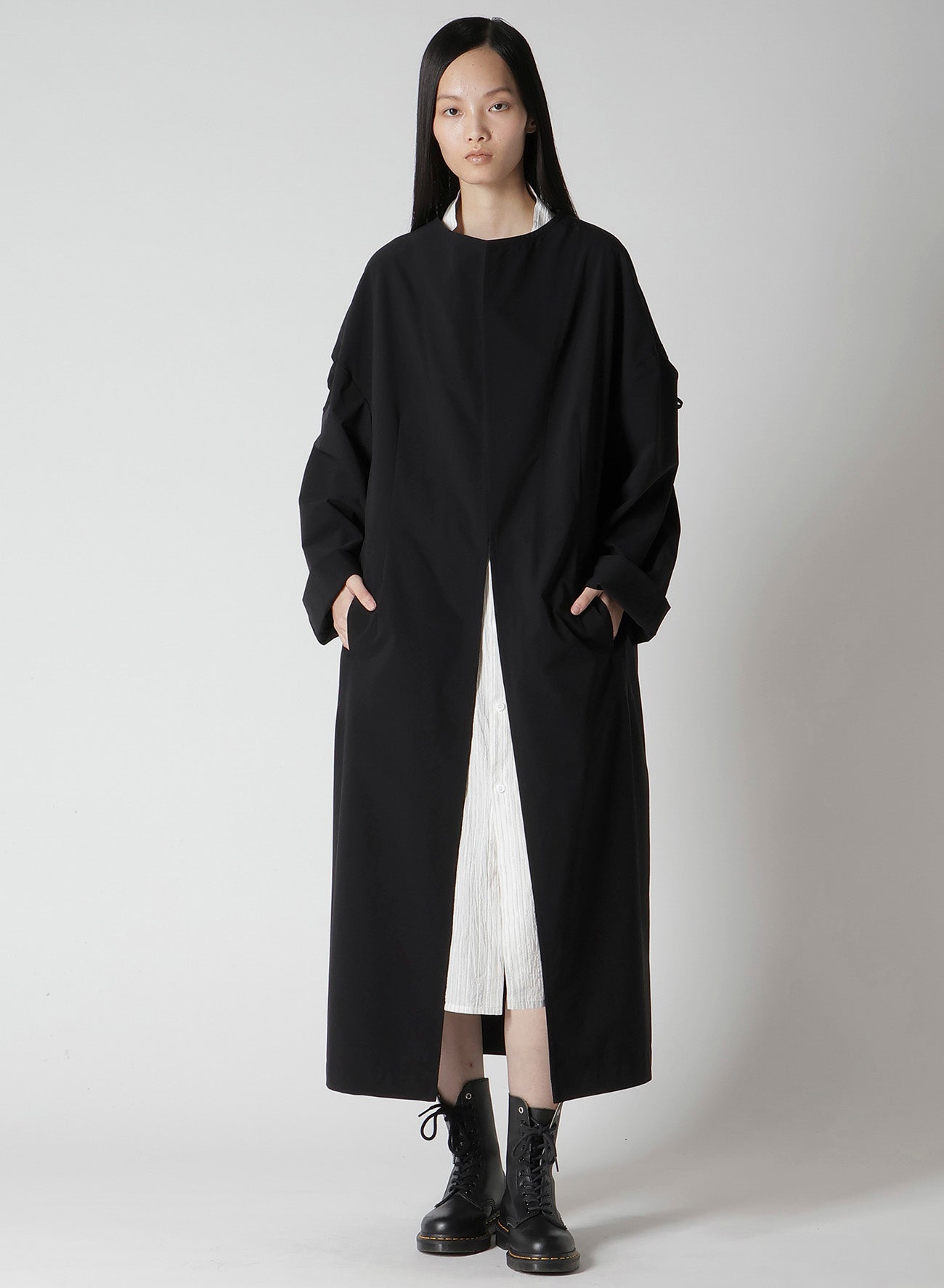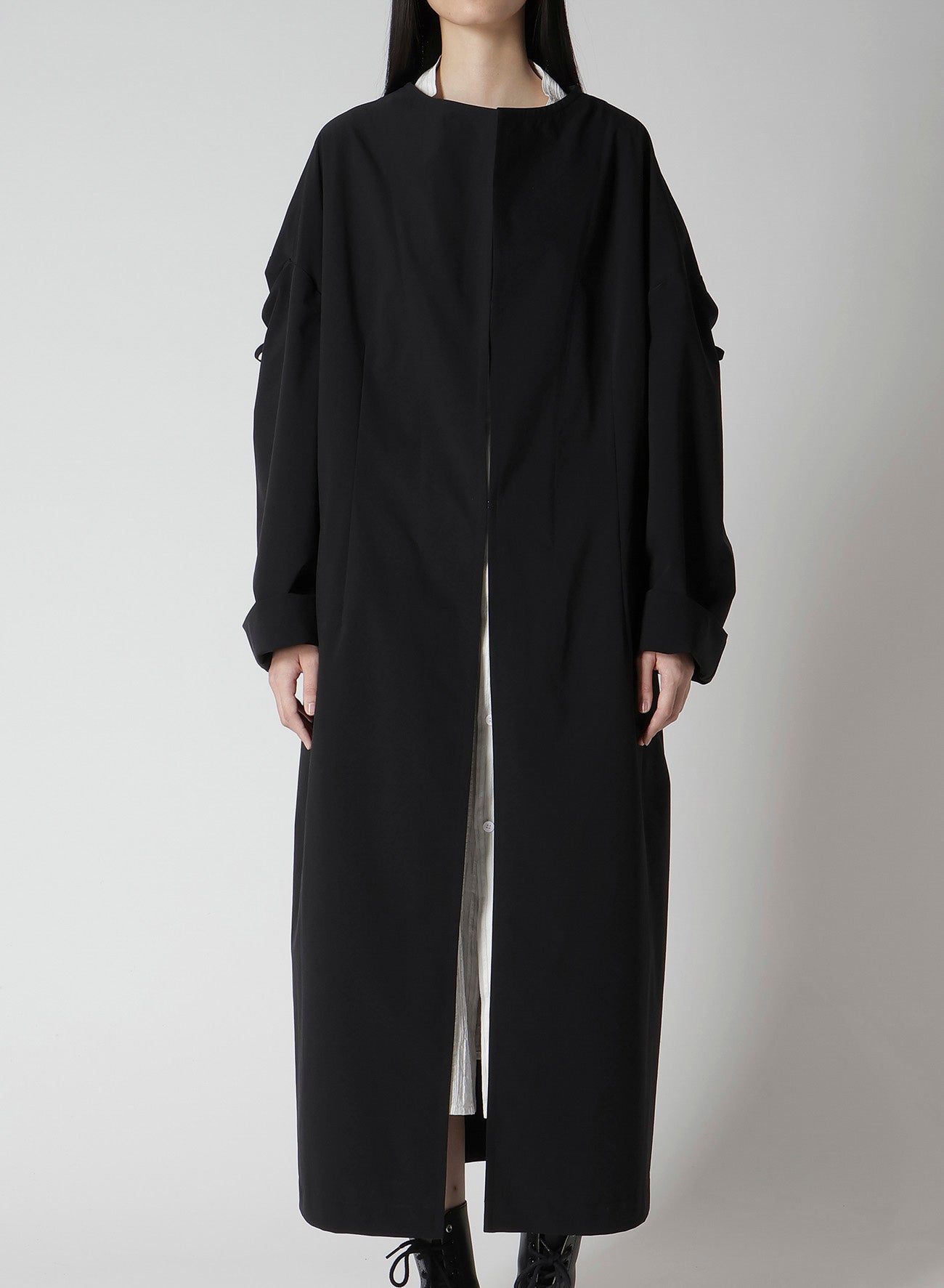 This coat is crafted from a soft and stretchable fabric, featuring prominently dropped sleeves as an accent. The fabric's stretch and water-repellent properties ensure comfort and practicality.