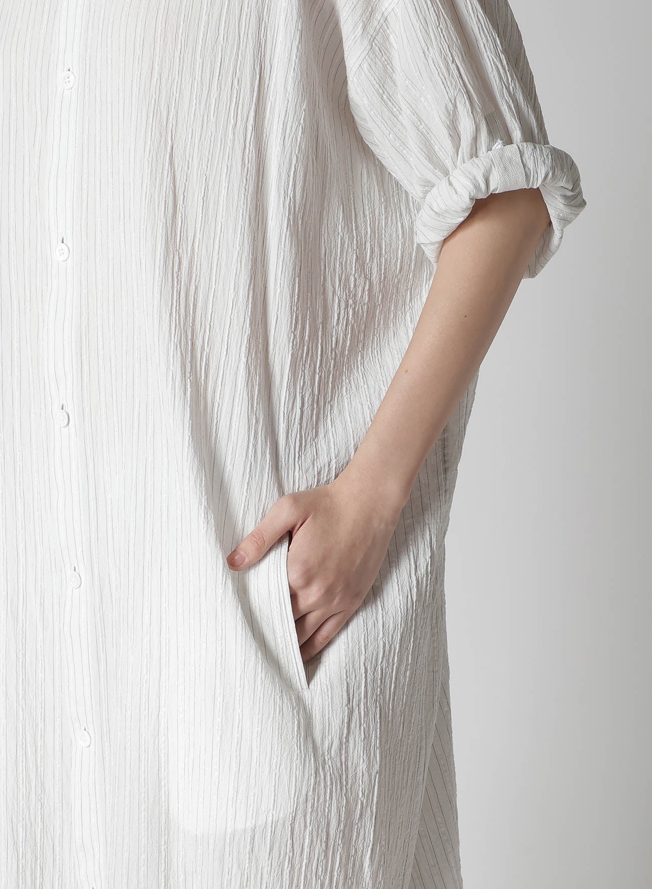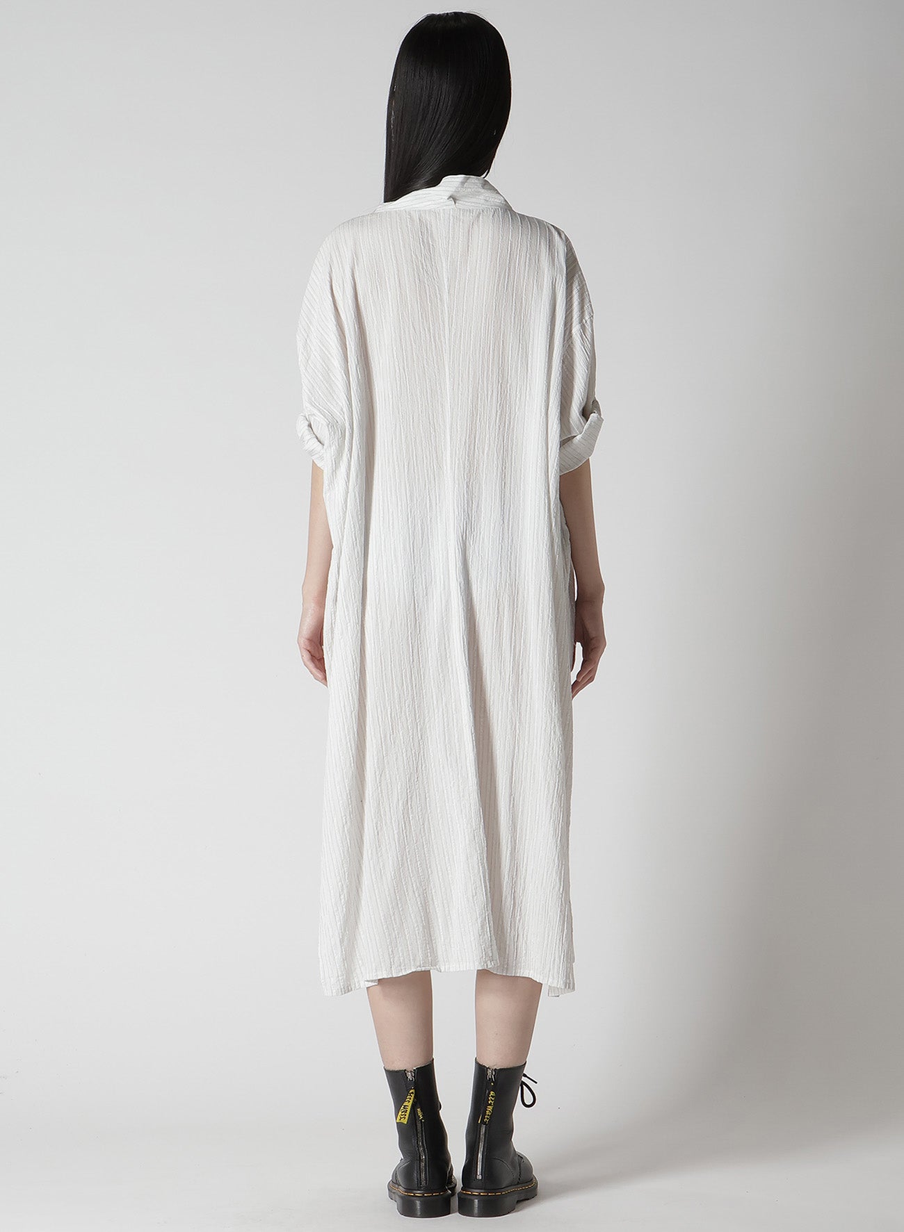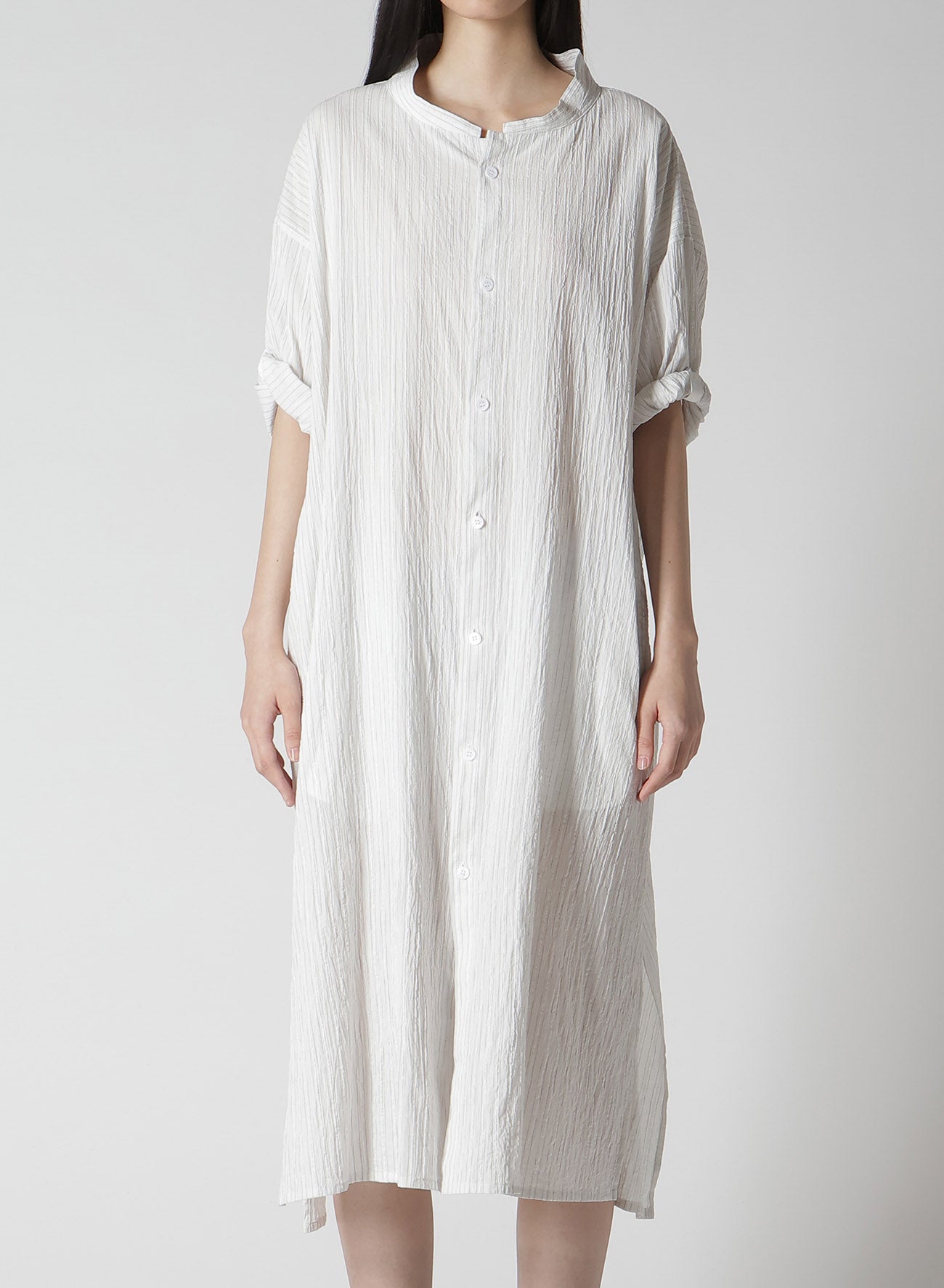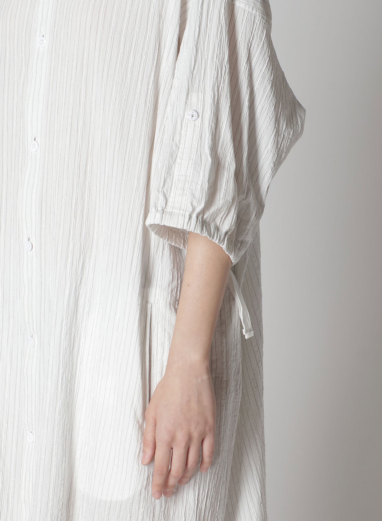 This Half-Sleeve Roll-Up Dress is crafted from a textured cotton material providing a cool feel. Tying the sleeve cord creates a soft puff effect. It can be worn as both a dress and an open-front layer. Its soft-washed finish varies subtly with each piece, ensuring comfort and uniqueness.