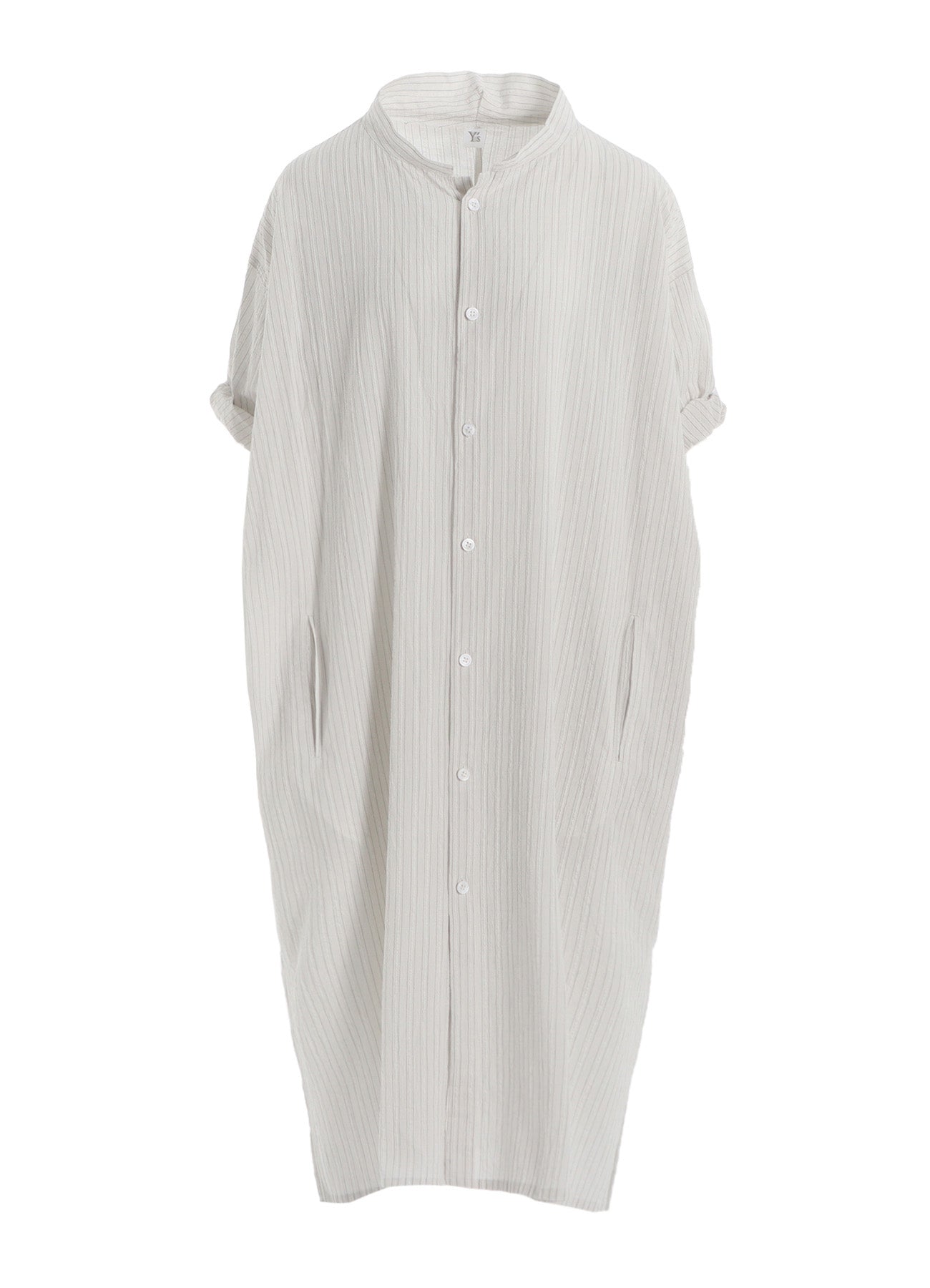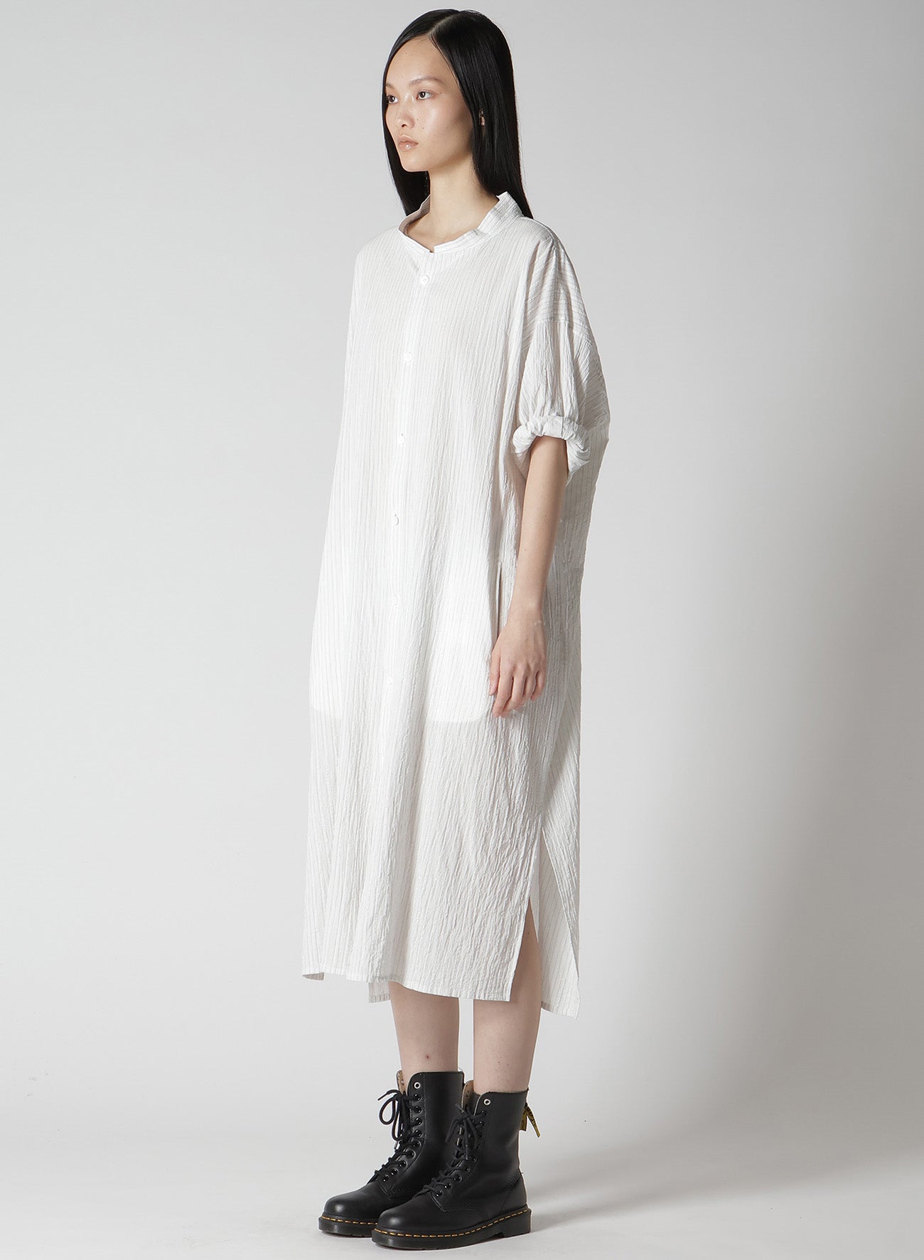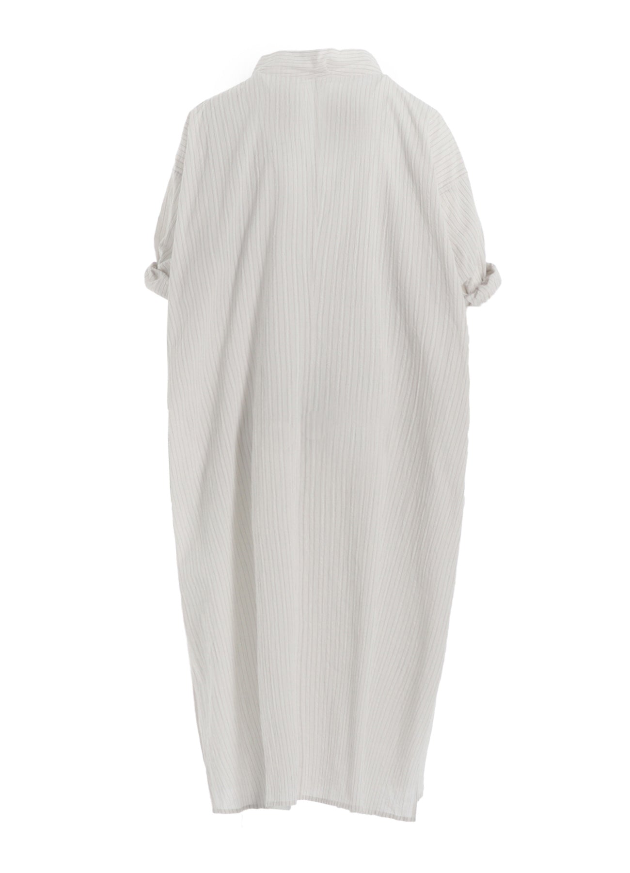 This Half-Sleeve Roll-Up Dress is crafted from a textured cotton material providing a cool feel. Tying the sleeve cord creates a soft puff effect. It can be worn as both a dress and an open-front layer. Its soft-washed finish varies subtly with each piece, ensuring comfort and uniqueness.