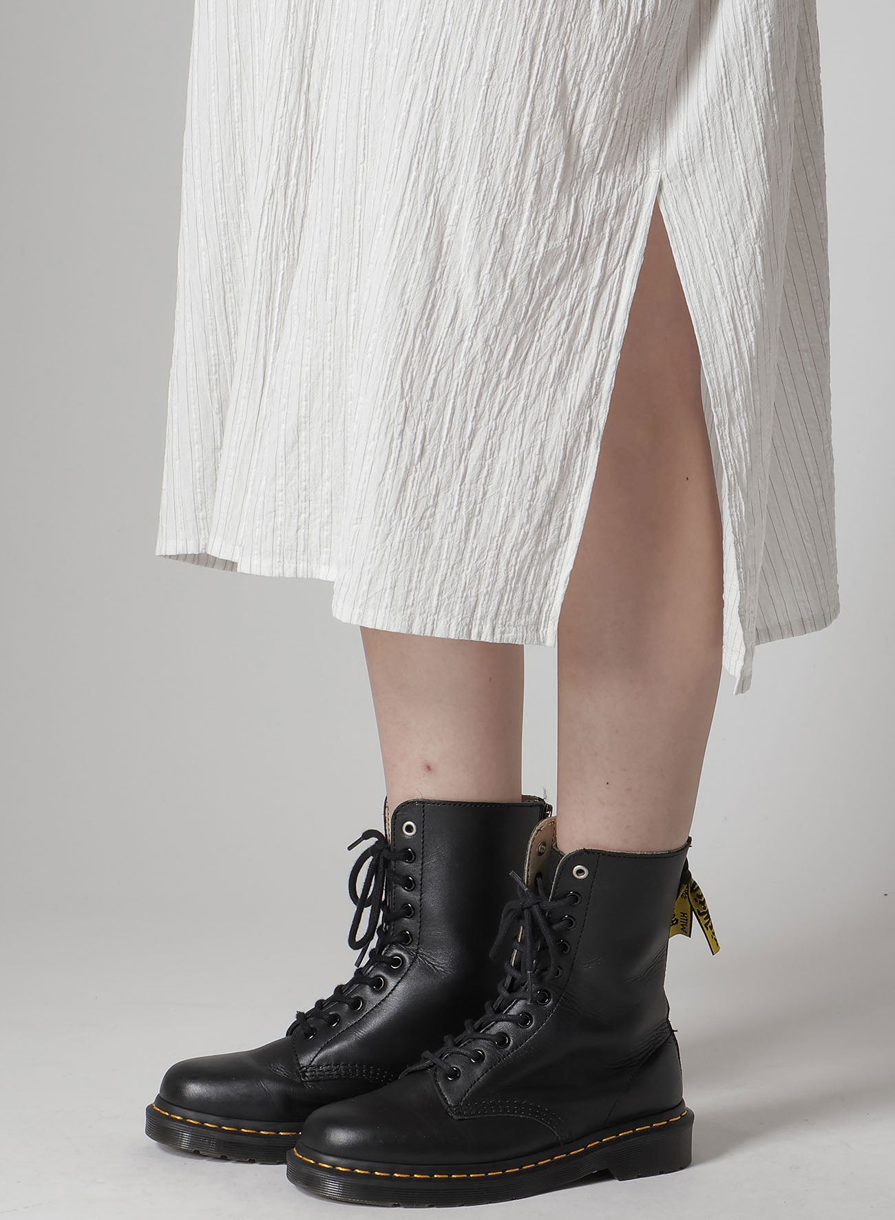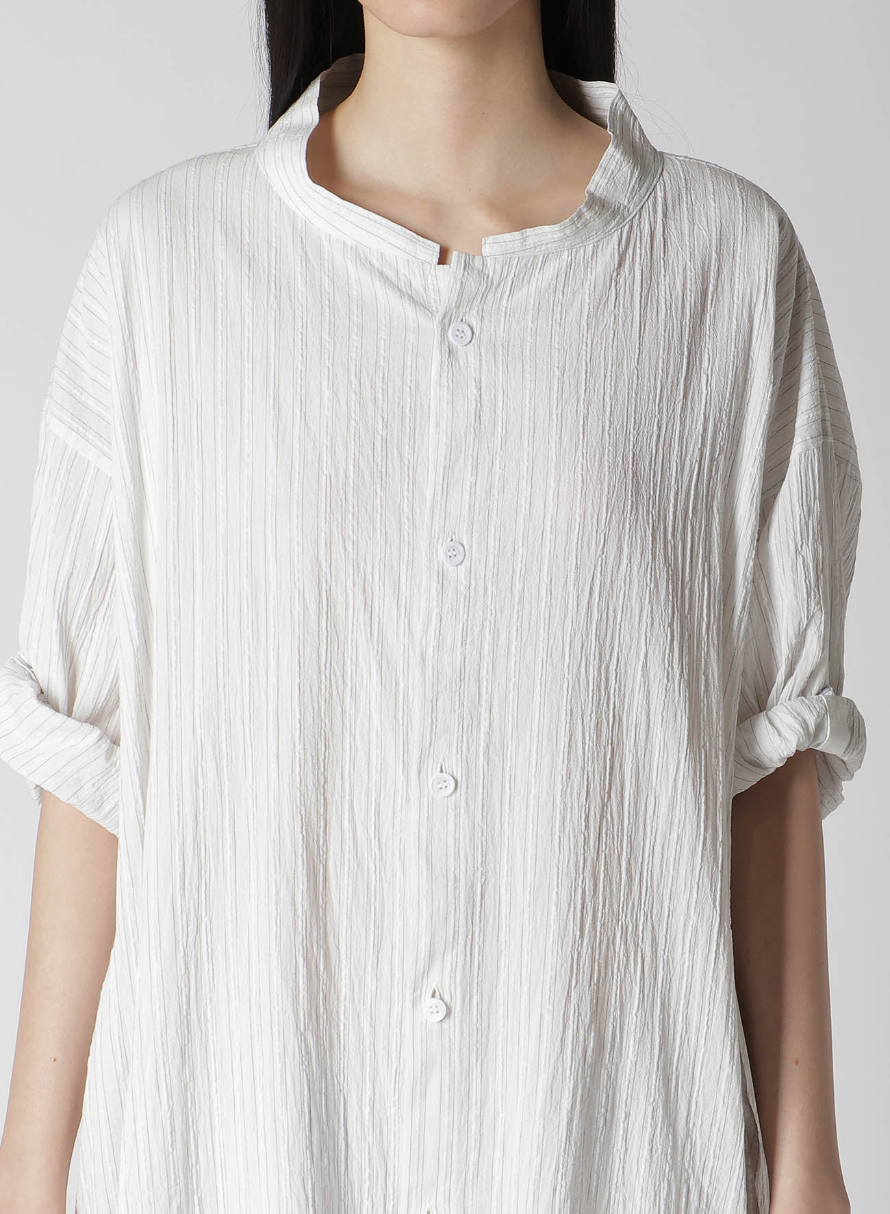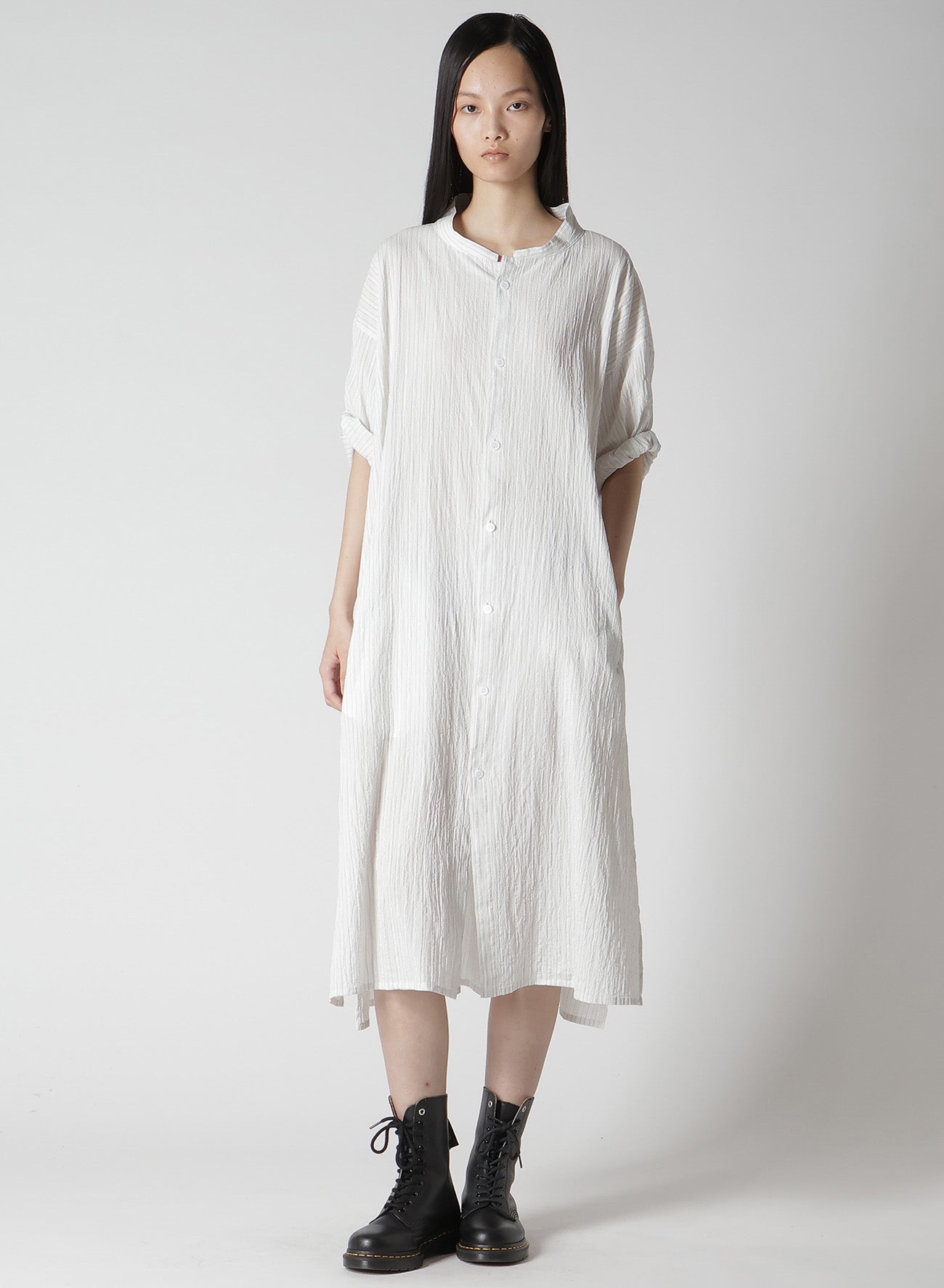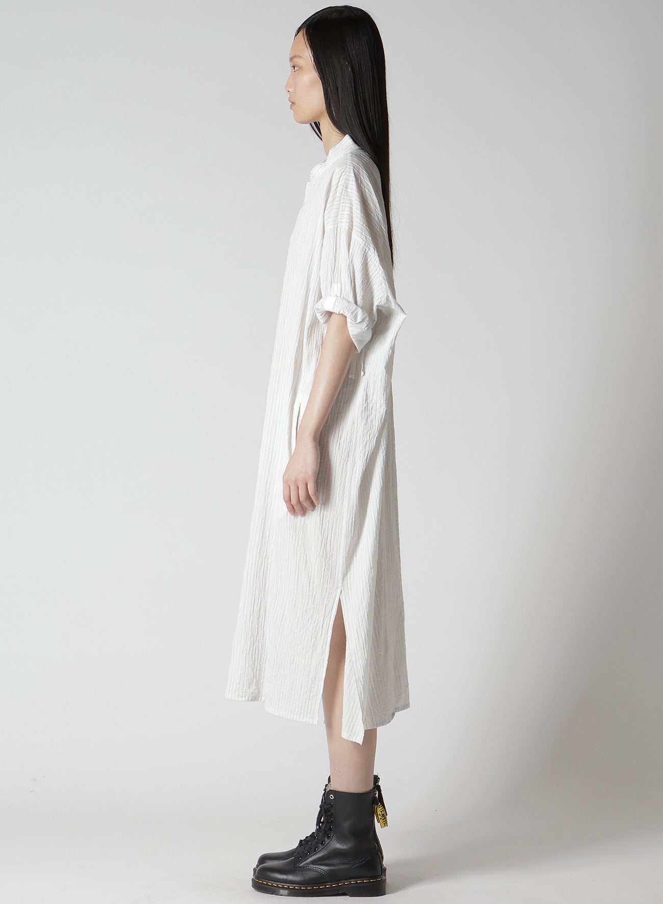 This Half-Sleeve Roll-Up Dress is crafted from a textured cotton material providing a cool feel. Tying the sleeve cord creates a soft puff effect. It can be worn as both a dress and an open-front layer. Its soft-washed finish varies subtly with each piece, ensuring comfort and uniqueness.
