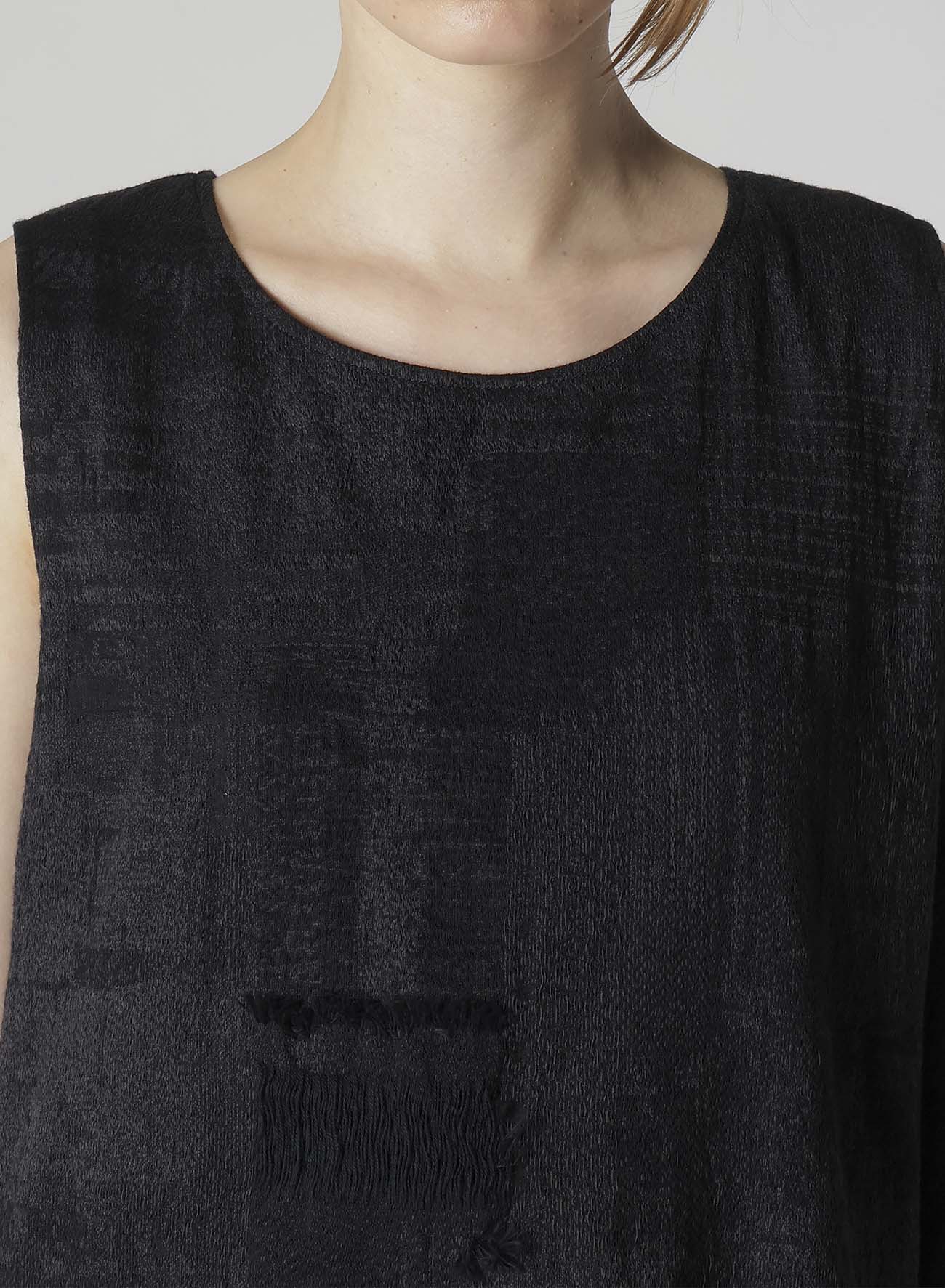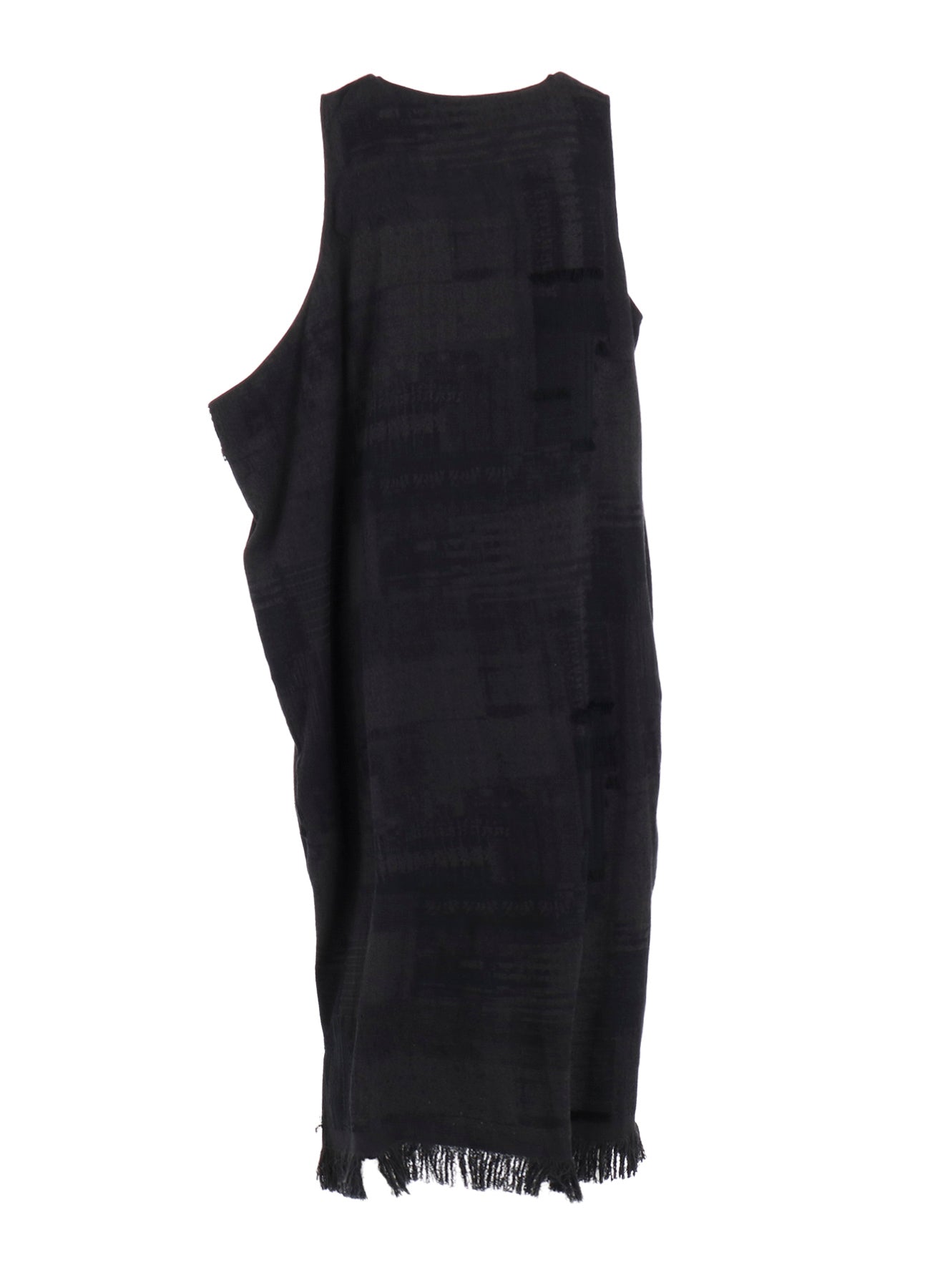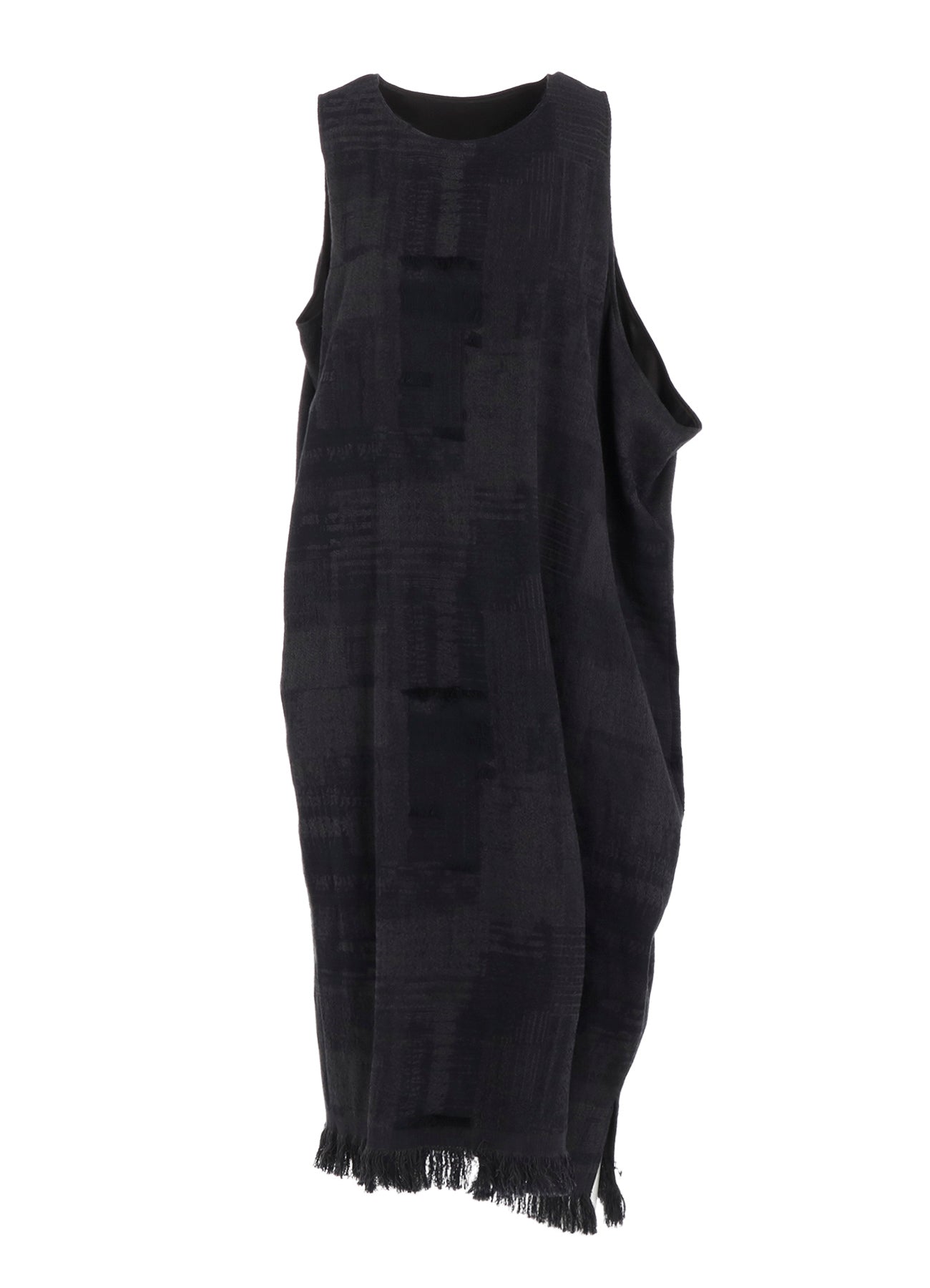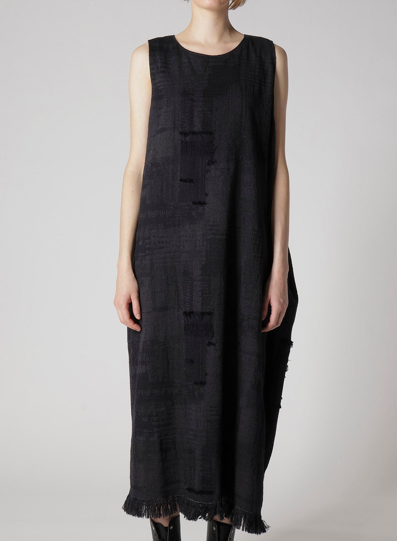 PATCHWORK JACQUARD ASYMMETRIC SLEEVELESS DRESS