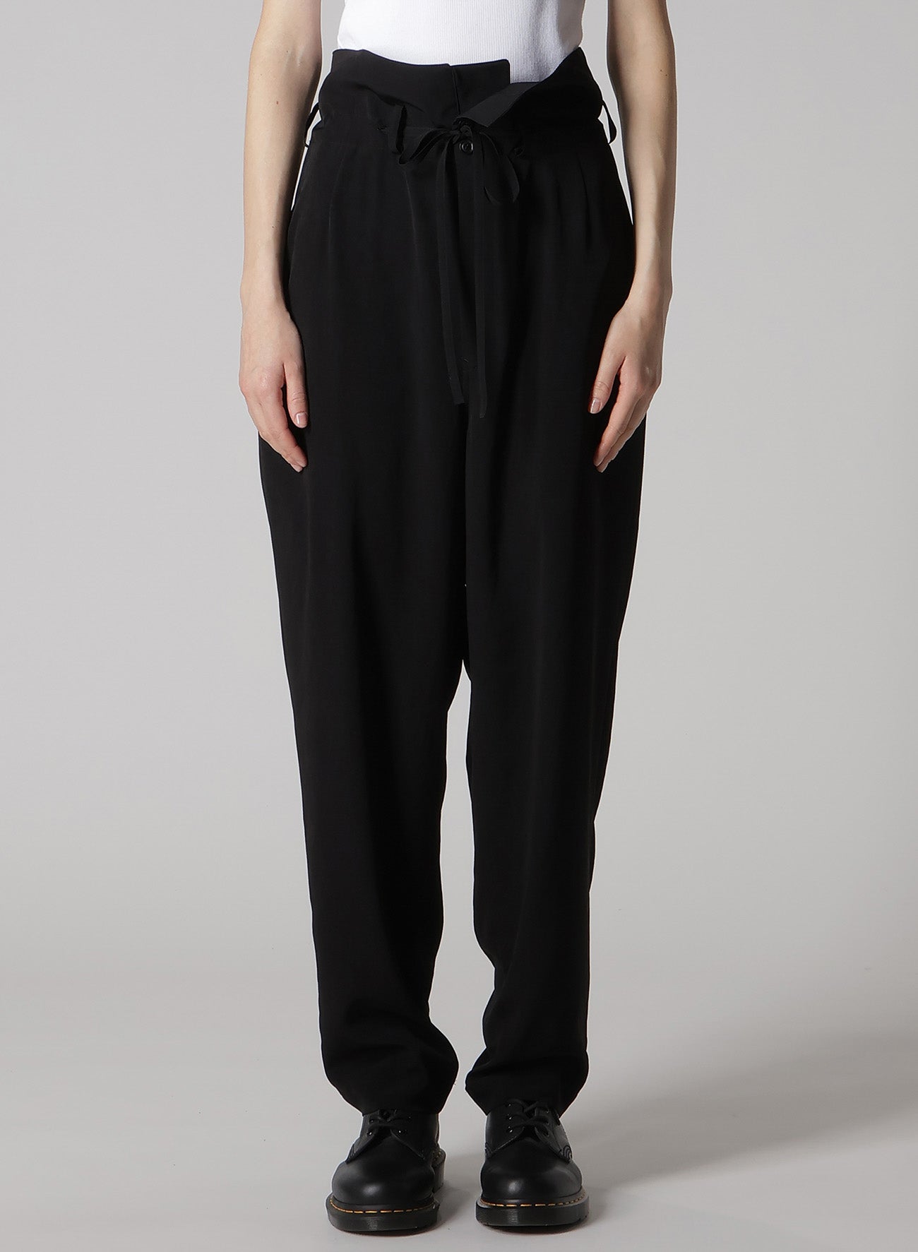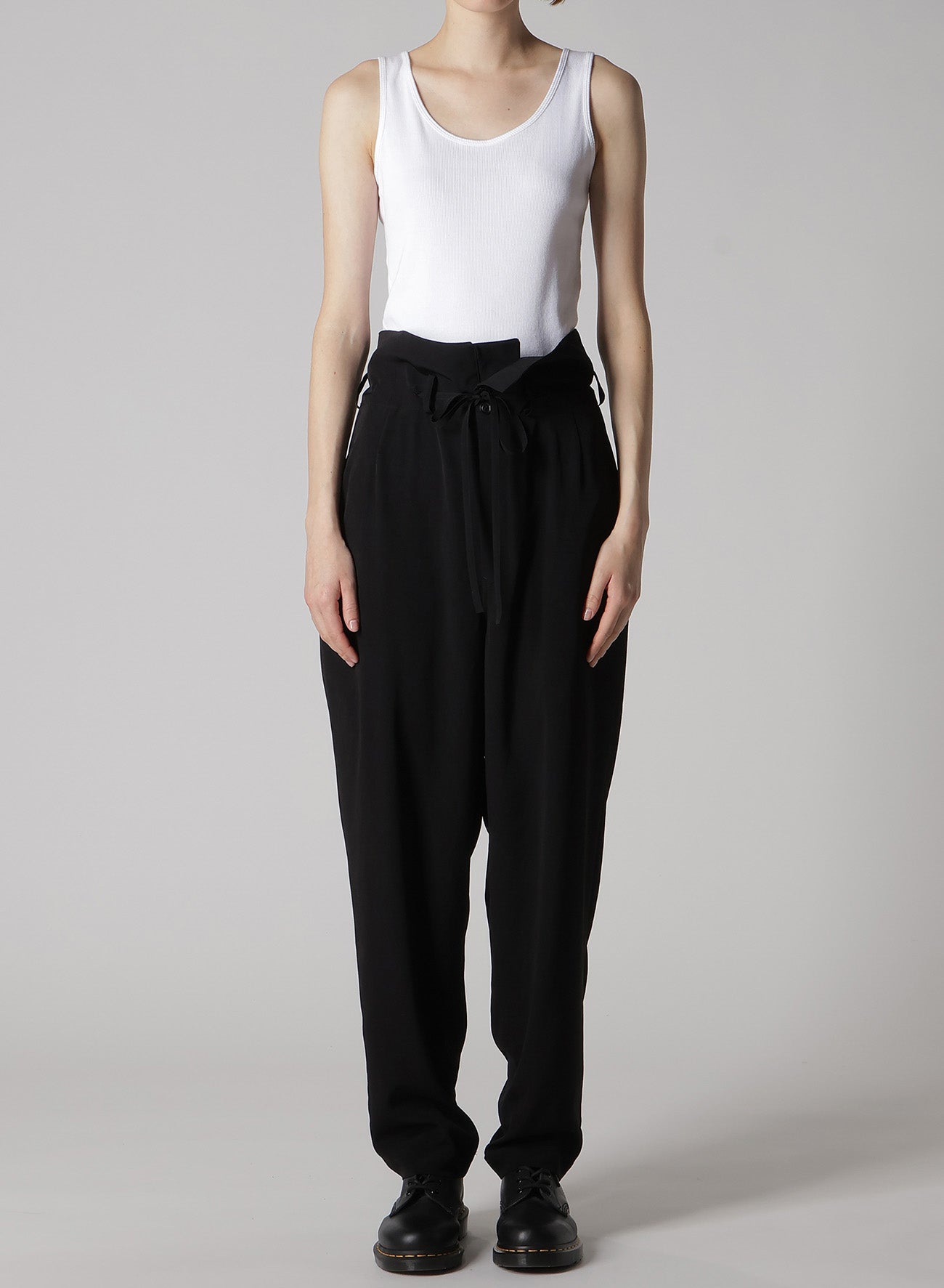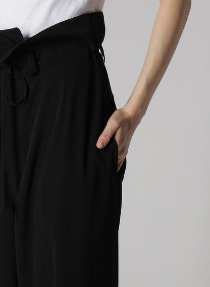 These stylish high-waist pants utilize a signature triacetate/polyester crepe de Chine fabric, with a mild sheen and a luxurious look. Wrinkle-resistant and lightweight, they ensure comfort throughout the season. By gathering with a drawstring and folding the waist, the pants offer a casual and charming appearance.