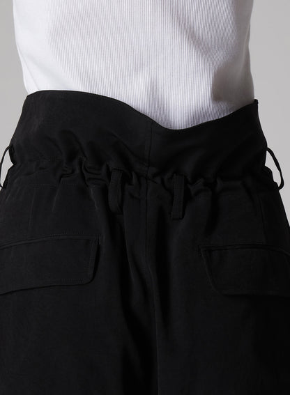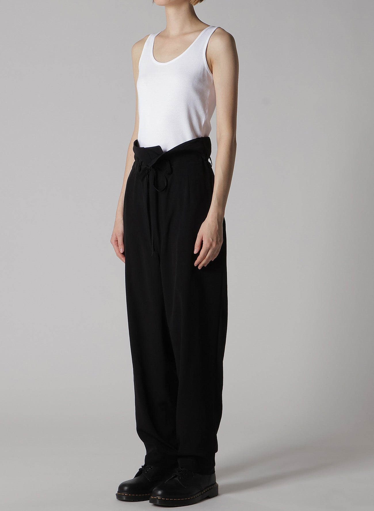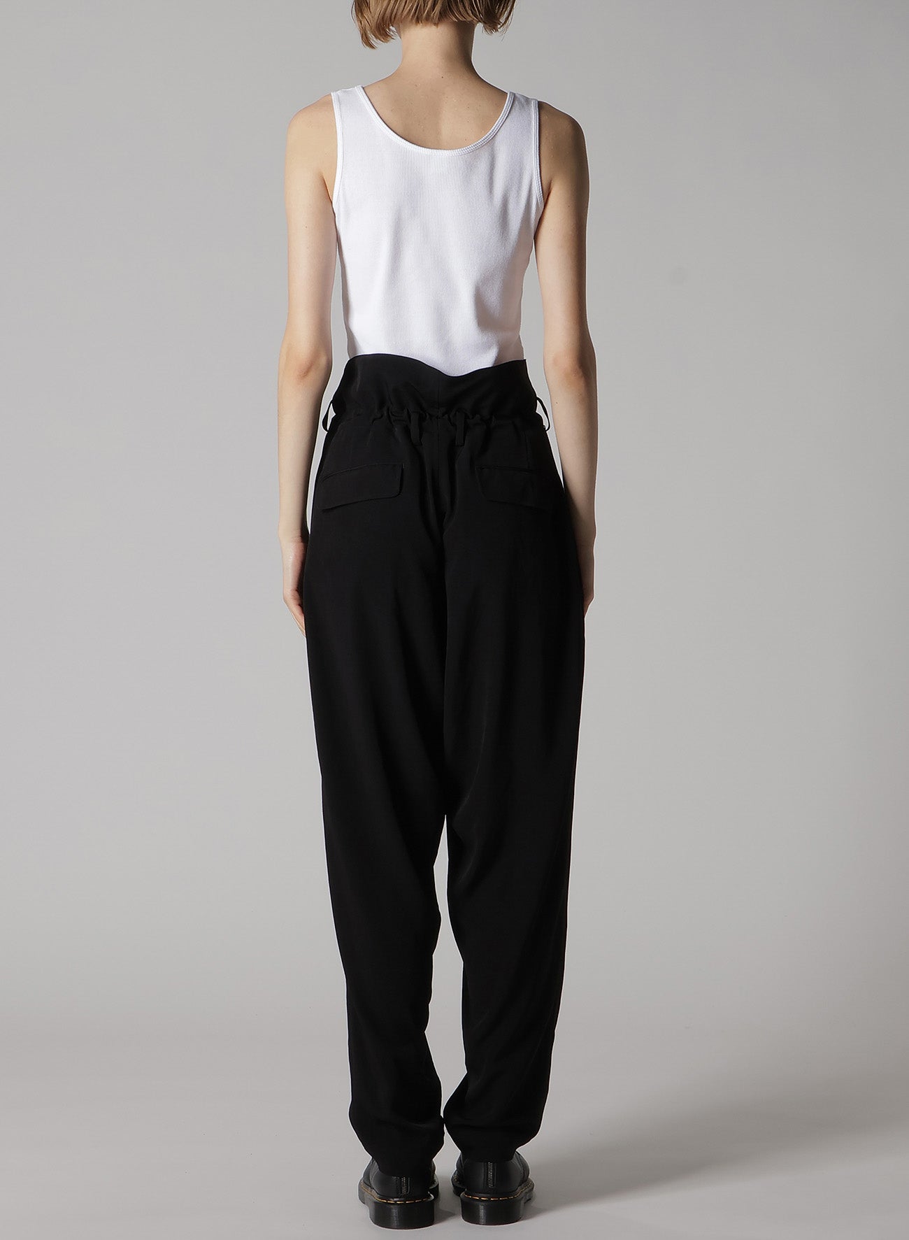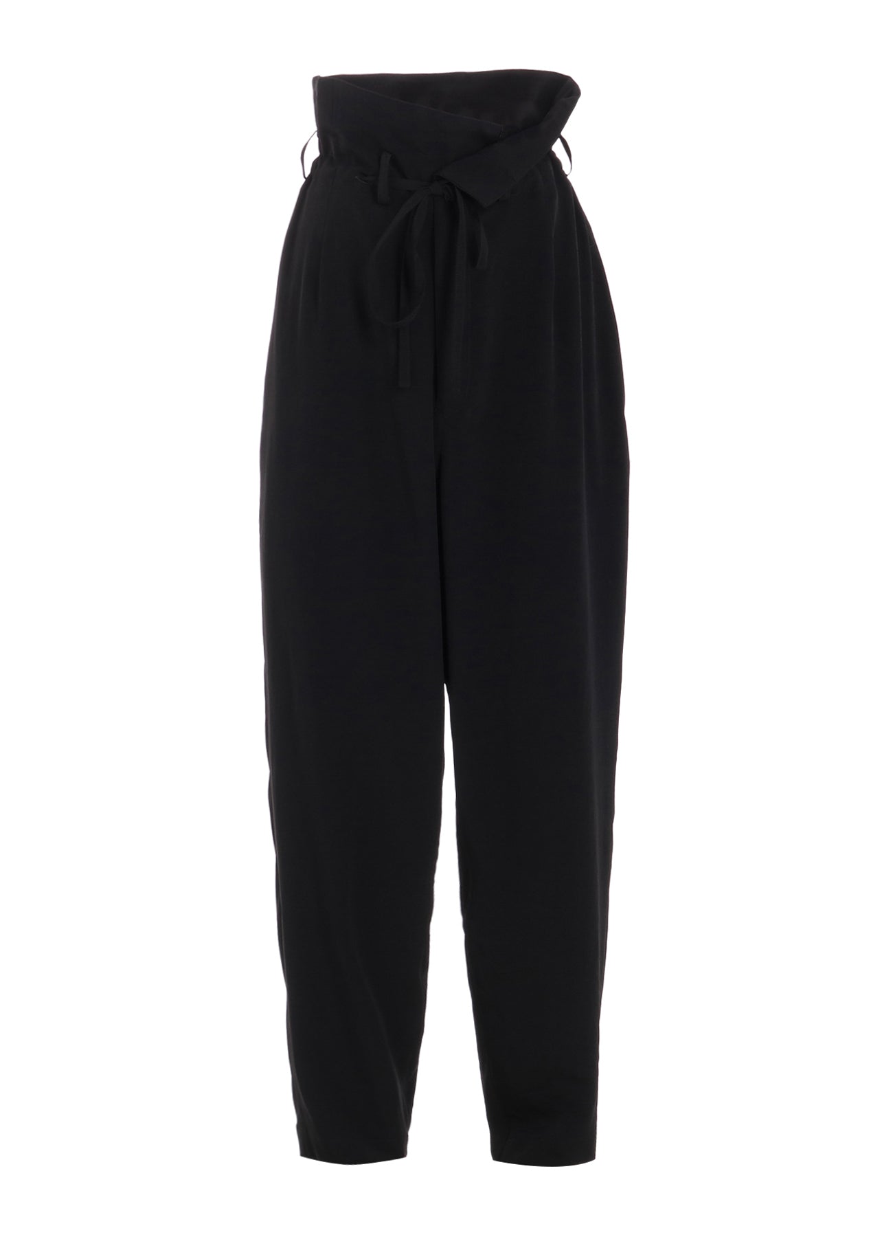 These stylish high-waist pants utilize a signature triacetate/polyester crepe de Chine fabric, with a mild sheen and a luxurious look. Wrinkle-resistant and lightweight, they ensure comfort throughout the season. By gathering with a drawstring and folding the waist, the pants offer a casual and charming appearance.