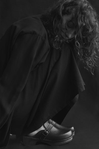 The Y’s × Scholl collaboration redefines comfort shoes with advanced technology, traditional craftsmanship, and progressive design. The unique "Sabot" design includes bespoke buckles, refined straps, and special stitching. Exclusively all-black, the shoes feature a "Y’s Scholl" leather name tag.