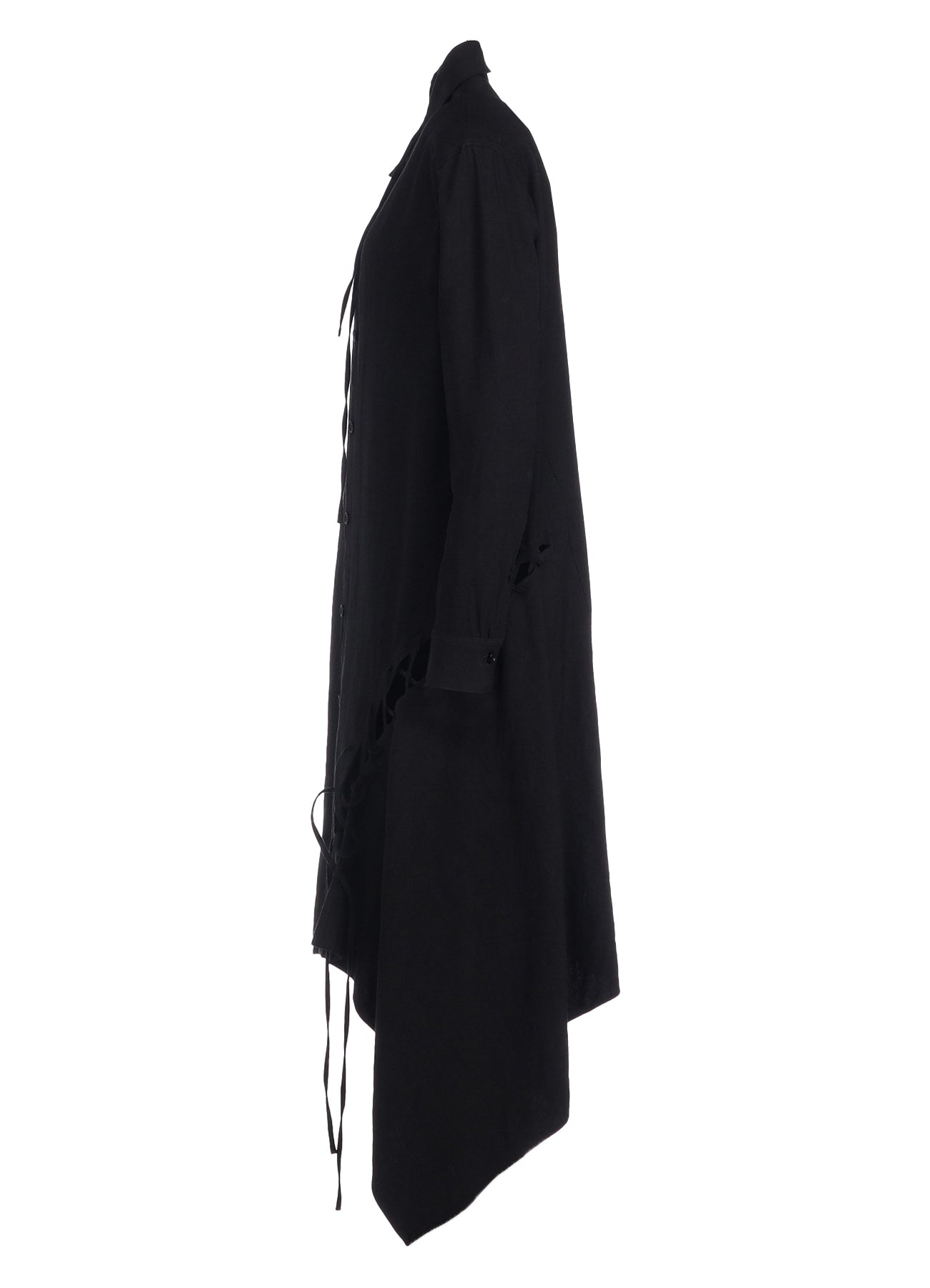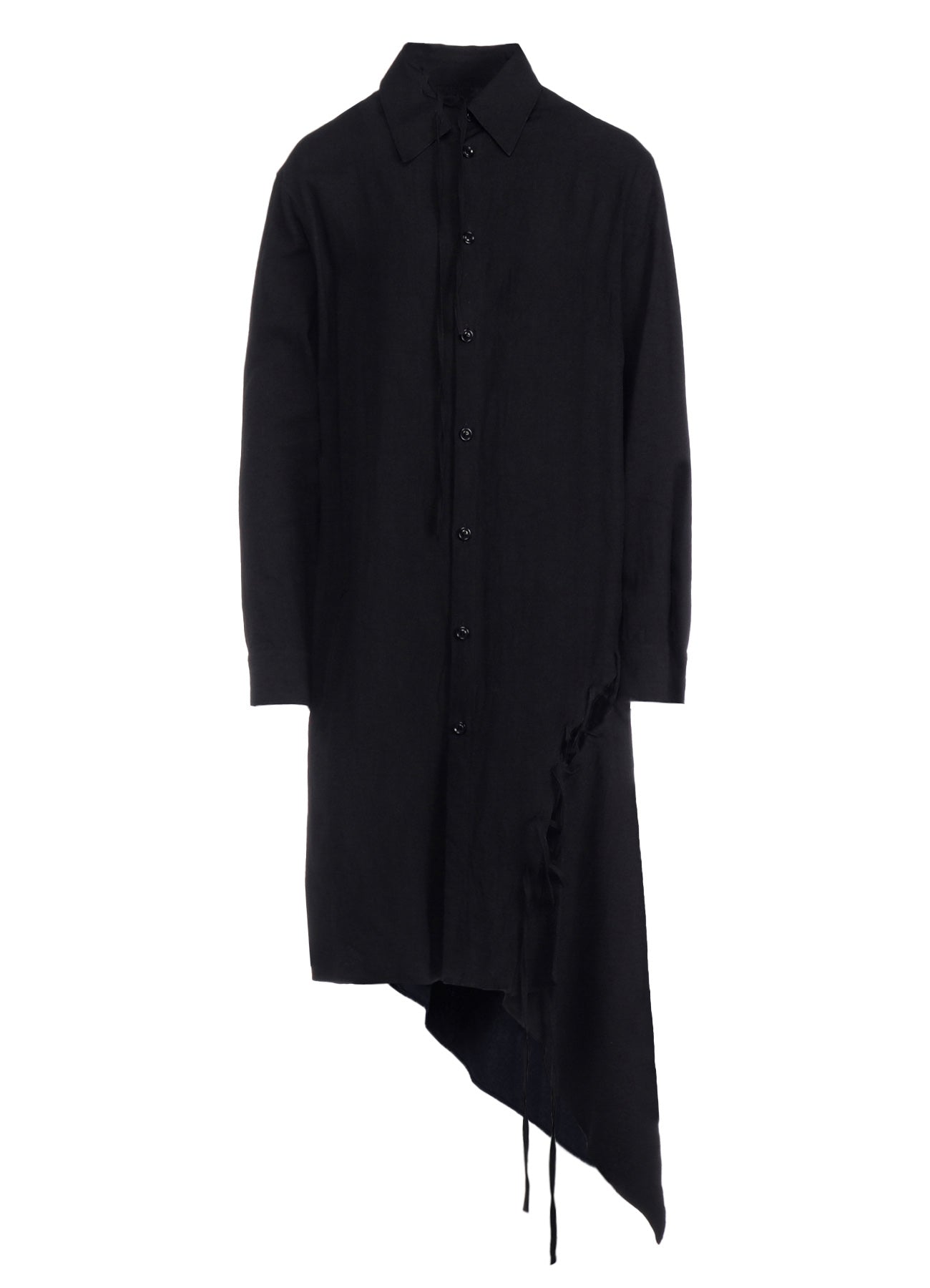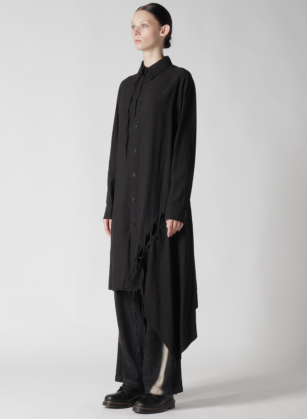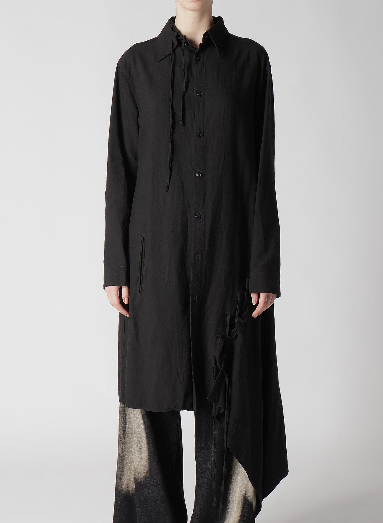 This cotton-linen/cellulose blend, natural texture lace-up long blouse stands out with its asymmetrical design and lace-up details at the hem and neckline. The lace allows inner wear to peek through, making it ideal for styling with colorful items. Note that sample images may differ slightly from actual products—please refer to SIZE INFO.