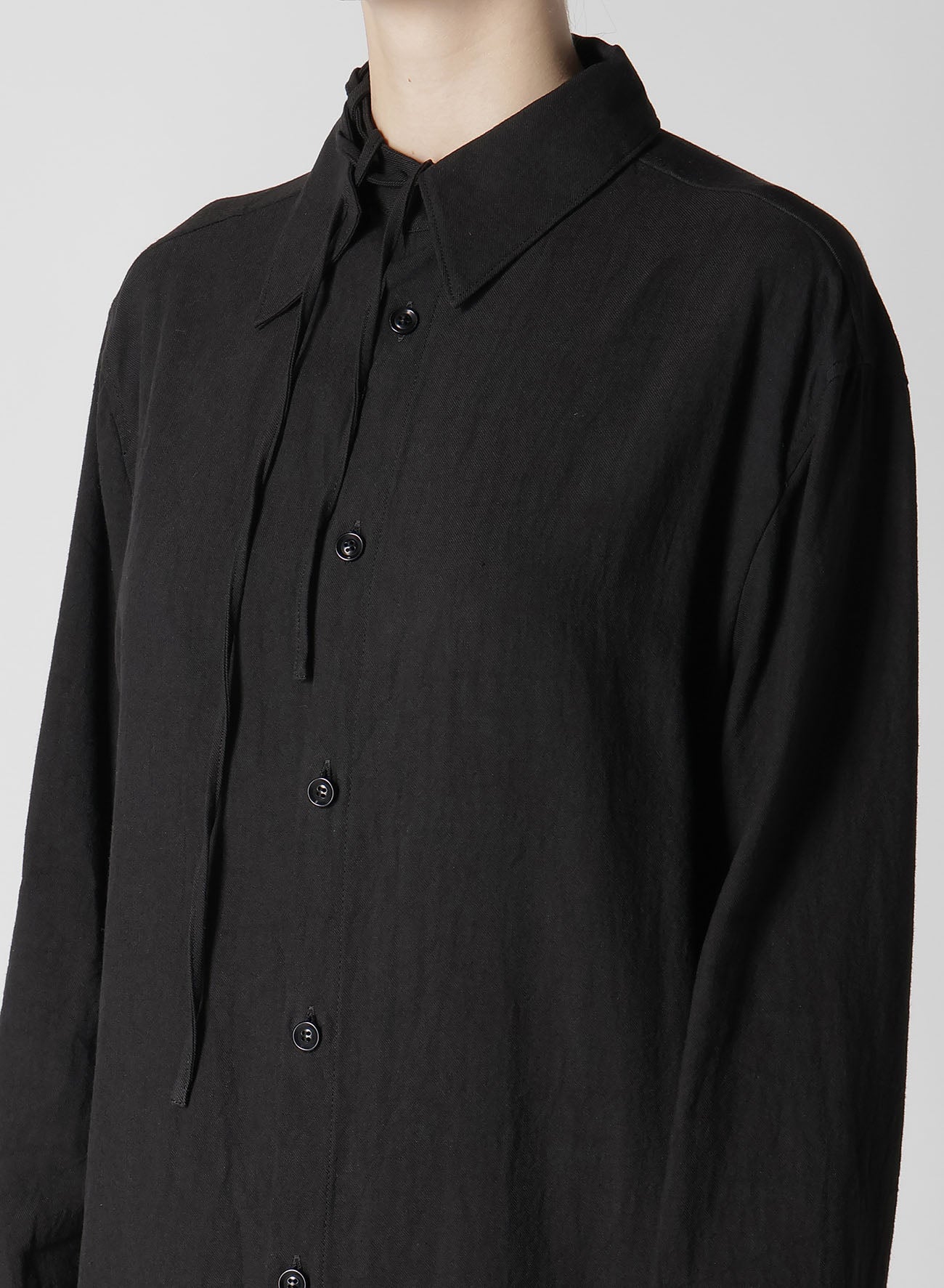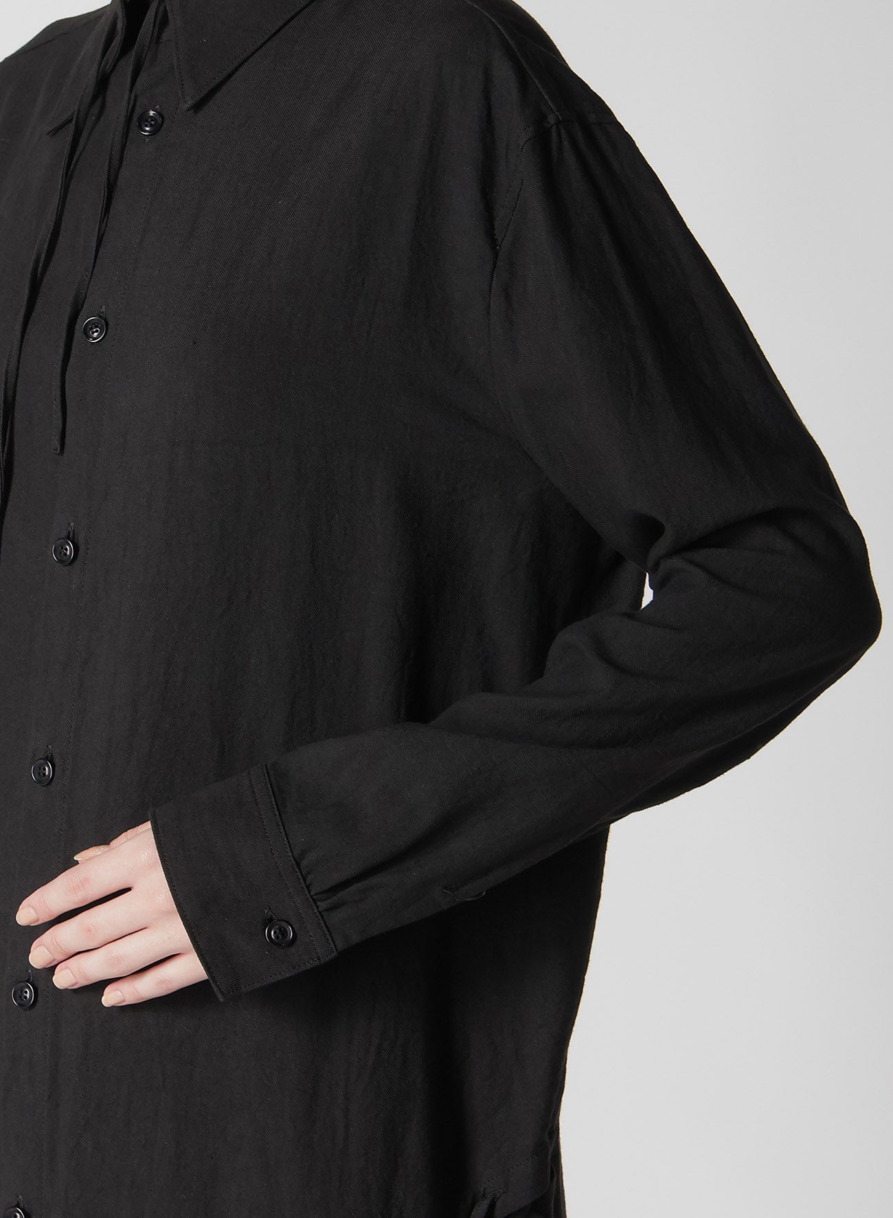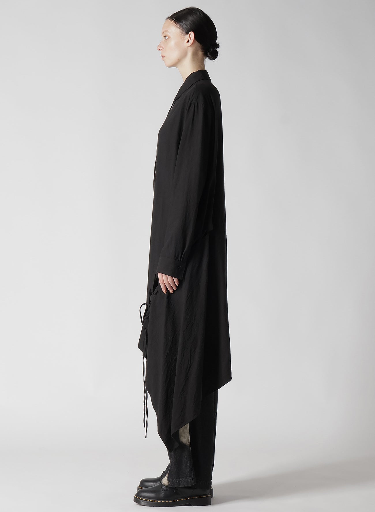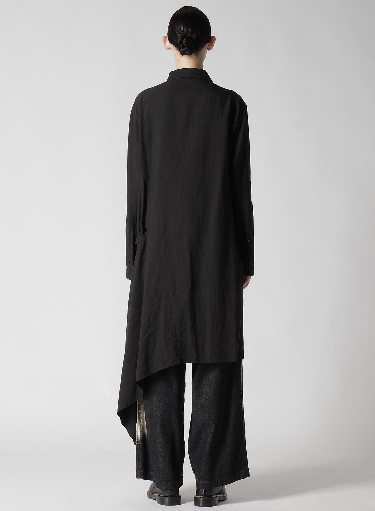 This cotton-linen/cellulose blend, natural texture lace-up long blouse stands out with its asymmetrical design and lace-up details at the hem and neckline. The lace allows inner wear to peek through, making it ideal for styling with colorful items. Note that sample images may differ slightly from actual products—please refer to SIZE INFO.